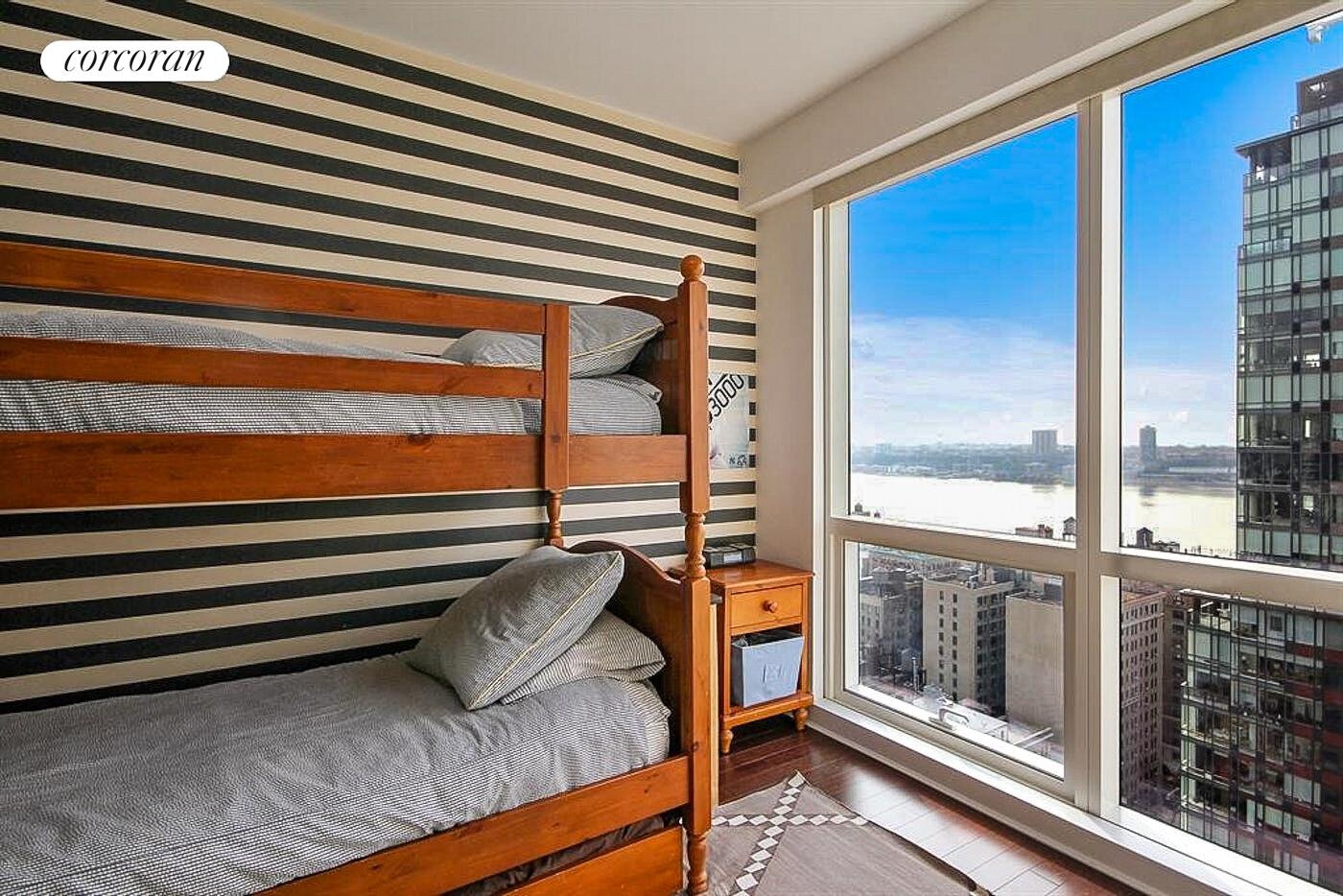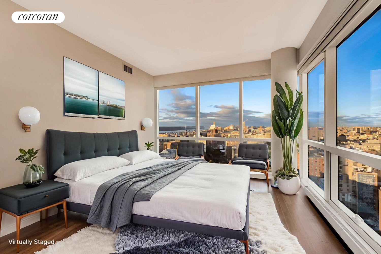 This spectacular home with 270-degree views of the Hudson River and Central Park, has 3 bedrooms and 2 bathrooms in a sprawling 1,648 square foot layout. Enjoy sunsets, sunrises, and the Manhattan skyline from every room!