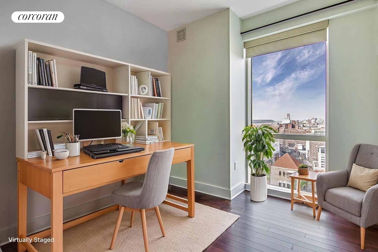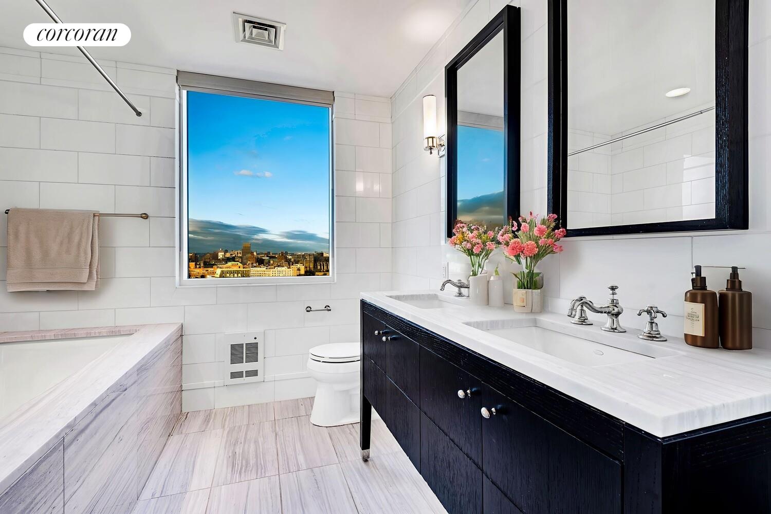 The Master Bedroom offers a large walk-in closet, a separate storage closet, and floor to ceiling windows with unobstructed views of Central Park! The master en-suite bathroom has a soaking tub, separate shower enclosure, double vanity sinks, and a large northern facing window.