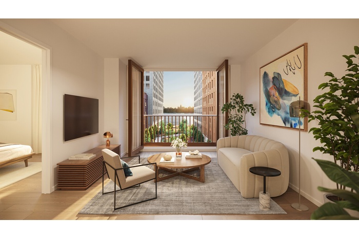Anchored to the banks of the East River, The Riverie rises as a new beacon of serene riverside living and accessibility, with direct access to Manhattan by ferry at the India Street Pier. Elegant, light-filled studio to three-bedroom residences offer exceptional, sweeping skyline views of Manhattan, Brooklyn, and the riverfront. The building pairs refined design and natural beauty with sustainable innovation, including net-zero carbon operations and New York's largest geothermal residential system.