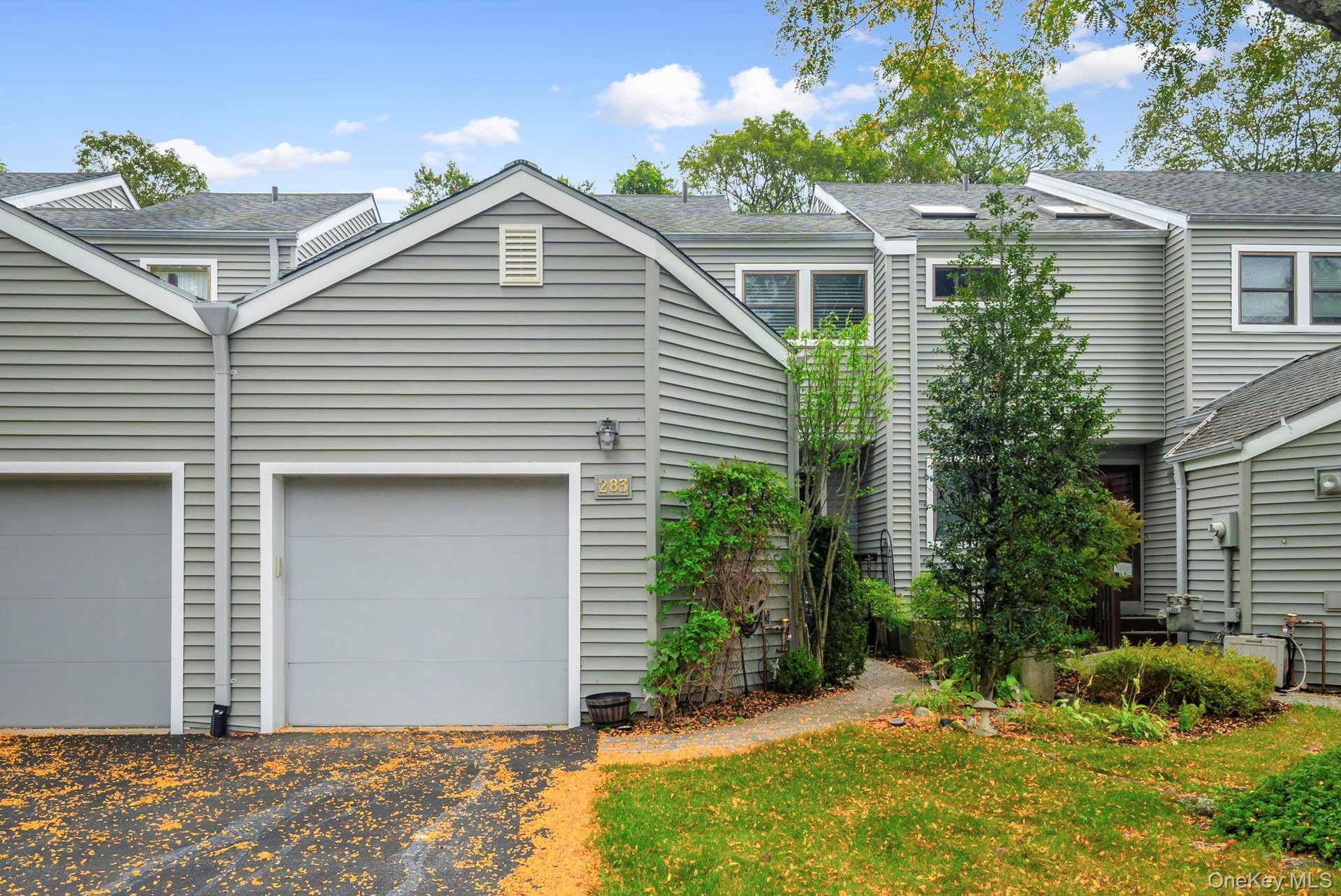 Welcome to this charming townhome In Fox Hill with one bedroom plus a den. The first floor features a tiled powder room and a well-appointed kitchen with granite counters, recessed lighting, a breakfast bar, and GE Profile and KitchenAid appliances. The open and airy dining room boasts hardwood floors, a skylight, and a sliding glass door that leads to a private wood deck, perfect for outdoor entertaining. The inviting living room also features hardwood floors, recessed lighting, and a cozy wood-burning fireplace. Additionally, the laundry room with Maytag washer and dryer has direct access to the attached garage. A walk-in closet/pantry provides extra storage space. Upstairs, you'll find a den/sitting room with a ceiling fan, recessed lights, and another skylight, creating a bright and relaxing atmosphere. The primary bedroom is spacious with hardwood floors, a double closet, and a ceiling fan, offering a tranquil retreat. The adjoining primary bathroom is beautifully tiled and features a bathtub and a skylight for natural light. Additional highlights include custom blinds throughout, a one-car attached garage with built-in shelves, and two backyard decks, offering plenty of space for outdoor living and relaxation. Extra square footage in the walk-out basement with private wooded views. Enjoy the amazing amenities in Fox Hill including pool, tennis, and clubhouse. Close to parks, train, shopping and restaurants. Less than 1 hour to NYC.