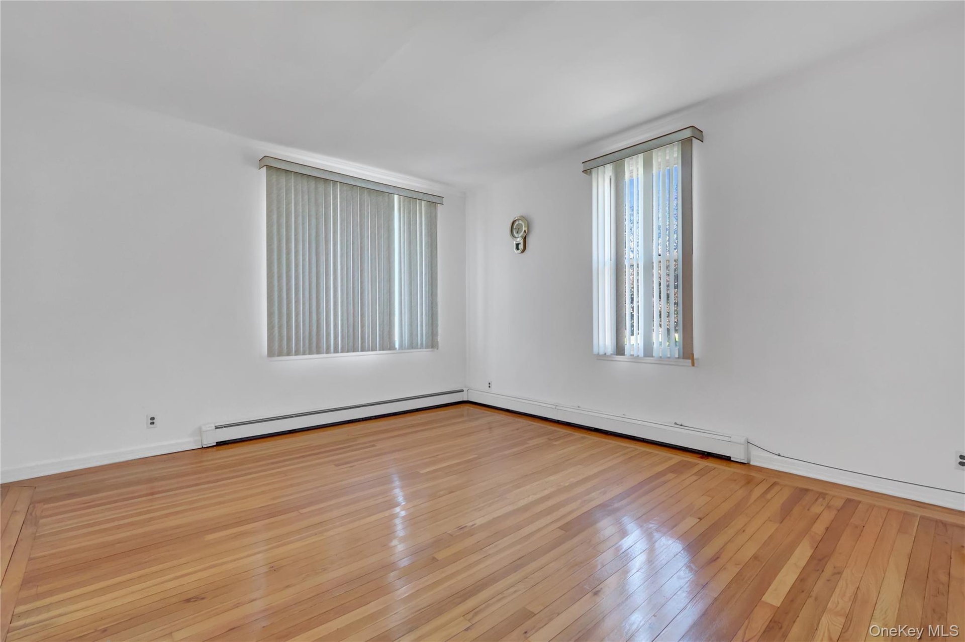 - Spare room featuring hardwood / wood-style flooring and a baseboard heating unit