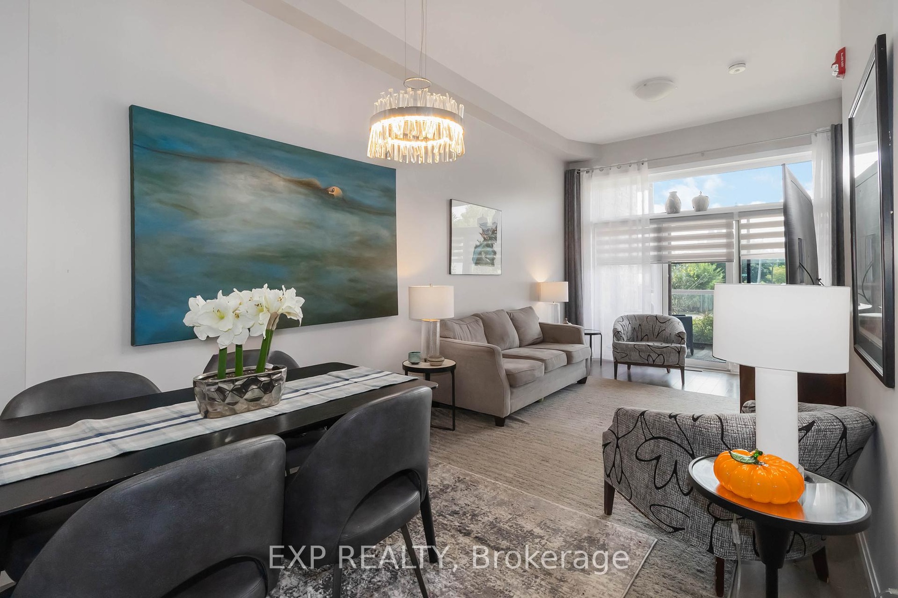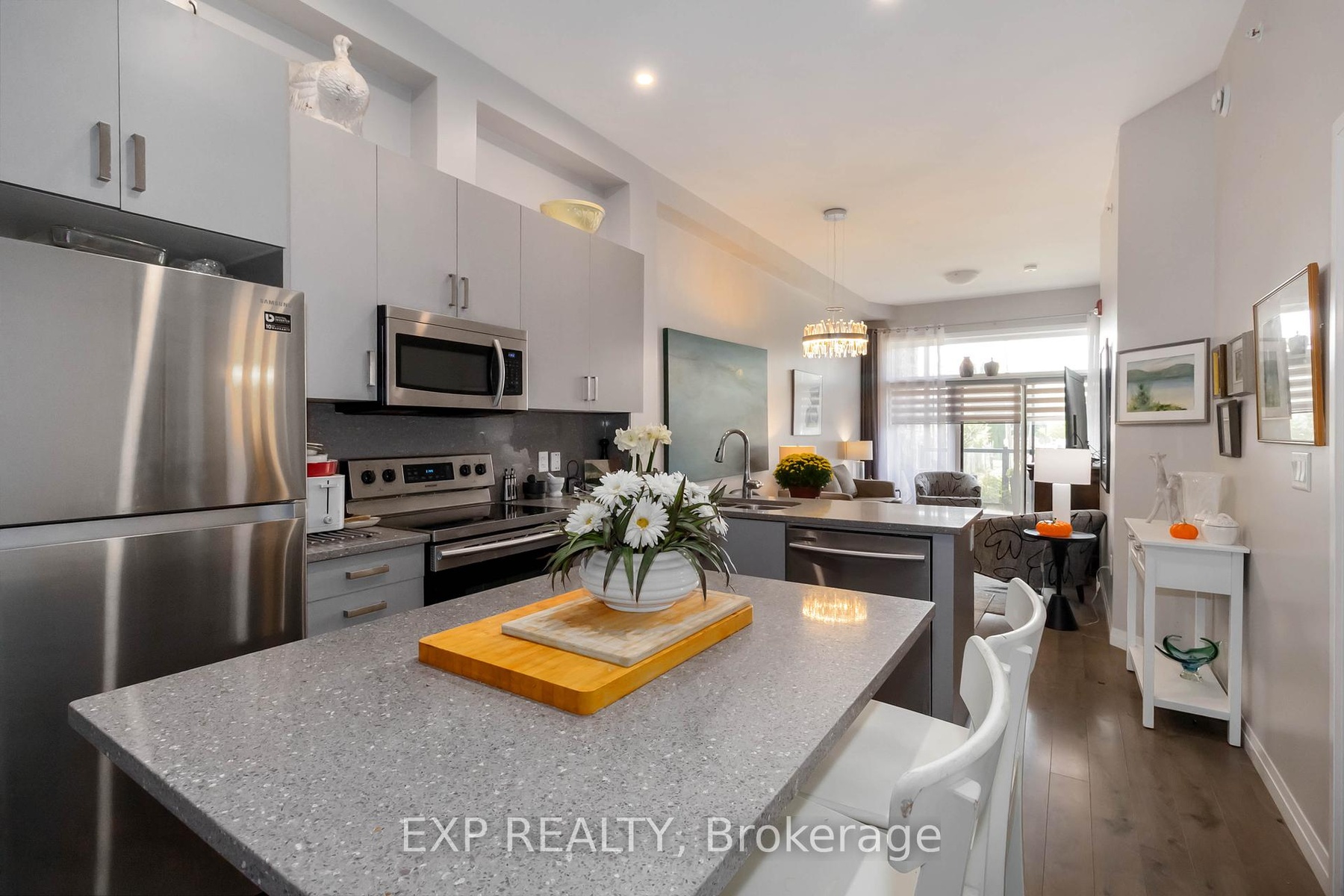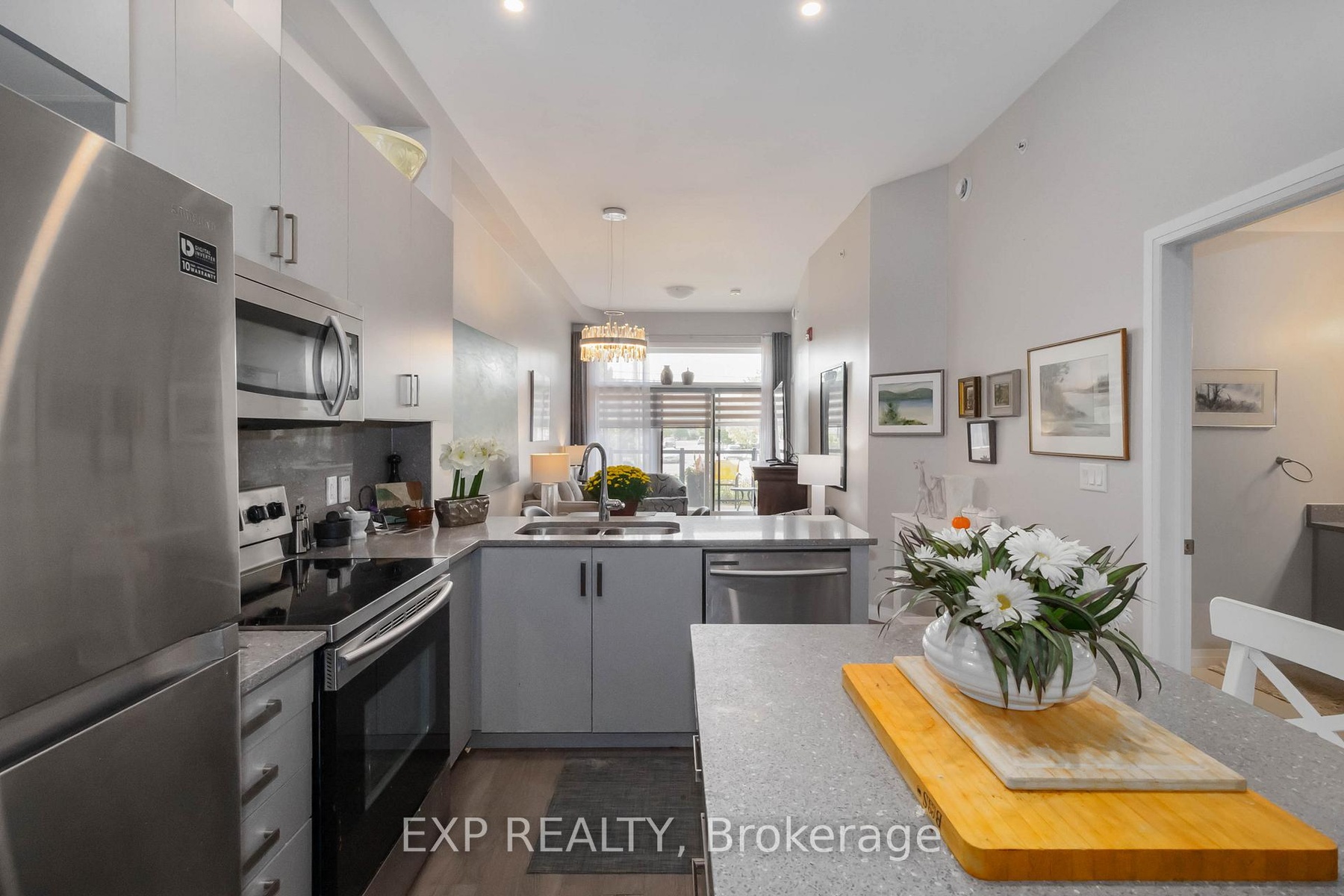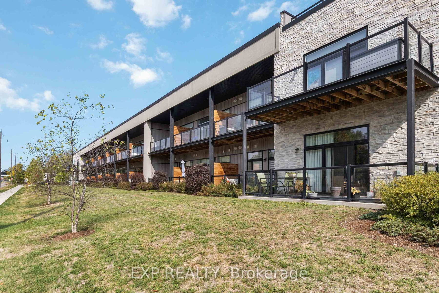 Experience modern living in this stylish ground-floor 1-bedroom plus den, 1-bathroom suite, thoughtfully designed for both comfort and convenience. Soaring ceilings and a bright, open-concept layout make the spacious living and kitchen area perfect for entertaining, while sleek contemporary finishes and abundant natural light create an inviting atmosphere. Step out onto the generous private balcony, ideal for enjoying morning coffee or relaxing after a long day. This well-appointed unit includes all appliances, in-suite laundry, and one dedicated parking space for added ease. Residents can take advantage of outstanding shared amenities, including an expansive BBQ patio, perfect for outdoor dining and social gatherings. Conveniently located near the Grand River, Rotary Bike Park, Wilkes Dam, Brantford General Hospital, and an array of popular restaurants, this home offers the perfect balance of modern style and everyday practicality.