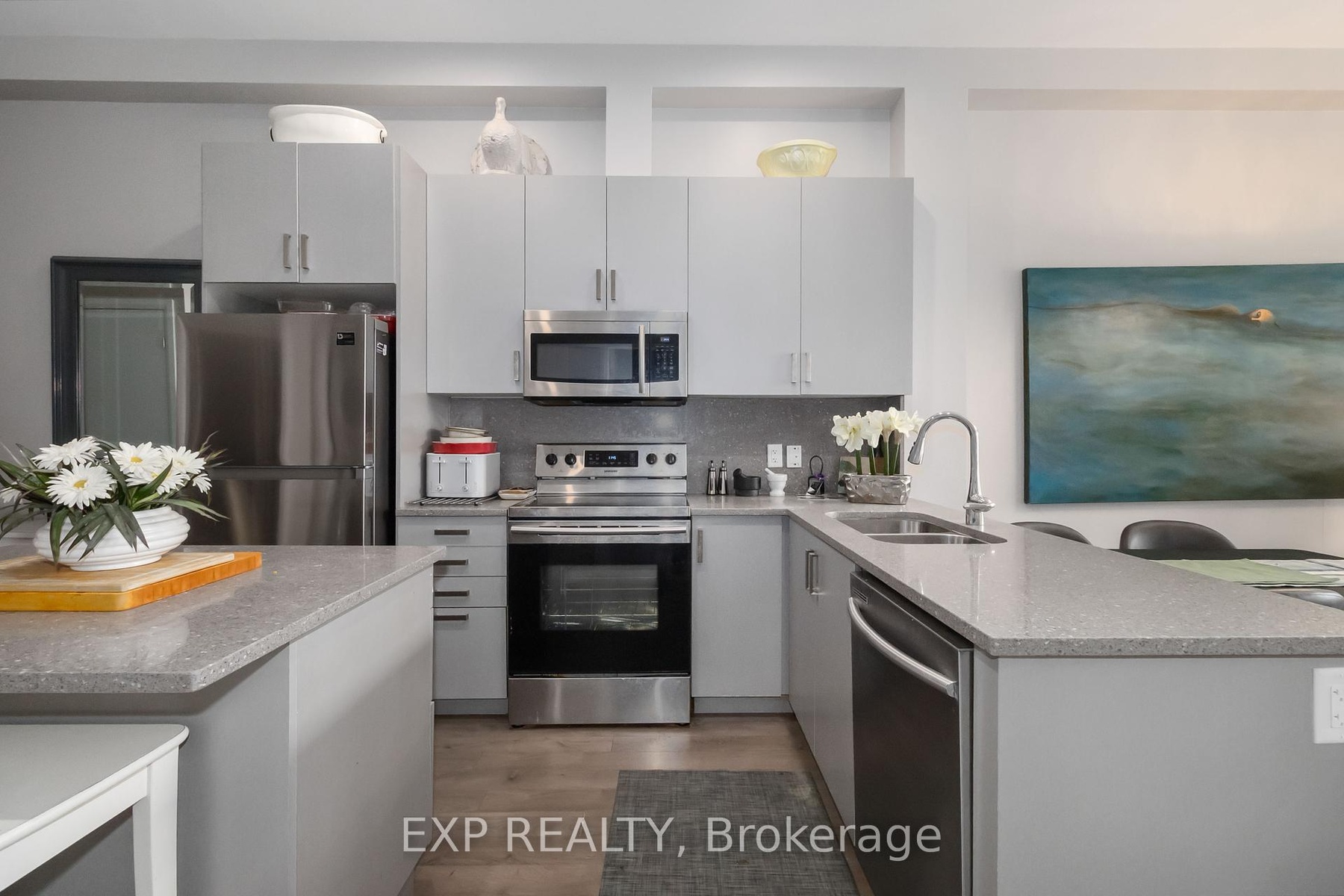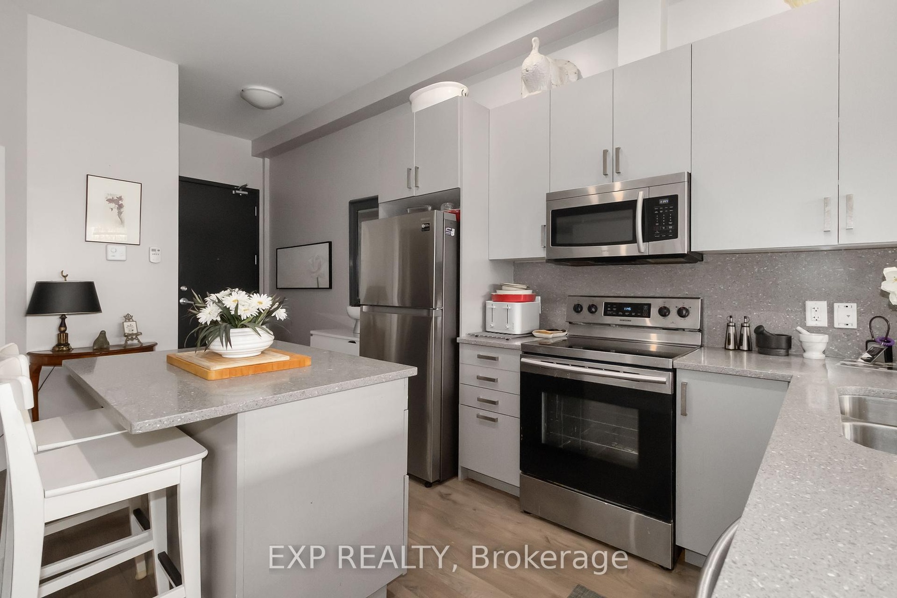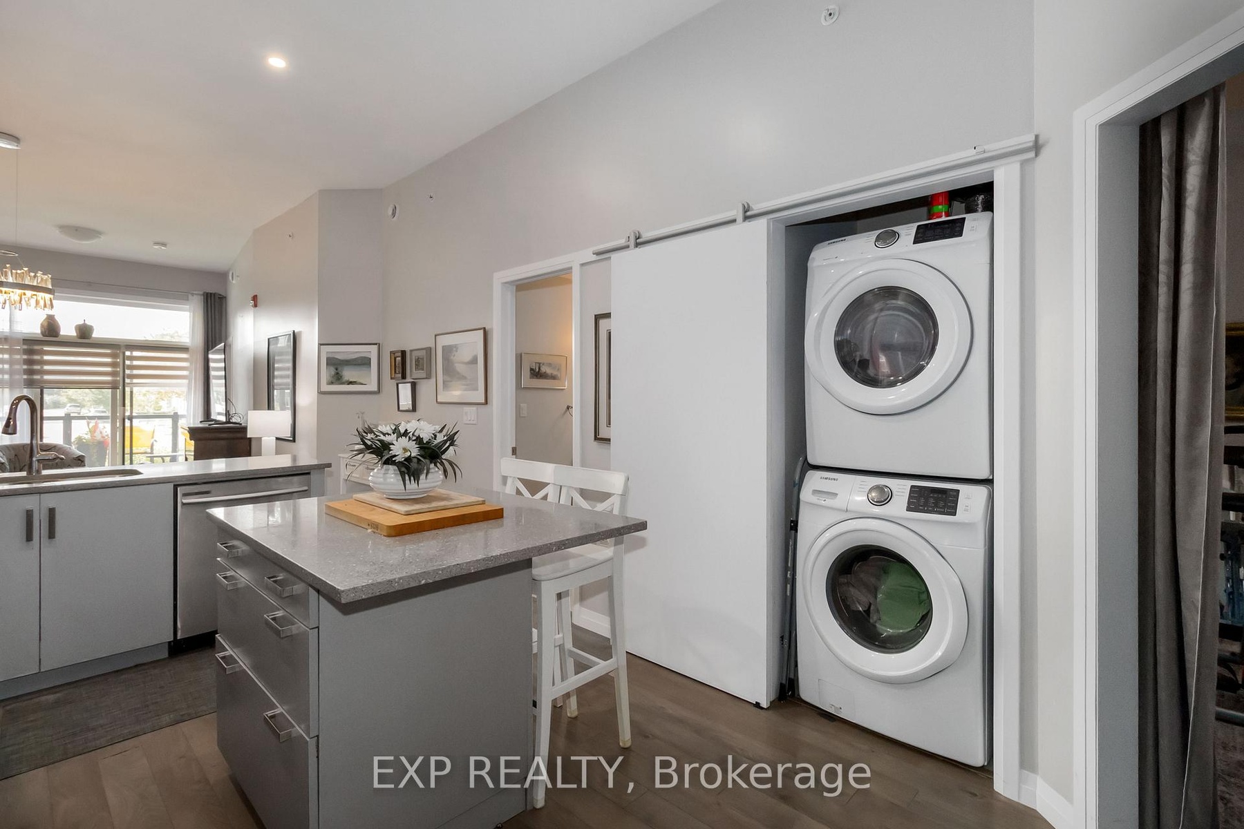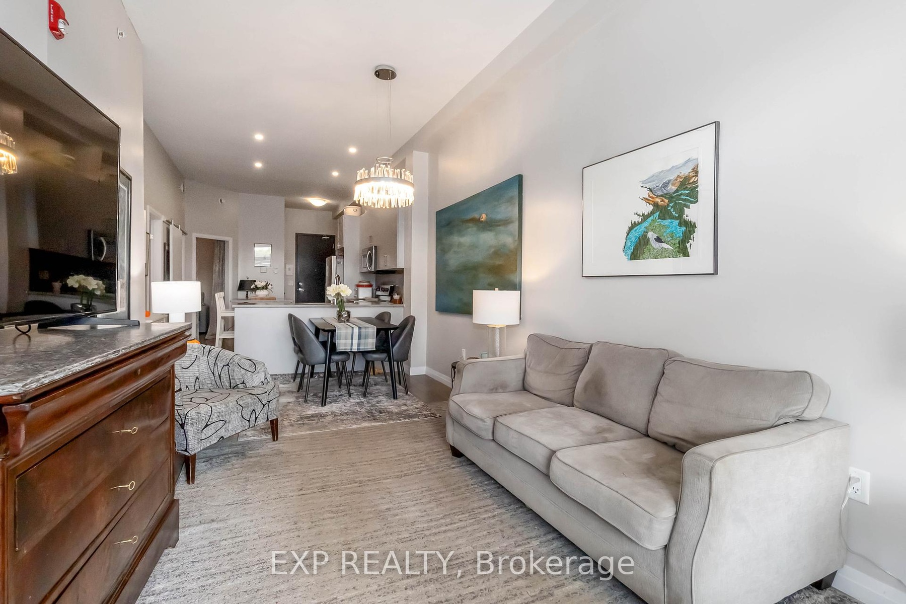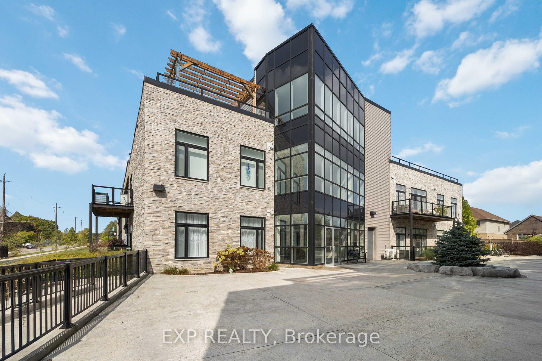 Experience modern living in this stylish ground-floor 1-bedroom plus den, 1-bathroom suite, thoughtfully designed for both comfort and convenience. Soaring ceilings and a bright, open-concept layout make the spacious living and kitchen area perfect for entertaining, while sleek contemporary finishes and abundant natural light create an inviting atmosphere. Step out onto the generous private balcony, ideal for enjoying morning coffee or relaxing after a long day. This well-appointed unit includes all appliances, in-suite laundry, and one dedicated parking space for added ease. Residents can take advantage of outstanding shared amenities, including an expansive BBQ patio, perfect for outdoor dining and social gatherings. Conveniently located near the Grand River, Rotary Bike Park, Wilkes Dam, Brantford General Hospital, and an array of popular restaurants, this home offers the perfect balance of modern style and everyday practicality.