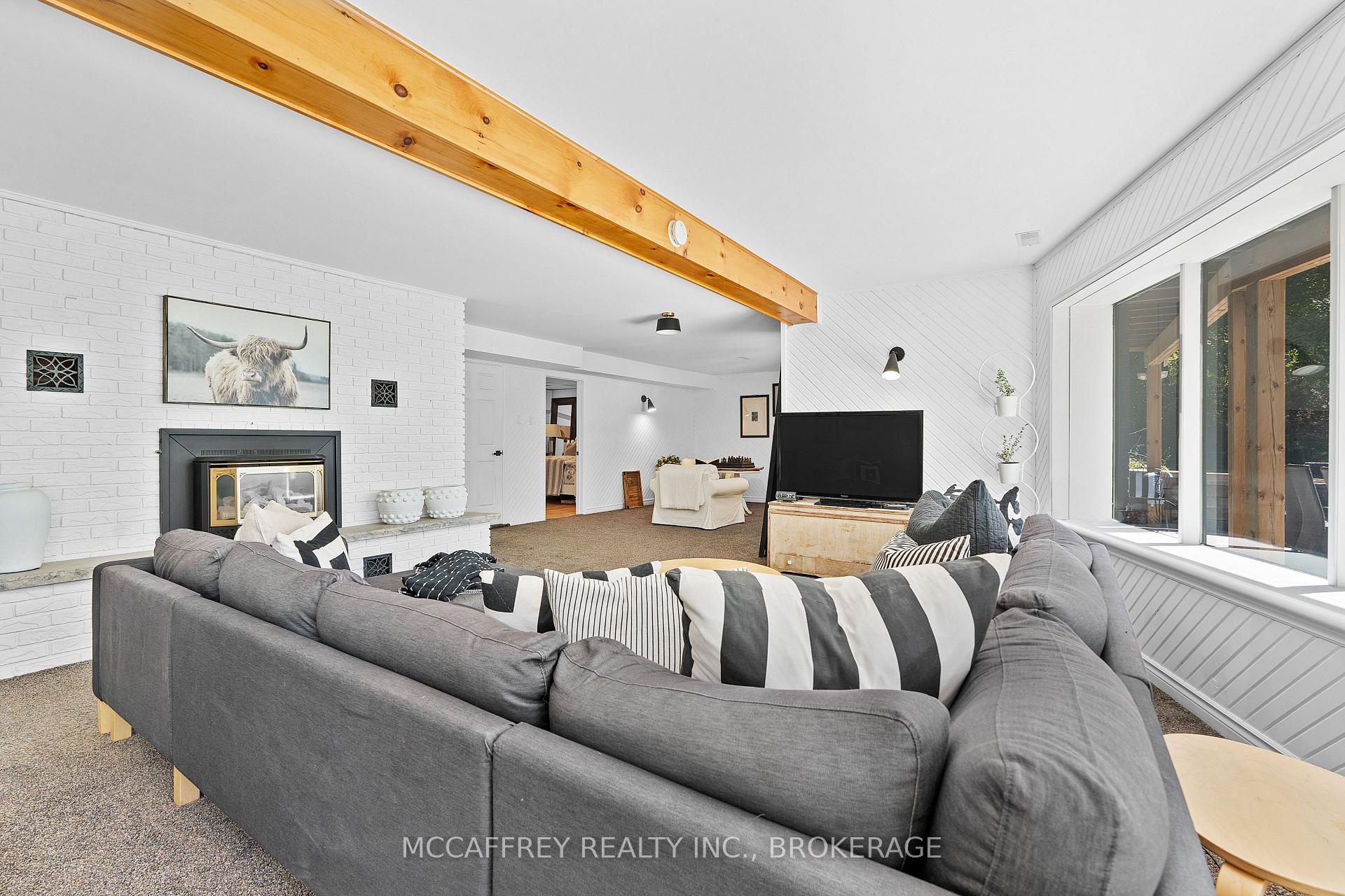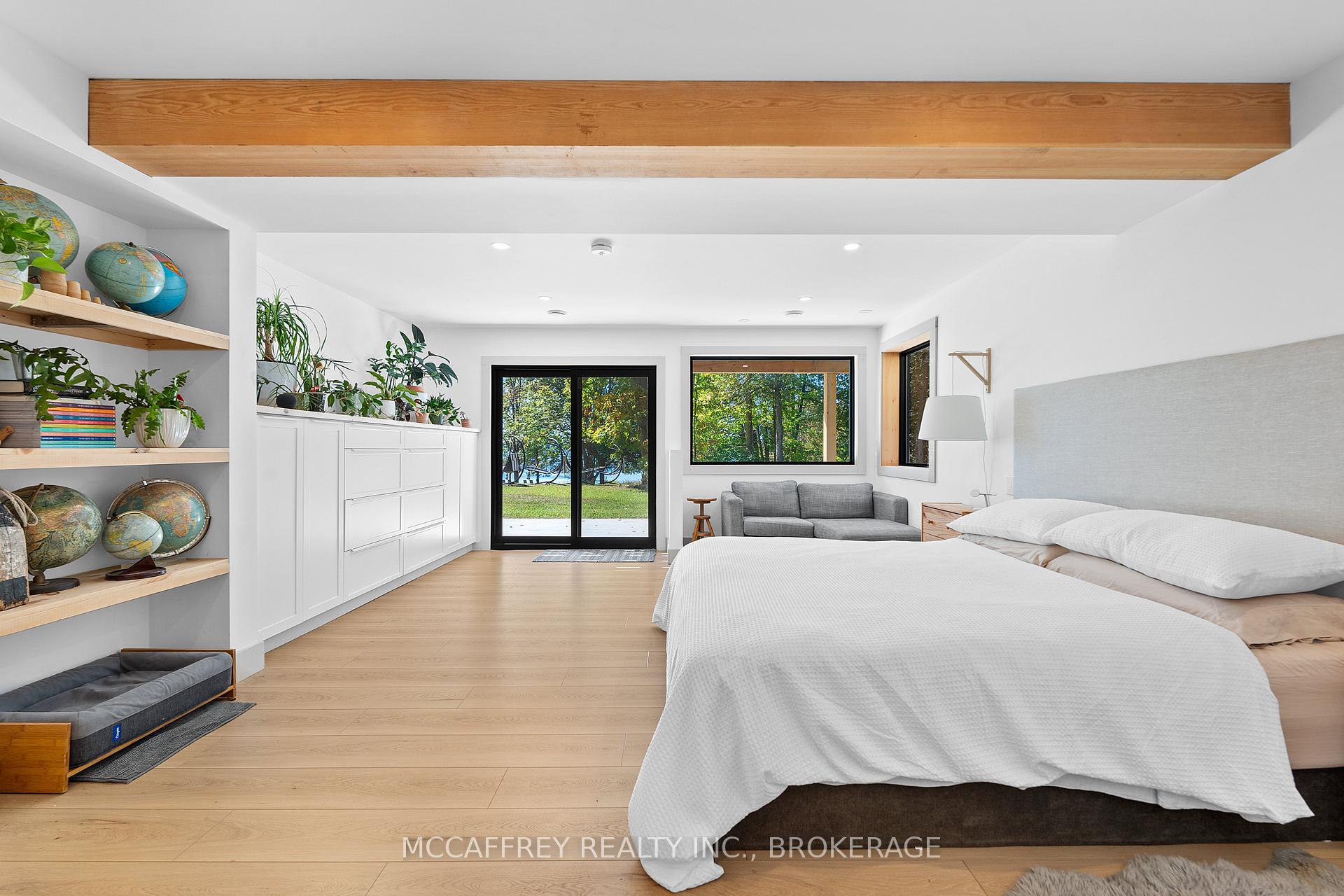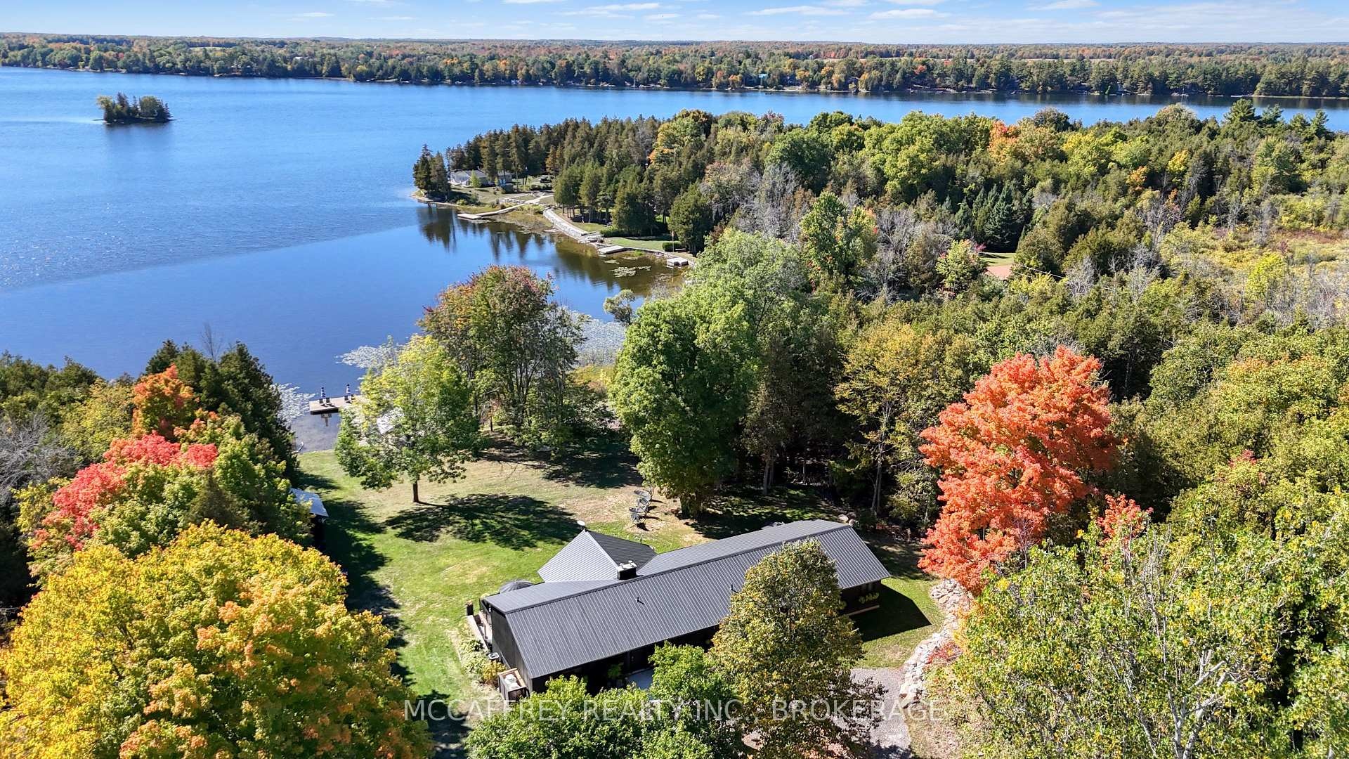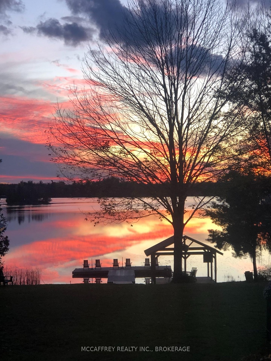 Welcome to your private lakefront sanctuary - where elegance, scale, and serenity meet. Set on 3.8 acres of wooded privacy and boasting an impressive 259 feet of natural Beaver Lake shoreline, this extraordinary retreat offers over 5,000 square feet of finely renovated living space. Tucked into a tranquil bay, you'll enjoy peaceful waters free from heavy boat traffic, all while being part of a warm, welcoming community. A long circular driveway makes a grand approach, leading you to the homes timeless exterior and detached heated garage. Step inside and feel the airiness of soaring 12-foot cathedral ceilings, expansive windows, and wide-plank floors that capture every angle of the lake. The open living space blends comfort and sophistication, anchored by a cozy wood burning fireplace and panoramic water views. The chefs kitchen is a showpiece in itself, featuring a quartz waterfall island, built-in appliances, and seamless flow into the dining area. Open the 12-foot glass wall to step onto the deck -perfect for morning coffee among the trees or golden sunsets over the lake. With 6 bedrooms and 5 bathrooms, this home was designed for hosting family and guests in total comfort. The main-floor primary suite is a private retreat with a spa-inspired ensuite, soaker Jacuzzi, glass shower, and walkout to its own deck. Additional bedrooms, including a secondary ensuite, provide ample space for visitors. The walkout lower level expands the living space with a bright recreation room, office, second laundry, four additional bedrooms, a full bath, and generous storage. Step outside to your private waterfront oasis: a T-shaped dock for swimming and boating, a gazebo for shady afternoons, and a charming bunkie for weekend guests. This is more than a home - its an elevated lifestyle. Privacy, scale, modern design, and natural beauty come together in perfect harmony.