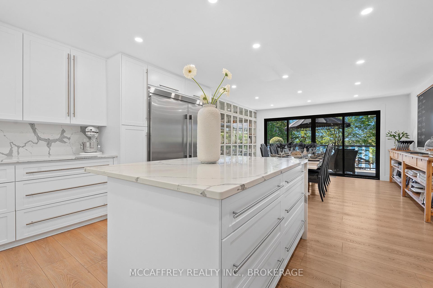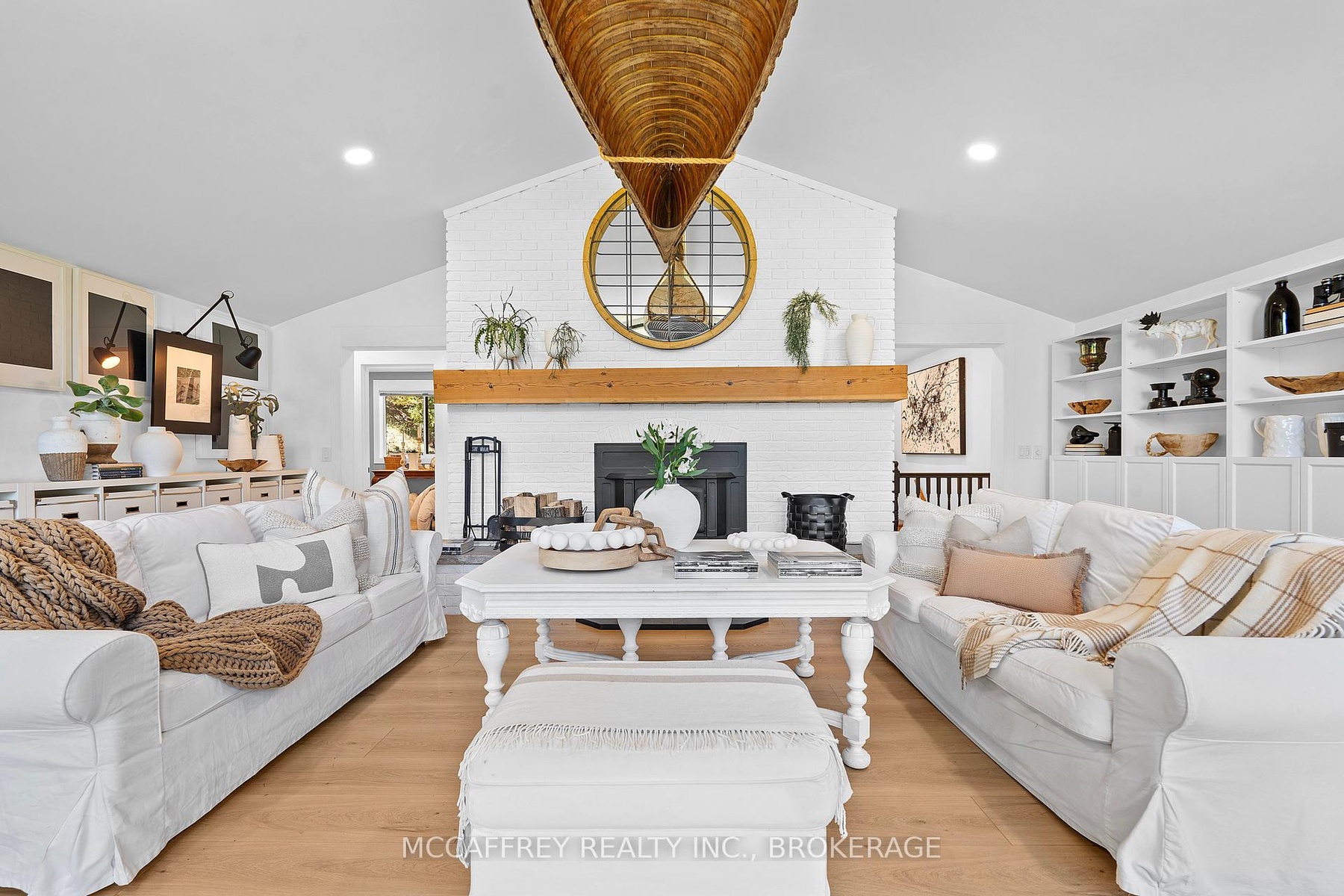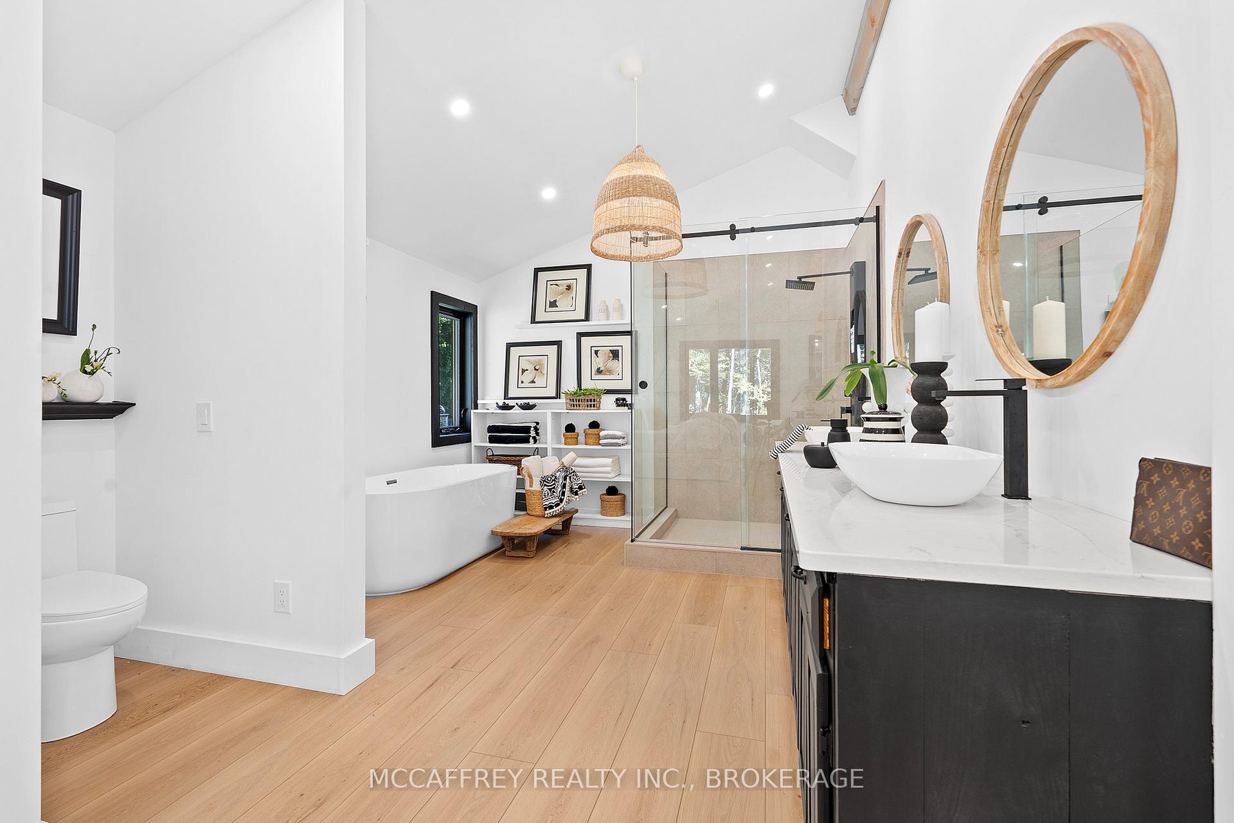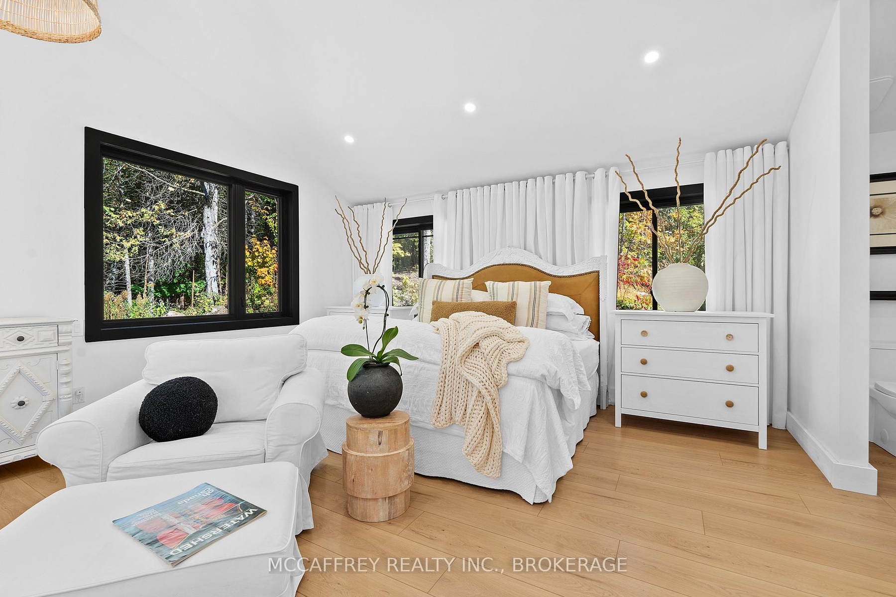 Welcome to your private lakefront sanctuary - where elegance, scale, and serenity meet. Set on 3.8 acres of wooded privacy and boasting an impressive 259 feet of natural Beaver Lake shoreline, this extraordinary retreat offers over 5,000 square feet of finely renovated living space. Tucked into a tranquil bay, you'll enjoy peaceful waters free from heavy boat traffic, all while being part of a warm, welcoming community. A long circular driveway makes a grand approach, leading you to the homes timeless exterior and detached heated garage. Step inside and feel the airiness of soaring 12-foot cathedral ceilings, expansive windows, and wide-plank floors that capture every angle of the lake. The open living space blends comfort and sophistication, anchored by a cozy wood burning fireplace and panoramic water views. The chefs kitchen is a showpiece in itself, featuring a quartz waterfall island, built-in appliances, and seamless flow into the dining area. Open the 12-foot glass wall to step onto the deck -perfect for morning coffee among the trees or golden sunsets over the lake. With 6 bedrooms and 5 bathrooms, this home was designed for hosting family and guests in total comfort. The main-floor primary suite is a private retreat with a spa-inspired ensuite, soaker Jacuzzi, glass shower, and walkout to its own deck. Additional bedrooms, including a secondary ensuite, provide ample space for visitors. The walkout lower level expands the living space with a bright recreation room, office, second laundry, four additional bedrooms, a full bath, and generous storage. Step outside to your private waterfront oasis: a T-shaped dock for swimming and boating, a gazebo for shady afternoons, and a charming bunkie for weekend guests. This is more than a home - its an elevated lifestyle. Privacy, scale, modern design, and natural beauty come together in perfect harmony.