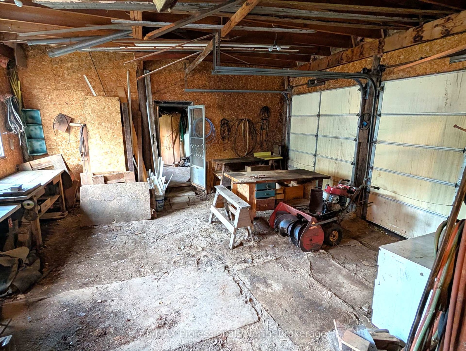 Excellent opportunity to own this 3 bedroom home with attached garage/workshop, located on an oversize lot at the edge of town, with a huge shop. This solid home offers 3 bedrooms, 1 bath, main floor living with eat-in kitchen and living area leading to a spacious sun porch for those relaxing evenings. The basement features a potential 4th bedroom, office, or den, a cold cellar, and plenty of space for storage. F/A natural gas furnace (2019), breaker panel, septic, and dug well. The oversized "L" shaped property has 120 ft road frontage, and is over 300 ft deep, with a 32' x 50' workshop/heavy equipment storage building with 2nd floor which includes 2 bedrooms for extra guests. There are a number of outbuildings including a detached 12' x 20' garage, and wood shed. Excellent potential here with plenty of possibilities! Property is an Estate Sale, being sold "as is" with no representation or warranty from the Seller.