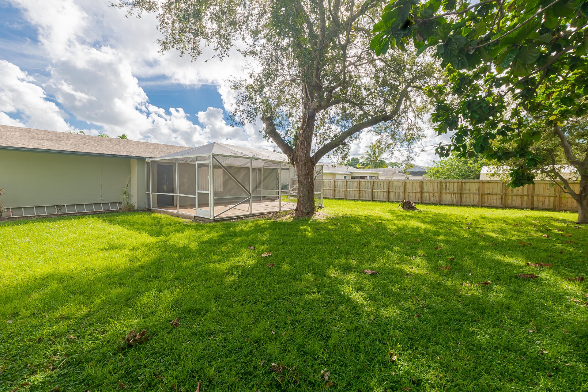 Solid CBS construction 2-bedroom, 2-bath home with versatile garage conversion offers easy 3rd bedroom complete with wall A/C and private entrance--ideal for guests, remote work, or hobby space. An enclosed lanai expands the living area, perfect for year-round enjoyment. The interior offers a welcoming flow with tile flooring, French doors, spacious living & dining rooms, stainless steel appliances & durable Formica counters. Freshly painted inside & out, this home feels light, bright & move-in ready. Bedrooms feature a mix of carpet & tile flooring for comfort and function. Outdoors, enjoy a partially fenced yard for privacy, plus accordion shutters for added peace of mind. A well-rounded property offering space, flexibility & security. Centrally located to all Port St Lucie has to offer!