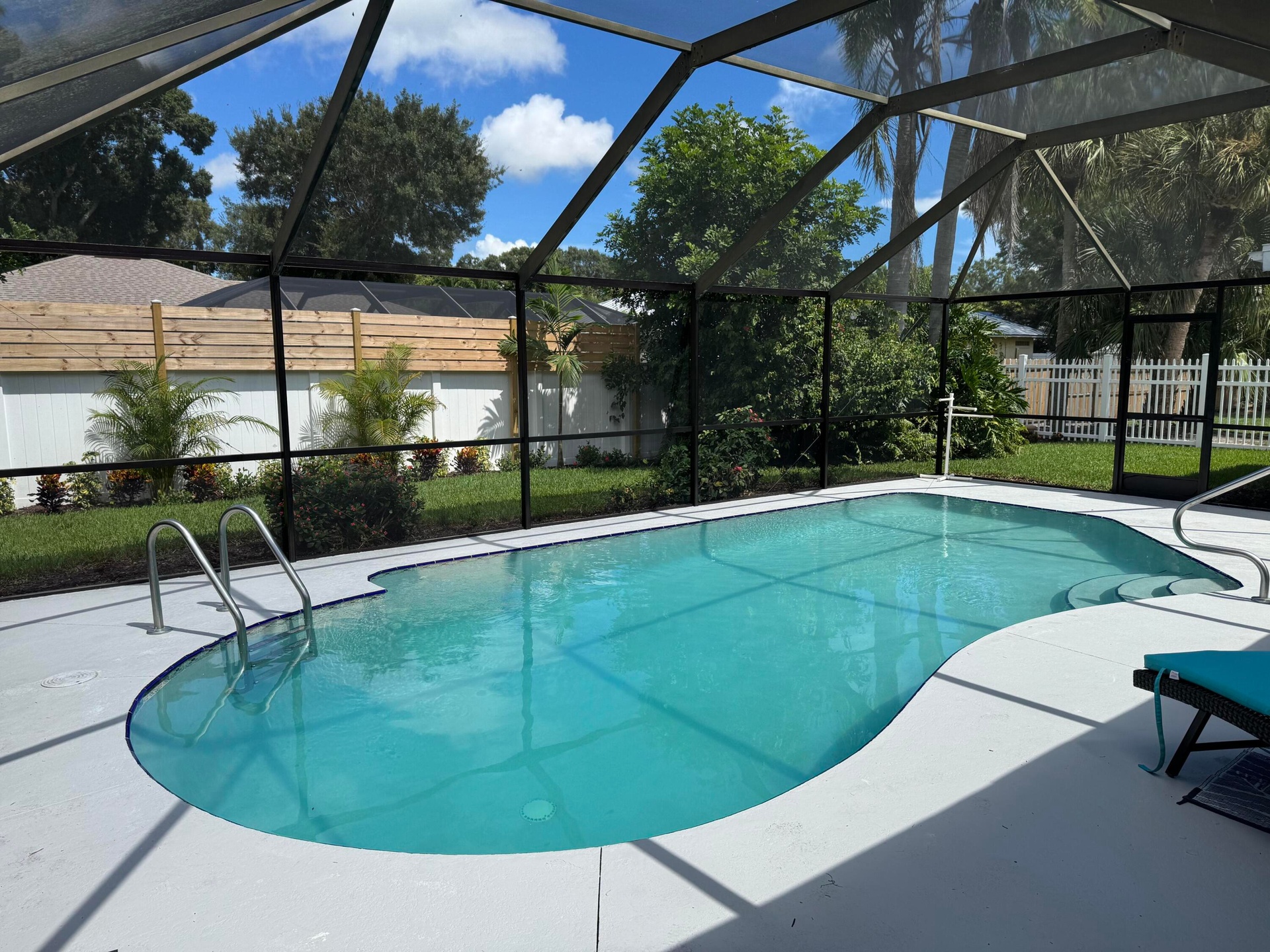 True gem for the particular buyer, with custom finishes unheard of in this price range. The kitchen alone is a show-stopper! A beautifully designed and coordinated home on a private cul-de-sac lot. It has porcelain tile floors (no spongy LVF), and smooth ceilings throughout. Every room is adorned with upgraded fixtures/appliances and professional molding. The gorgeous tropical landscape makes your salt water pool area seem like Shangri-La.2021 roof and 2018 HVAC; Sprinkler system; New pool equipment including 2 speed pump; Upgraded insulation; Induction range; LED lighting; Hurricane rated vinyl fence.No cast iron, galvanized, or polybutylene pipes, lead paint, asbestos-laden popcorn ceiling/insulation, well pumps, or septic system.