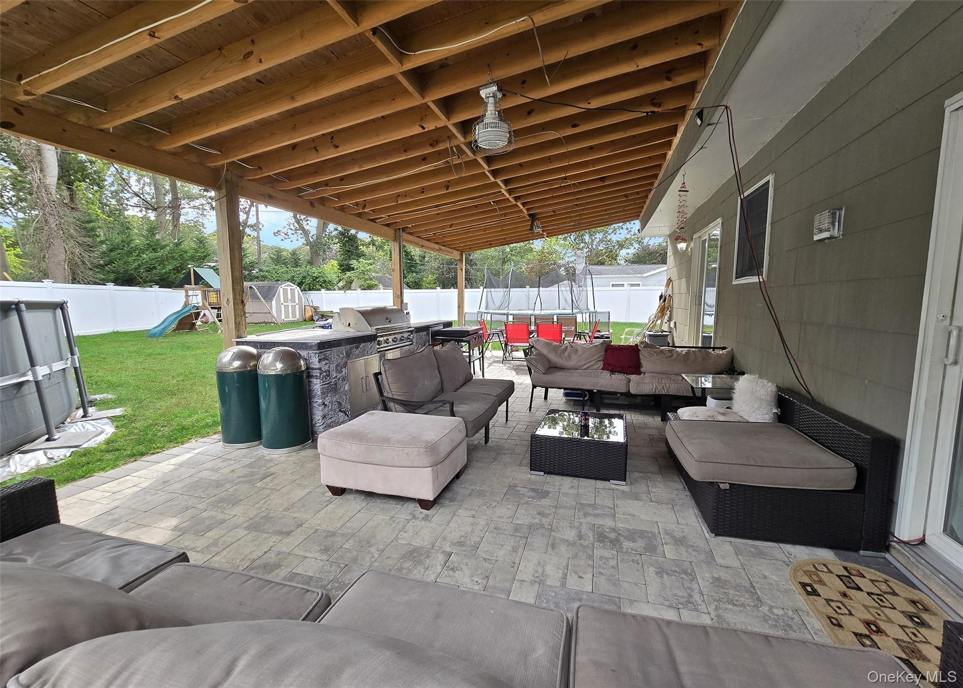 Beautiful Colonial featuring 4 bedrooms and 2.5 baths and a 2 car garage. This home offers a spacious Living Room, Formal Dining Room, Eat-in Kitchen, and Den, plus a full Basement for extra storage or living space. The private backyard is perfect for entertaining with a covered patio, built-in outdoor kitchen, and an above-ground pool. Fully fenced with updated white vinyl fencing around a third of an acre. Conveniently located close to all. A must see!