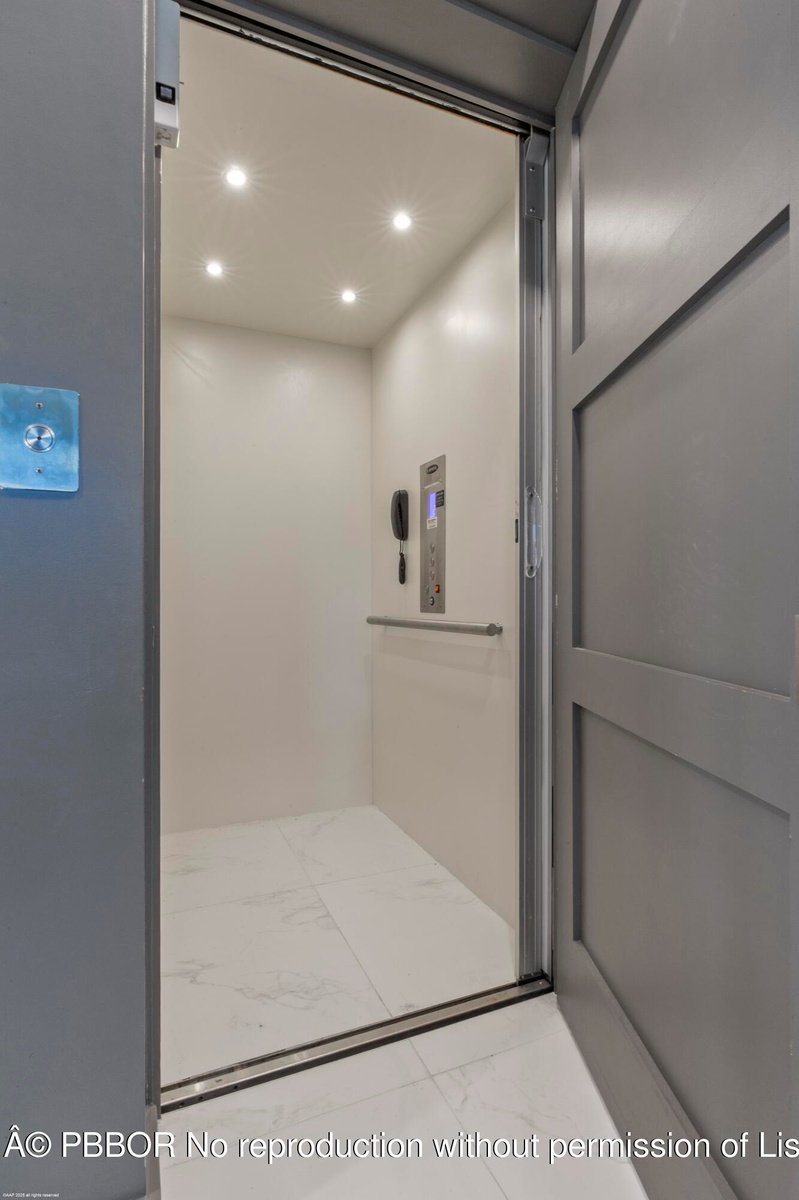 This stunning new direct Intracoastal Oasis was inspired by the incredibly talented minimalist architect Ludwig Mies who was the pioneer of modern architecture. The home's main level has the gourmet kitchen, the living, family and dining rooms all in one open space boasting beautiful views of the wide Intracoastal waterway and Palm Beach. Take the elevator to the third floor where the primary suite has a large deck overlooking the resort style back yard/pool/spa and beachfront. This third level has two additional bedrooms with en-suite baths and great closets. The VIP bedroom and club room are located on the ground floor and live like a separate home. Down at the beach sits a lovely private cabana giving guests the best seat in the house! Behind the entry gates, the air conditioned garage has EV charging stations, lots of storage and an office! 2814 N Flagler Drive is a must see property for those looking to experience elegant beachfront Florida living in downtown West Palm Beach.