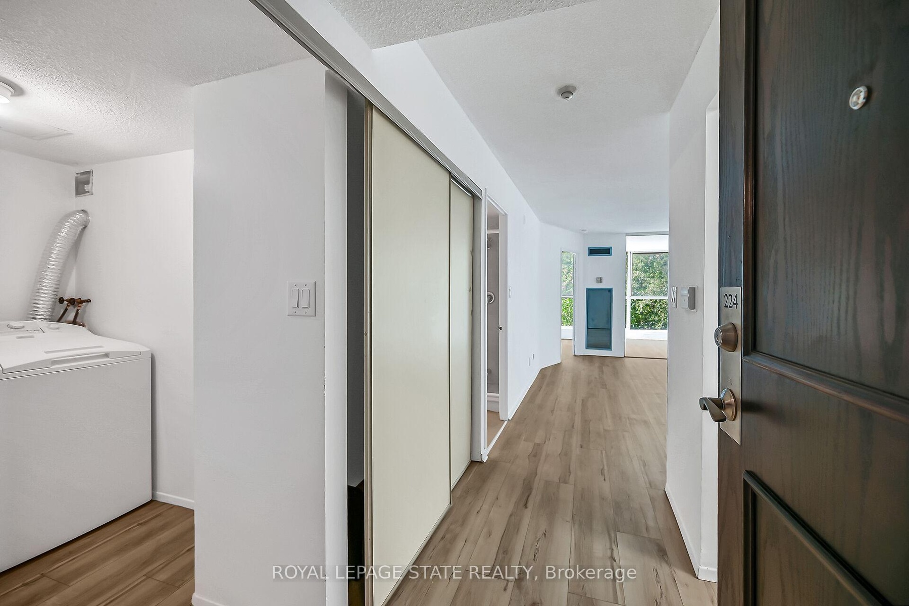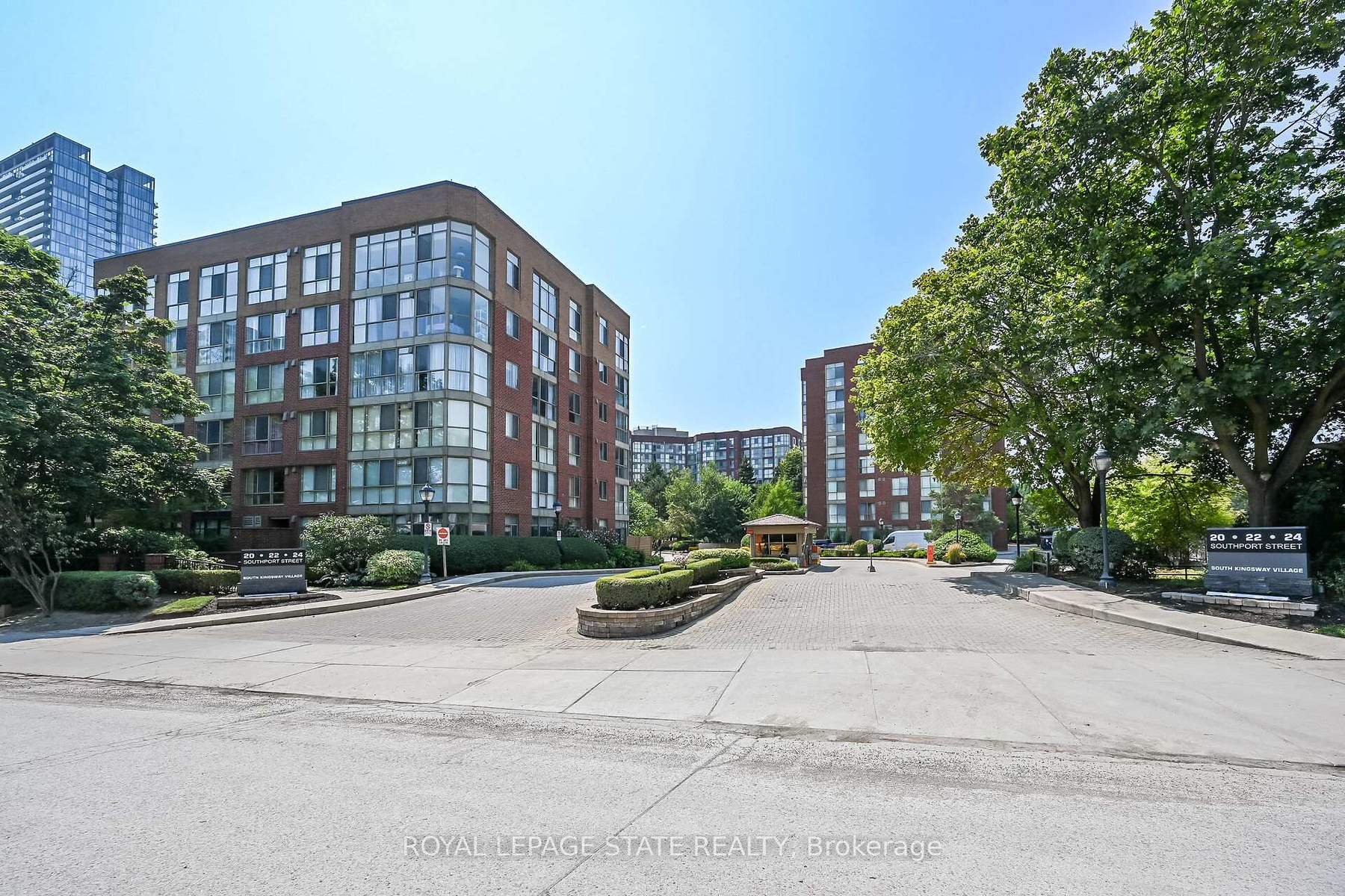 Welcome to this spacious 1 bedroom + Den condo in the desirable South Kingsway Village! Located in the popular High Park - Swansea neighborhood, this bright and open-concept home provides a perfect blend of comfort and convenience. The large den provides versatile space that can easily be used as a second bedroom, office, or recreation room. This well-maintained building boasts incredible amenities including an indoor swimming pool, hot tub, sauna, exercise room, squash courts, games room, library, party room, and guest suites. The gated community offers 24-hour security,. Plus, youre just steps from public transit (TTC), and have quick access to the Lakeshore, Gardiner Expressway, and High Park. The unit features a spacious primary bedroom with dual closets and a large den that could be converted into a second bedroom or additional living space. The bathroom includes both a bathtub and separate shower for added convenience. Best of all, the all-inclusive maintenance fees cover all utilities, cable TV, and internet, making this condo an excellent value for anyone looking for a move-in-ready home with low-maintenance living. With 1underground parking included and everything you need right at your doorstep, this is the perfect place to call home! R.S.A. PROPERTY BEING SOLD AS IS.