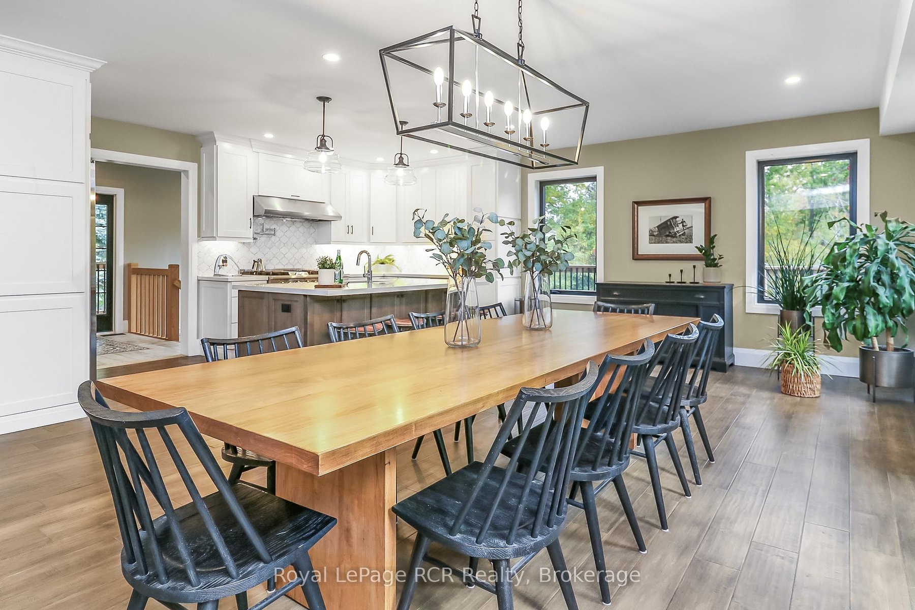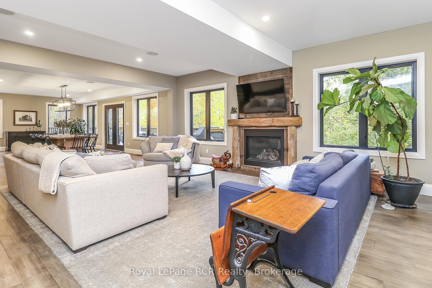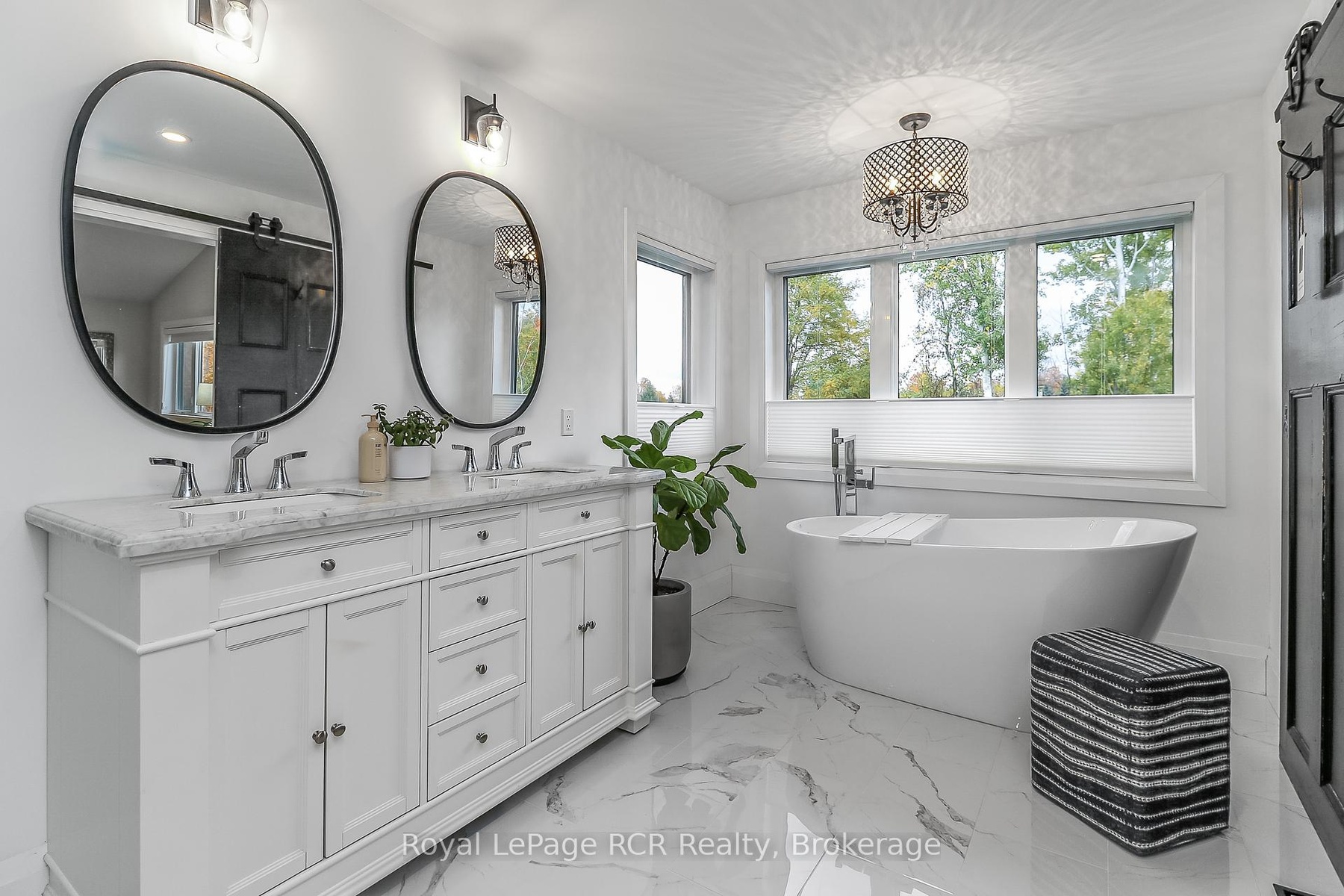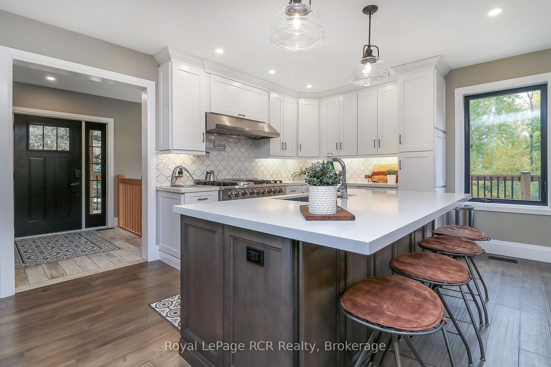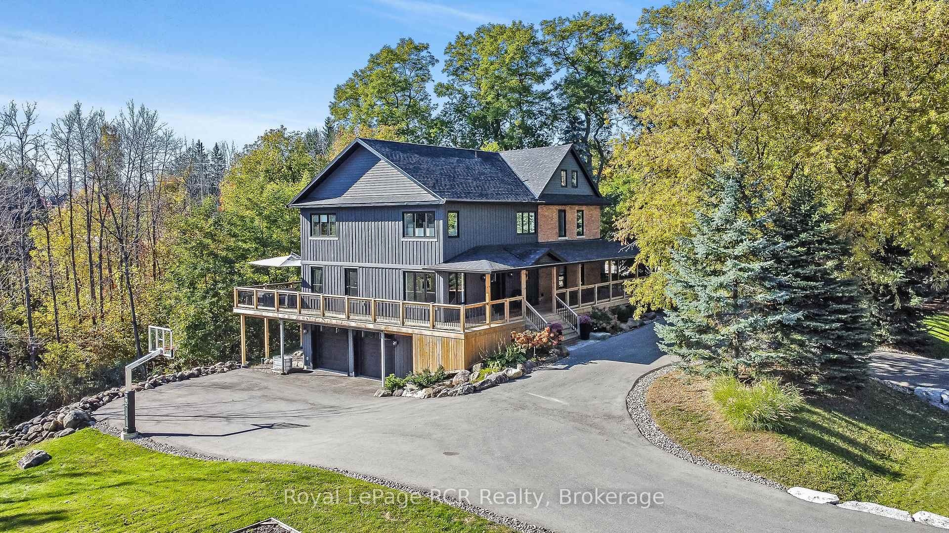 Nestled on a picturesque 3/4 acre, this stunning brick farmhouse style home offers the perfect blend of modern elegance and rustic charm. With an impressive design that showcases chic finishes alongside warm mountain details, this home is ideal for year-round living or weekend getaways. The expansive main floor is a chef's dream, featuring a gourmet kitchen, reclaimed wood fireplace, and ample space for entertaining with a 12-seater dining area. Enjoy the views through oversized windows or from the wrap-around deck and covered porch. This spacious home boasts 5 large bedrooms and 6 bathrooms, plus a separate office, double garage, and generous storage for all your outdoor gear. The flexible third level offers additional possibilities, making it a perfect fit for families or guests of all ages. Outside, the landscaped property invites you to unwind by the fire pit or explore the serene creek. Located just steps from trails and minutes from the slopes, the Bay, and the fabulous amenities in Collingwood and Blue Mountain; this home provides the ultimate upscale lifestyle in a stunning natural setting. Don't miss your chance to experience the beauty and functionality of this exceptional property!