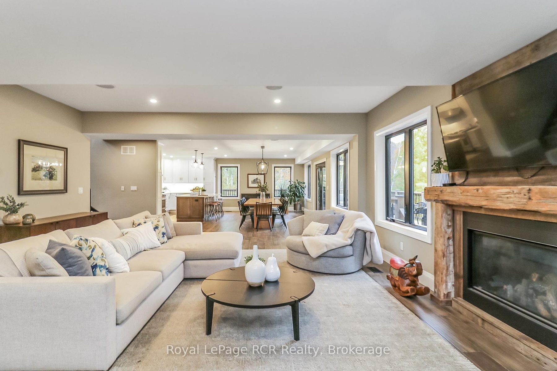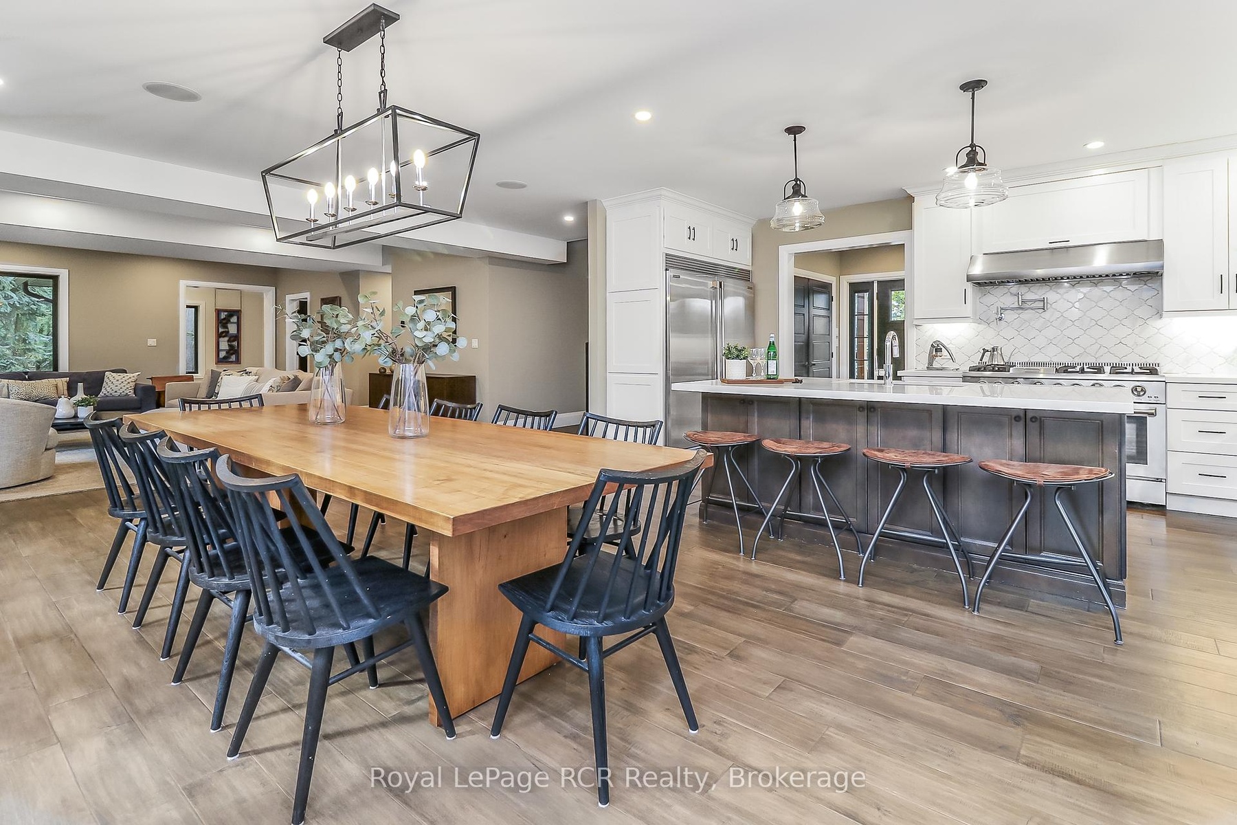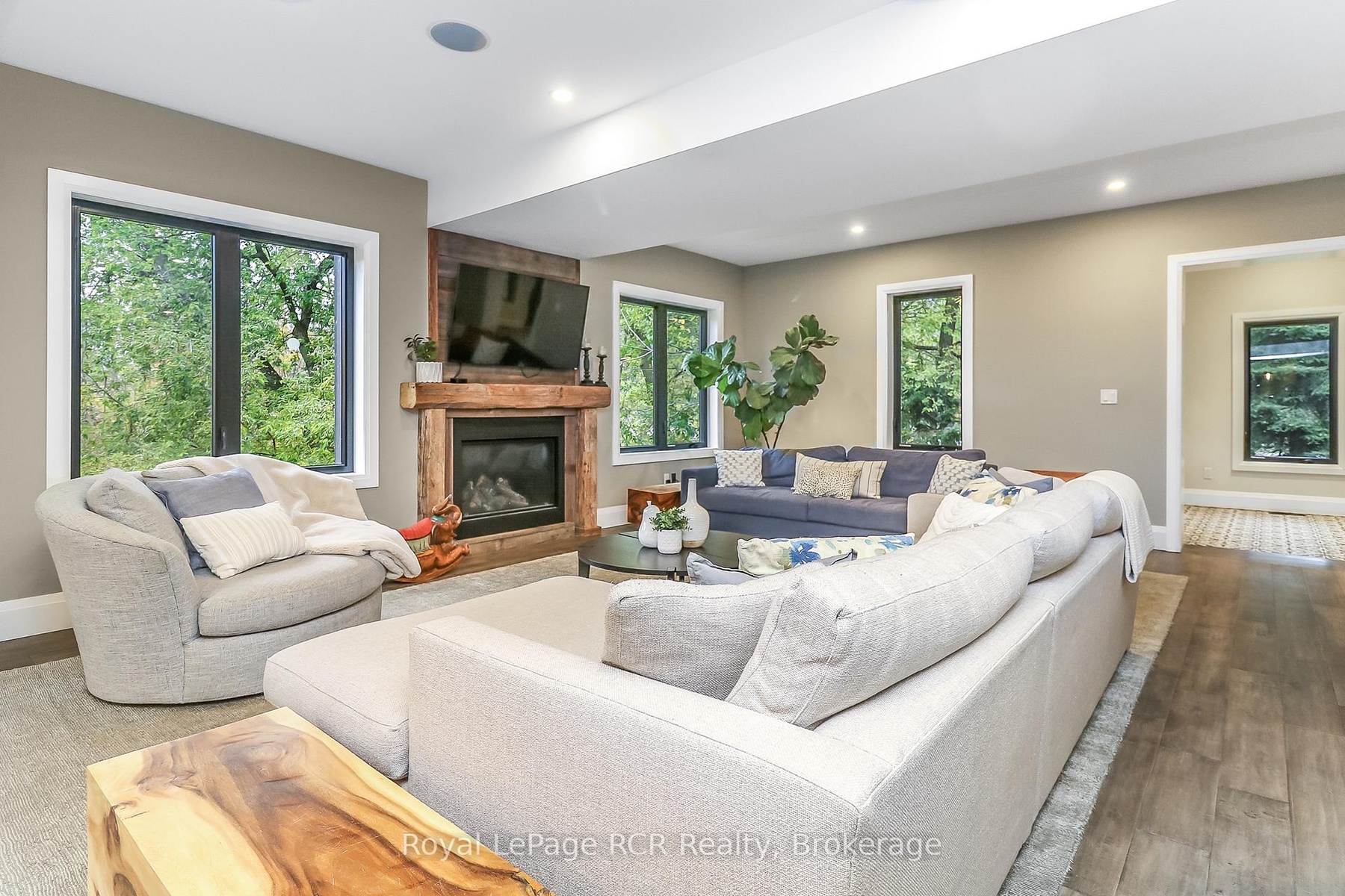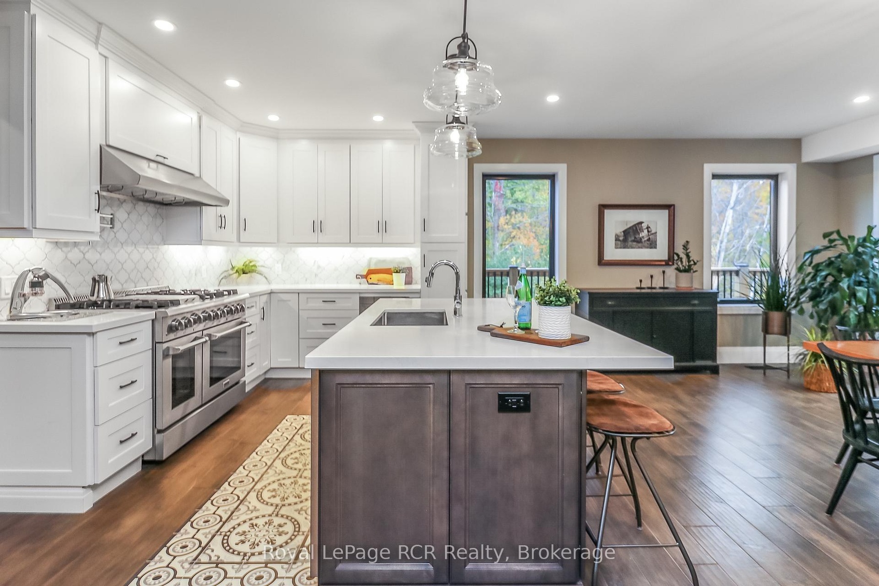 Nestled on a picturesque 3/4 acre, this stunning brick farmhouse style home offers the perfect blend of modern elegance and rustic charm. With an impressive design that showcases chic finishes alongside warm mountain details, this home is ideal for year-round living or weekend getaways. The expansive main floor is a chef's dream, featuring a gourmet kitchen, reclaimed wood fireplace, and ample space for entertaining with a 12-seater dining area. Enjoy the views through oversized windows or from the wrap-around deck and covered porch. This spacious home boasts 5 large bedrooms and 6 bathrooms, plus a separate office, double garage, and generous storage for all your outdoor gear. The flexible third level offers additional possibilities, making it a perfect fit for families or guests of all ages. Outside, the landscaped property invites you to unwind by the fire pit or explore the serene creek. Located just steps from trails and minutes from the slopes, the Bay, and the fabulous amenities in Collingwood and Blue Mountain; this home provides the ultimate upscale lifestyle in a stunning natural setting. Don't miss your chance to experience the beauty and functionality of this exceptional property!
