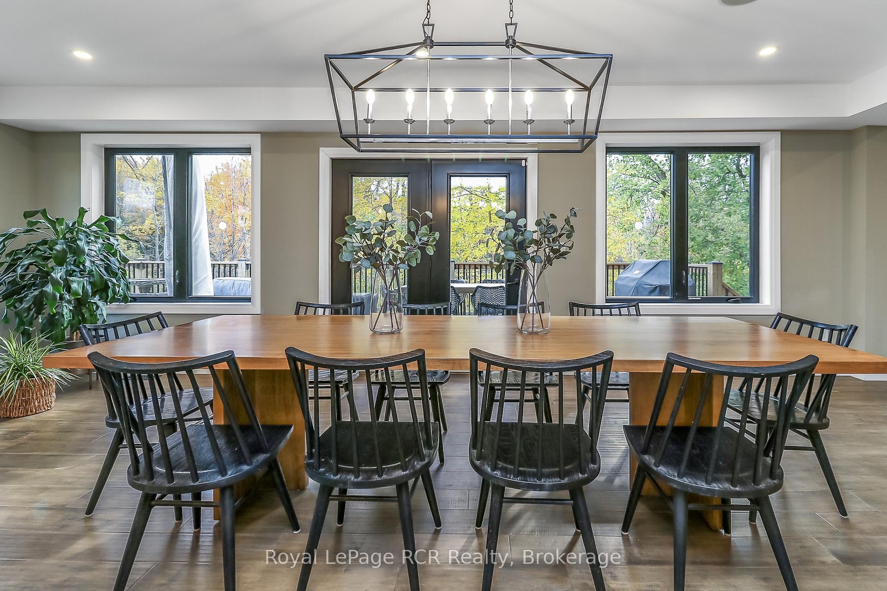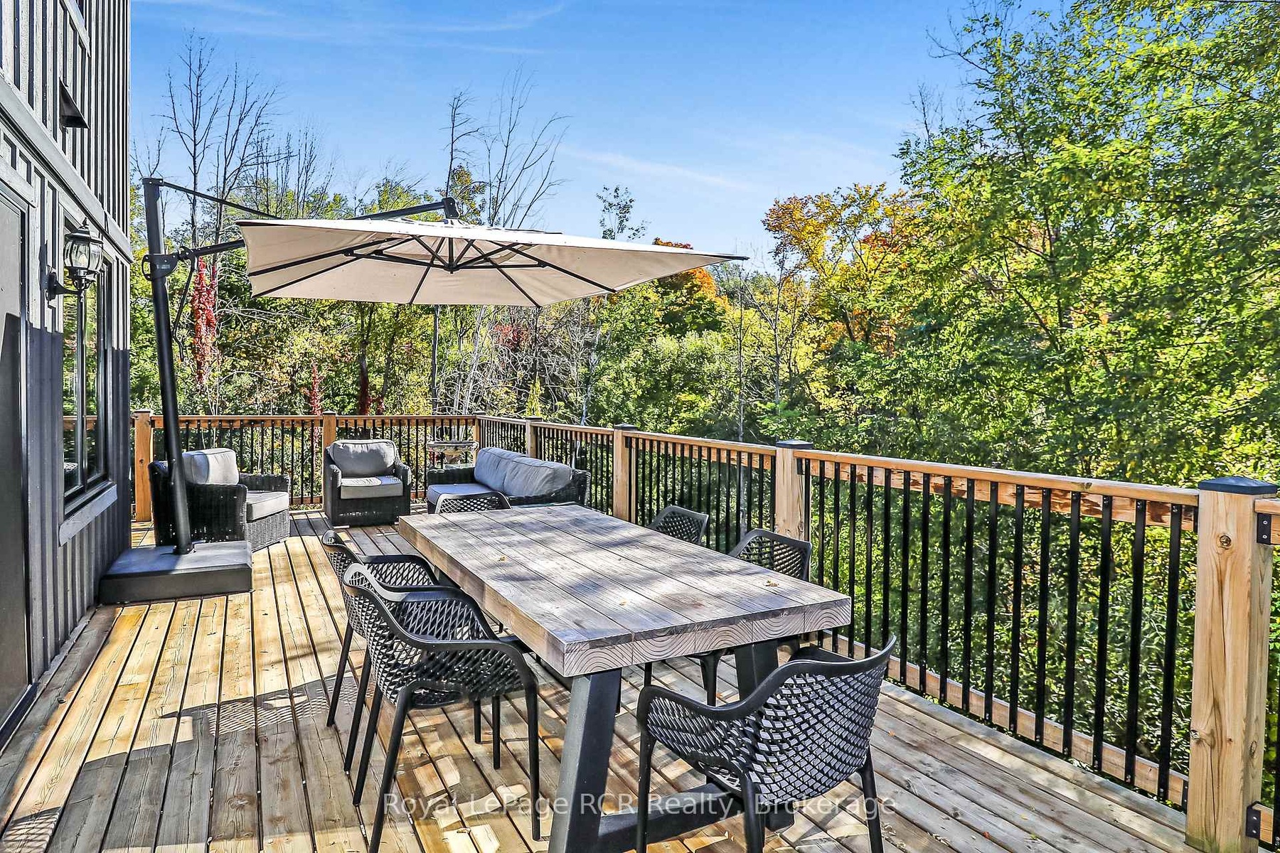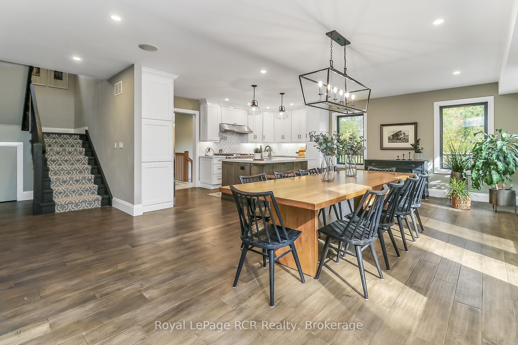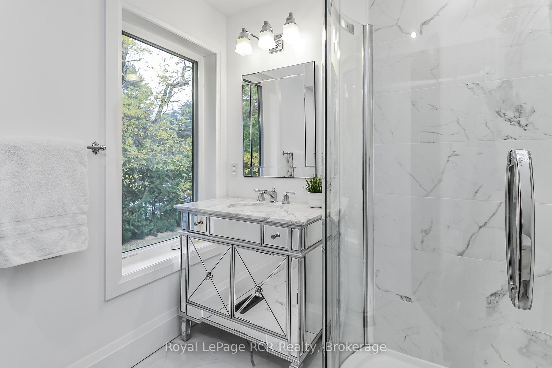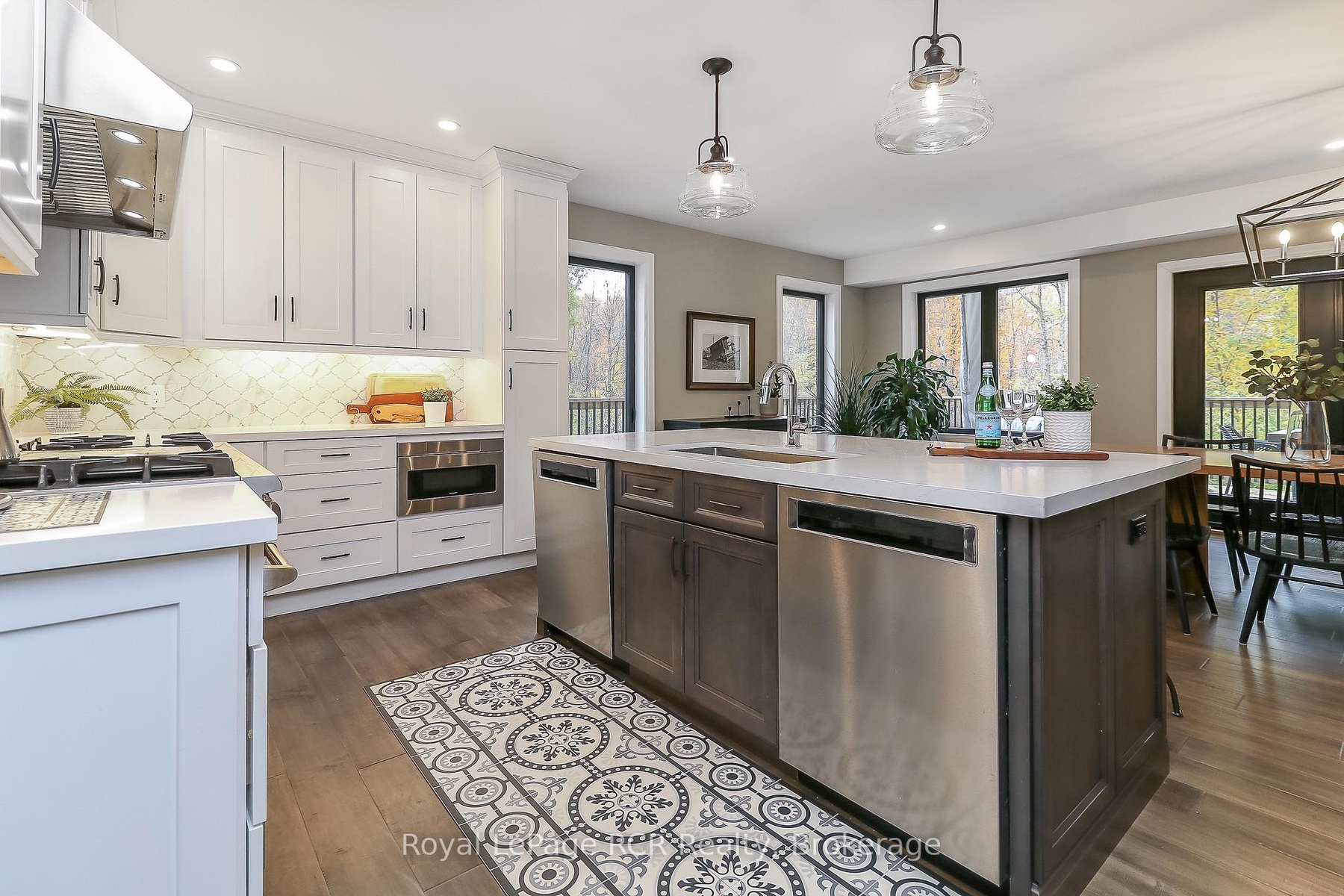 Nestled on a picturesque 3/4 acre, this stunning brick farmhouse style home offers the perfect blend of modern elegance and rustic charm. With an impressive design that showcases chic finishes alongside warm mountain details, this home is ideal for year-round living or weekend getaways. The expansive main floor is a chef's dream, featuring a gourmet kitchen, reclaimed wood fireplace, and ample space for entertaining with a 12-seater dining area. Enjoy the views through oversized windows or from the wrap-around deck and covered porch. This spacious home boasts 5 large bedrooms and 6 bathrooms, plus a separate office, double garage, and generous storage for all your outdoor gear. The flexible third level offers additional possibilities, making it a perfect fit for families or guests of all ages. Outside, the landscaped property invites you to unwind by the fire pit or explore the serene creek. Located just steps from trails and minutes from the slopes, the Bay, and the fabulous amenities in Collingwood and Blue Mountain; this home provides the ultimate upscale lifestyle in a stunning natural setting. Don't miss your chance to experience the beauty and functionality of this exceptional property!