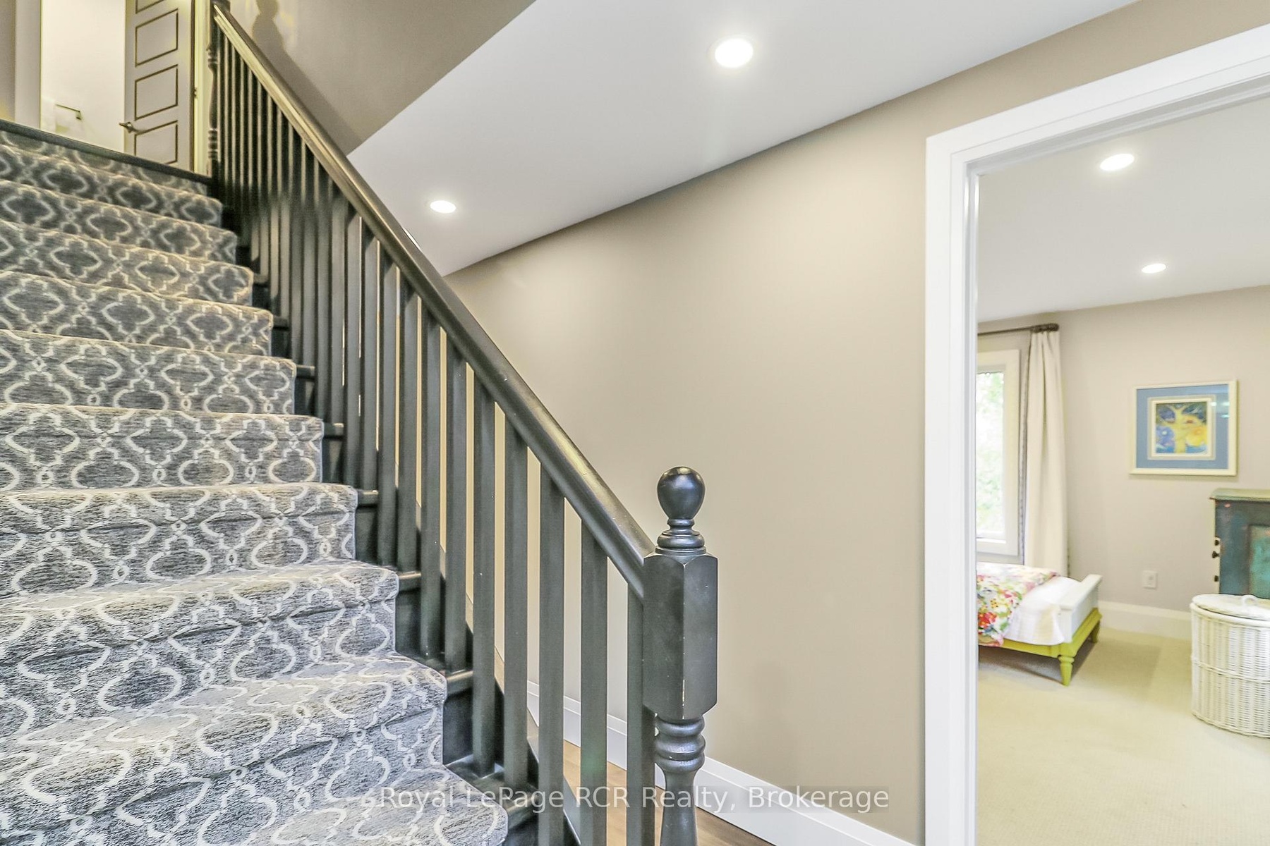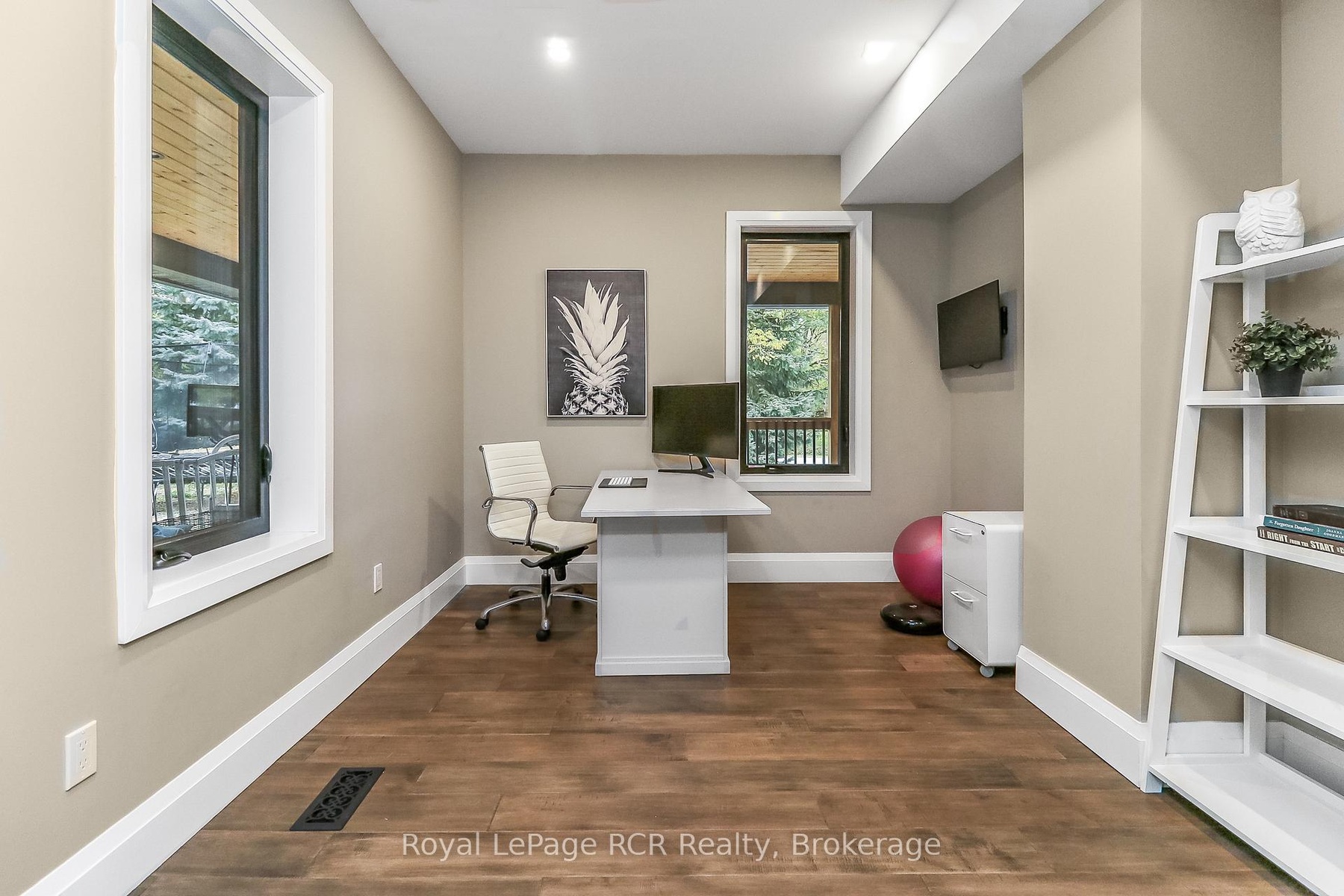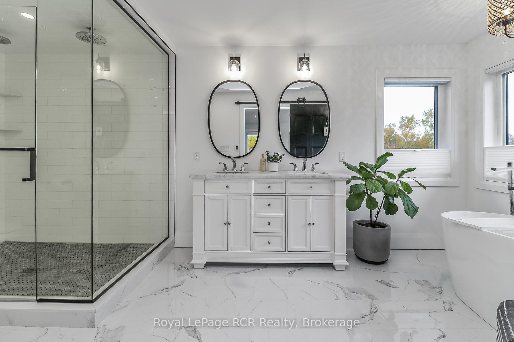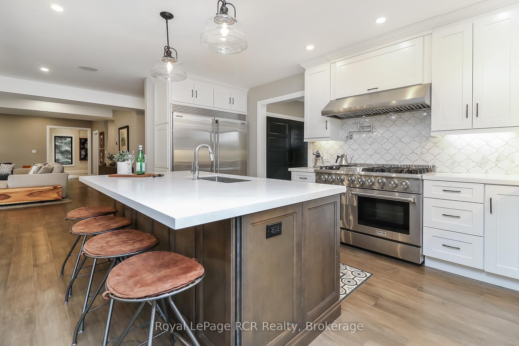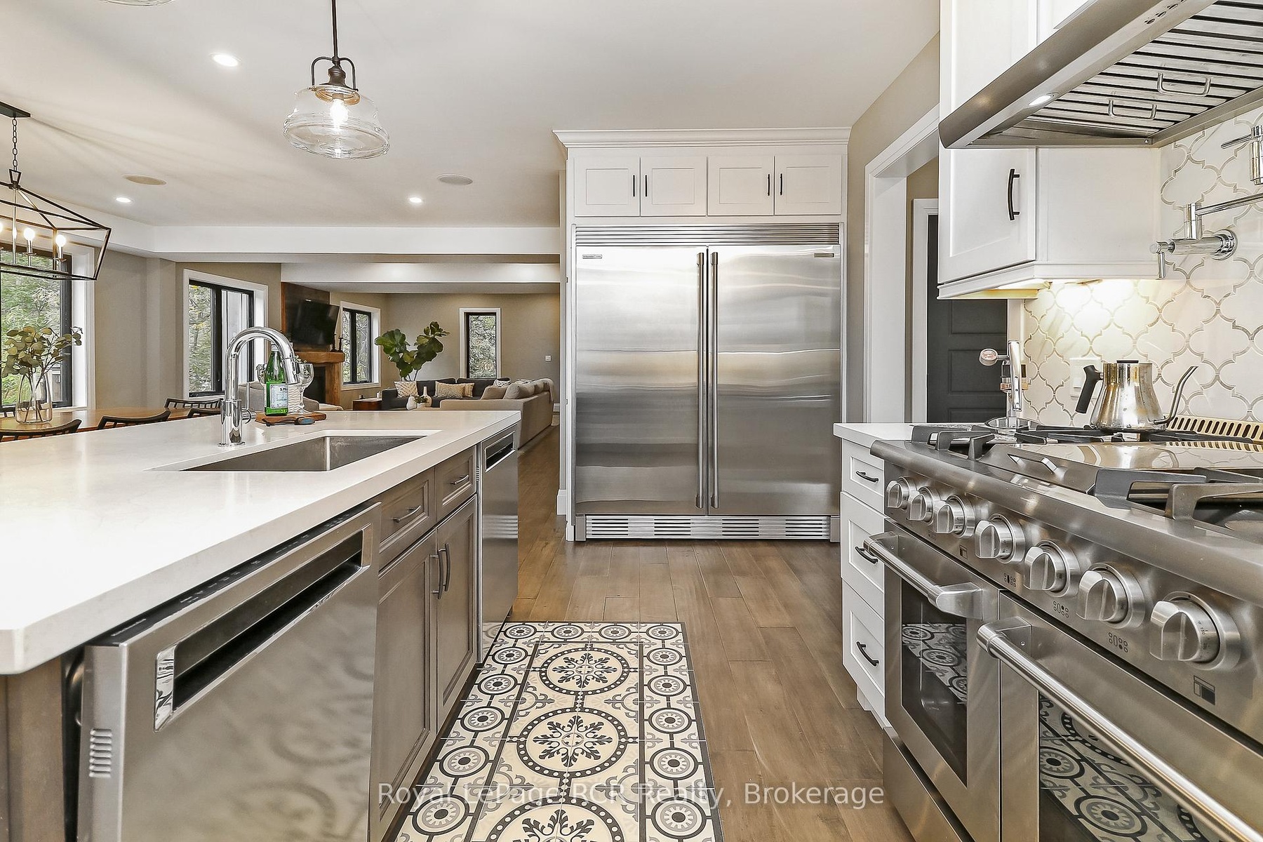 Nestled on a picturesque 3/4 acre, this stunning brick farmhouse style home offers the perfect blend of modern elegance and rustic charm. With an impressive design that showcases chic finishes alongside warm mountain details, this home is ideal for year-round living or weekend getaways. The expansive main floor is a chef's dream, featuring a gourmet kitchen, reclaimed wood fireplace, and ample space for entertaining with a 12-seater dining area. Enjoy the views through oversized windows or from the wrap-around deck and covered porch. This spacious home boasts 5 large bedrooms and 6 bathrooms, plus a separate office, double garage, and generous storage for all your outdoor gear. The flexible third level offers additional possibilities, making it a perfect fit for families or guests of all ages. Outside, the landscaped property invites you to unwind by the fire pit or explore the serene creek. Located just steps from trails and minutes from the slopes, the Bay, and the fabulous amenities in Collingwood and Blue Mountain; this home provides the ultimate upscale lifestyle in a stunning natural setting. Don't miss your chance to experience the beauty and functionality of this exceptional property!