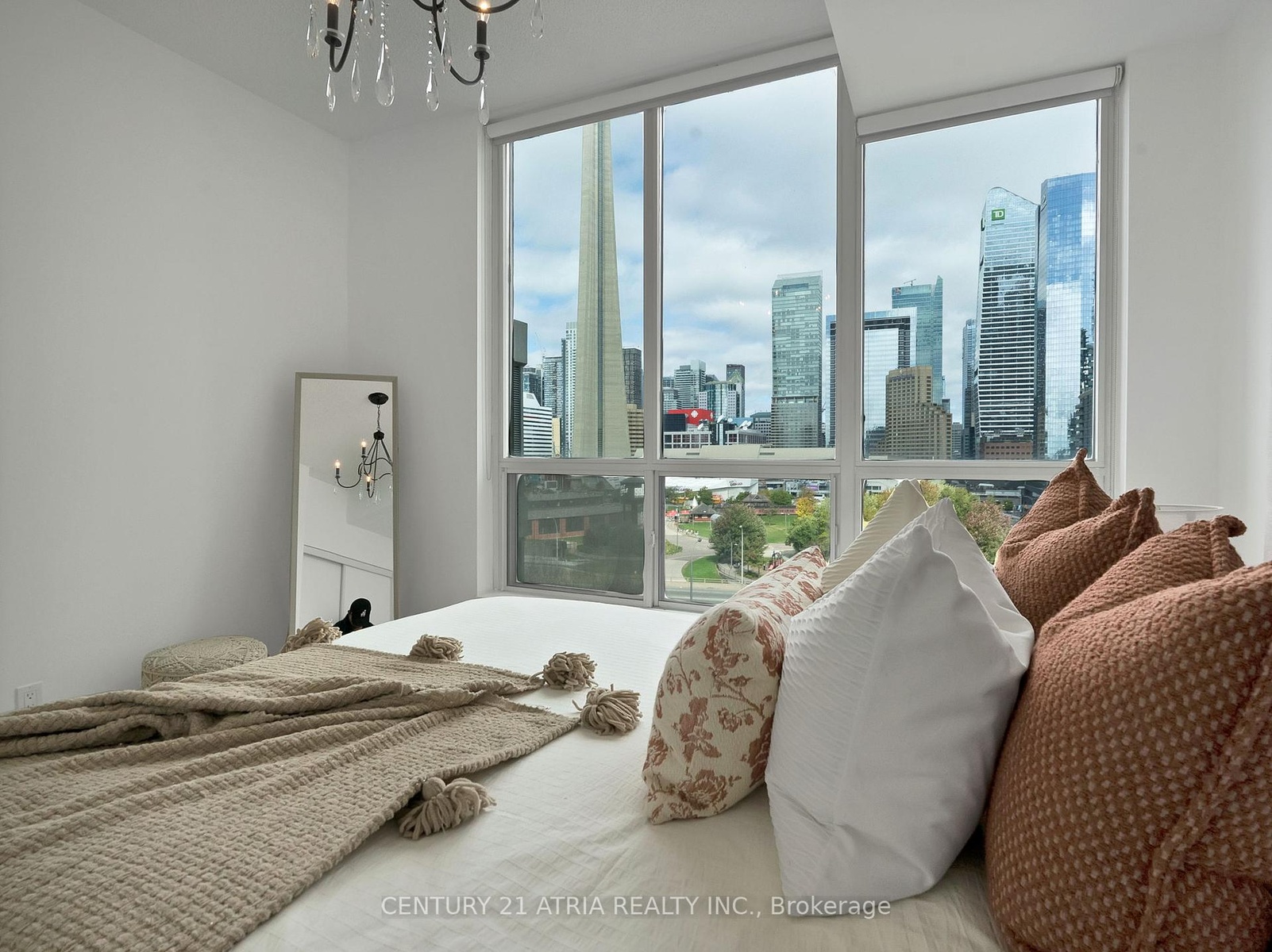 Welcome to The Riviera, where modern design meets the best of waterfront living. This rare one-bedroom suite is among the largest and most functional layouts in the building, offering soaring ceilings, expansive windows, and a thoughtfully designed floor plan that maximizes every inch. Inside, the bright and airy living space features laminate flooring, designer cabinetry, and sleek stainless-steel appliances. The open kitchen, set apart yet seamlessly connected to the living and dining areas, makes entertaining effortless. Step out onto your private balcony to enjoy vibrant city views, while the spacious bedroom offers the luxury of a rare CN Tower view. At The Riviera, enjoy resort-style amenities: 24-hour concierge and security, a fully equipped fitness centre, indoor pool, sauna, hot tub, rooftop terrace with BBQs, guest suites, party and meeting rooms, visitor parking, and secure bike storage. Located in Toronto's dynamic Harbourfront community, you're just steps to the Martin Goodman Trail, waterfront parks, and marinas, plus cultural landmarks like Harbourfront Centre, Rogers Centre, and the CN Tower. Daily essentials are close at hand with Longo's, cafés, shops, and restaurants along Queens Quay. Commuting is effortless with streetcars at your door, Union Station within walking distance, and quick access to the Gardiner Expressway and Lake Shore Boulevard. This one-of-a-kind residence combines size, style, and location the perfect opportunity to experience the very best of city living on the waterfront.