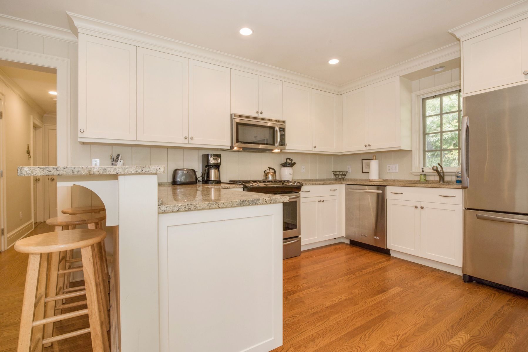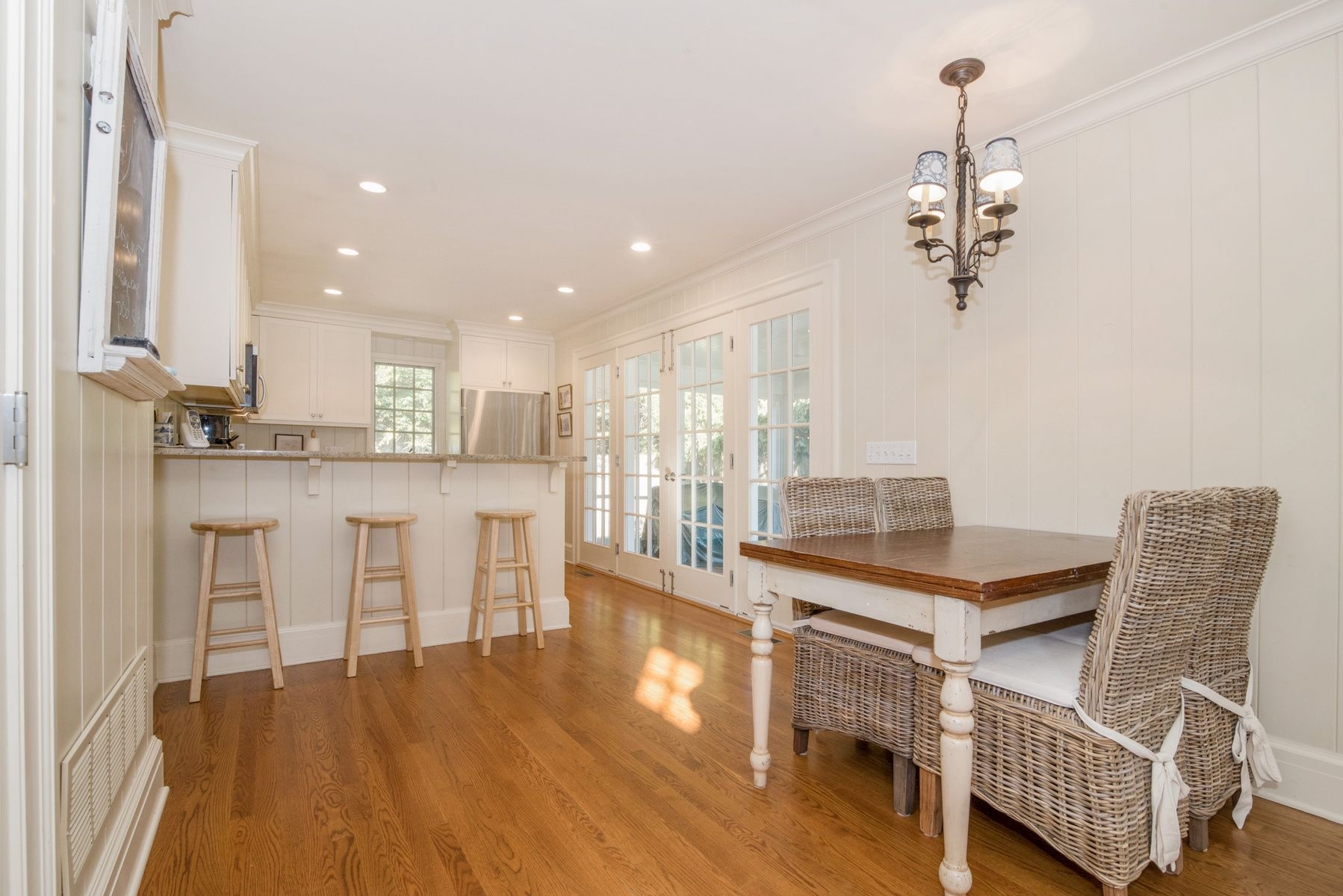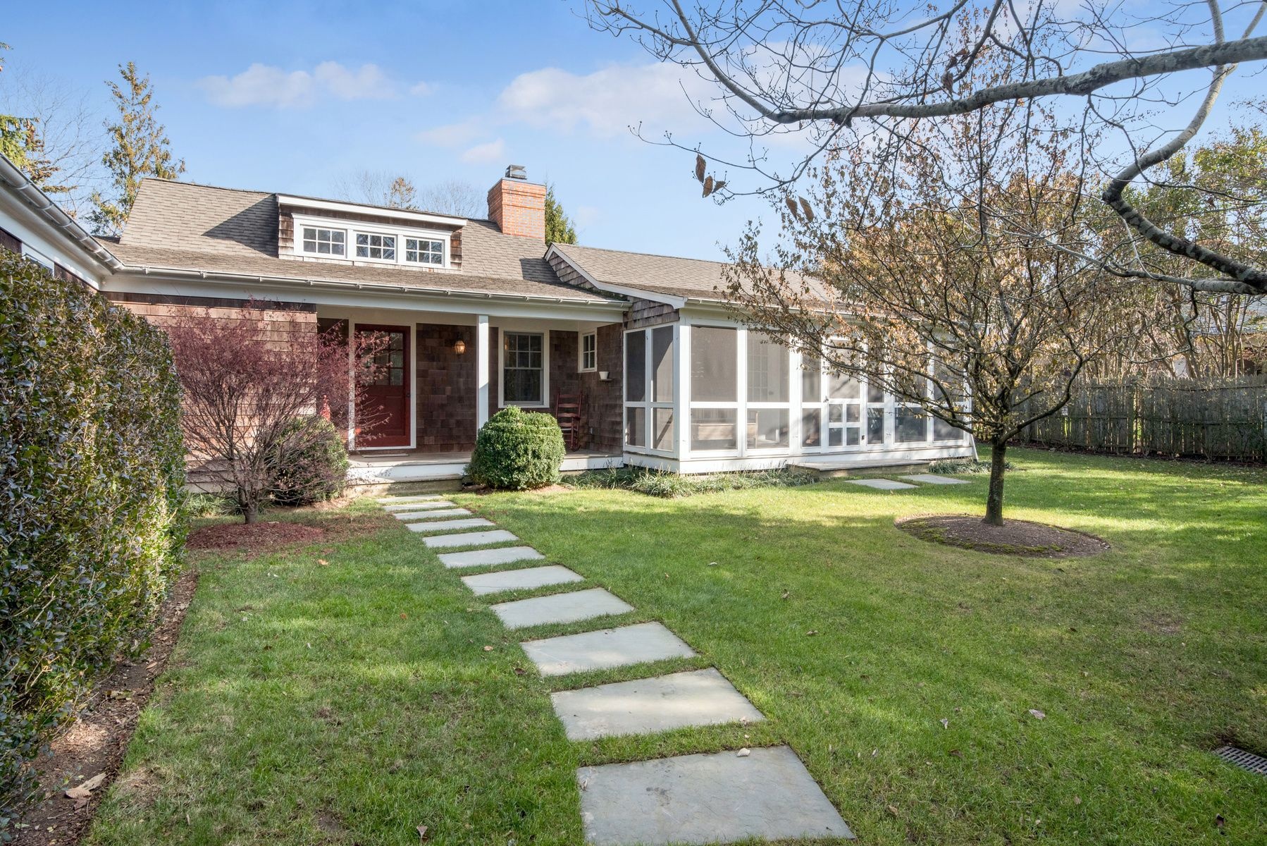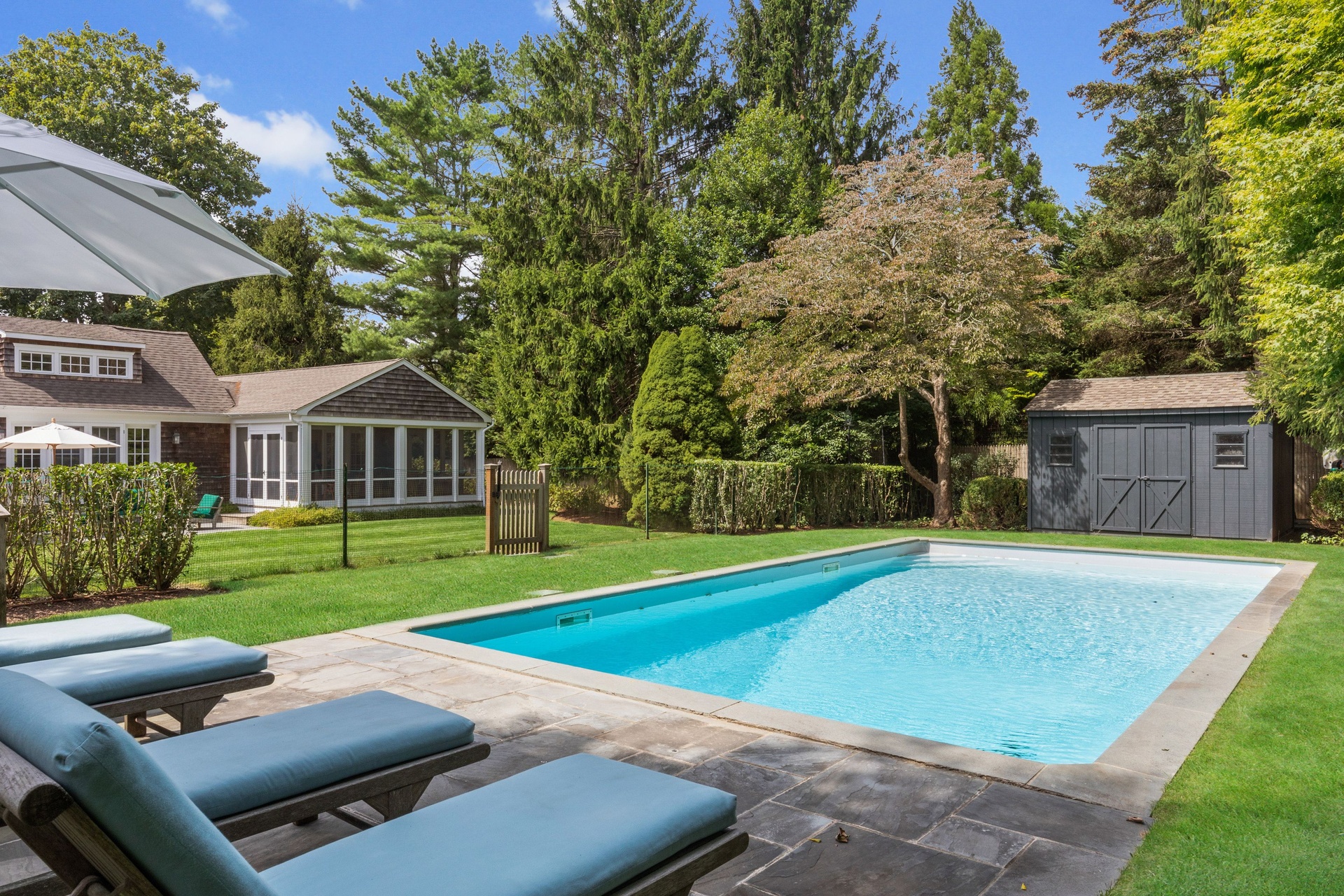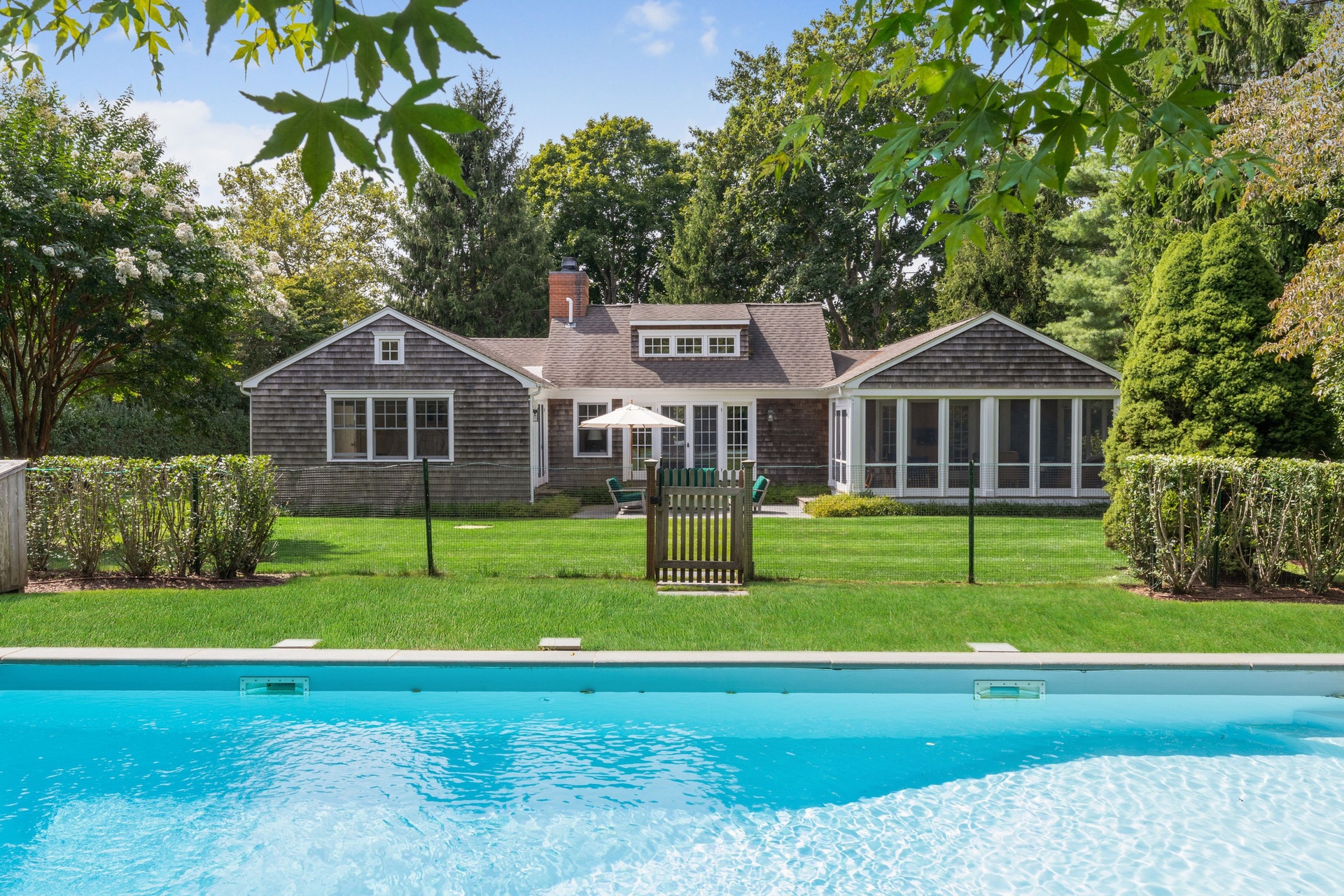 Tastefully renovated, great location near beach, Farmers market, Jitney, shopping, LIRR train station and restaurants. House has a beach feeling with a gourmet kitchen, private swimming pool with a huge yard. Enjoy your meals in the screened-in porch..