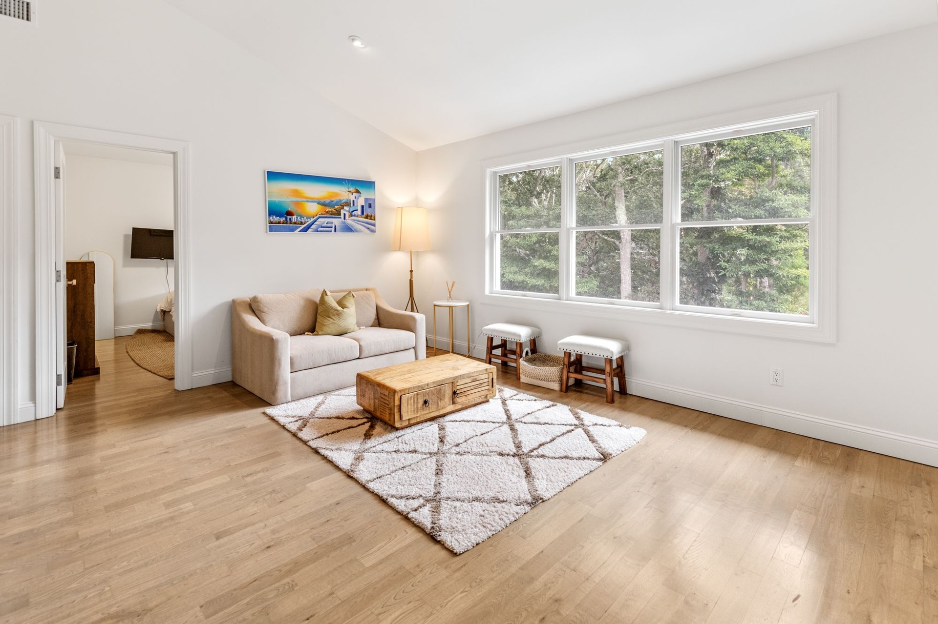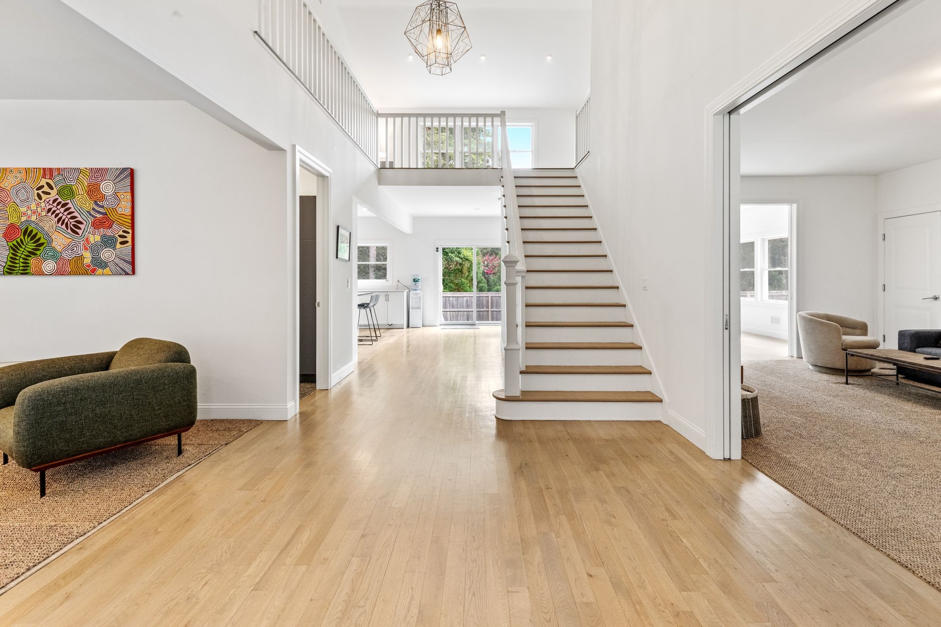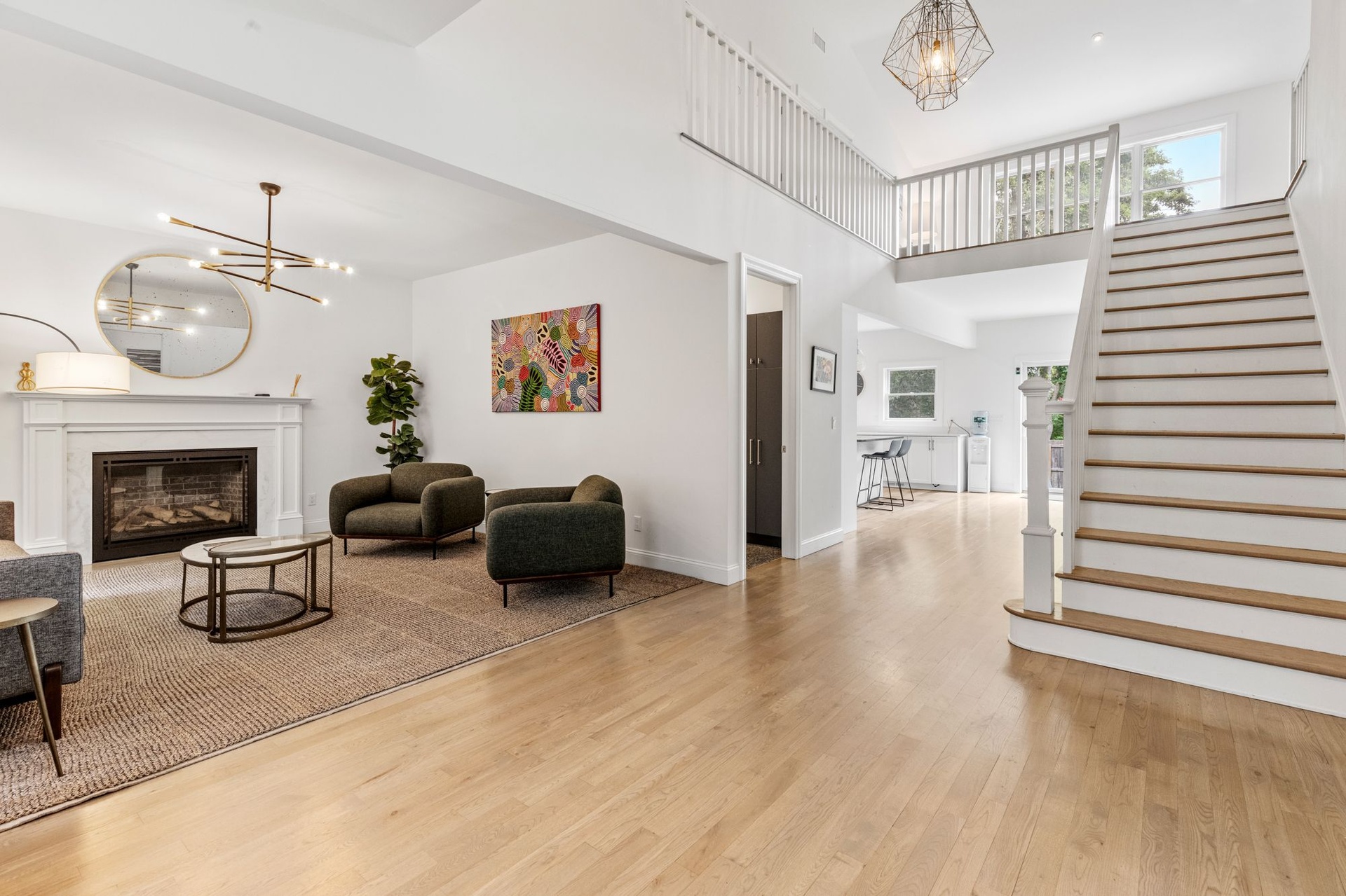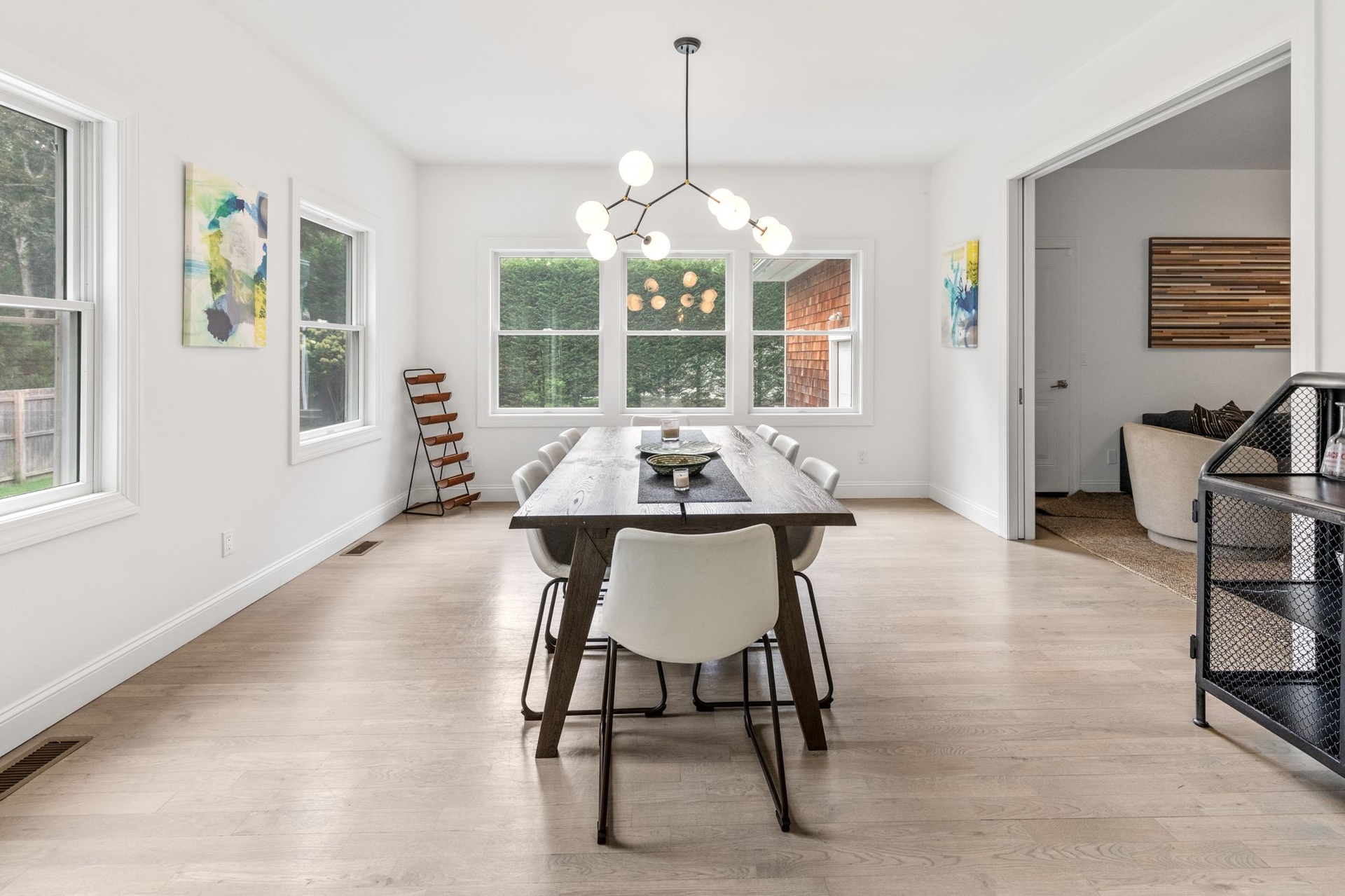 Step into a Hamptons summer at its best. This stylish five-bedroom, four-bath East Hampton home blends bright modern design with the ease of indoor-outdoor living, just minutes from the beaches and East Hampton Village. The double-height entry sets the tone, leading to an open concept main level where a chef's kitchen with oversized island flows seamlessly to the dining area and living spaces. Walls of windows frame the backyard, creating a natural extension to the deck and heated pool-perfect for sun-soaked afternoons, al fresco meals, and evening gatherings. Upstairs, the serene primary suite is complemented by additional spacious bedrooms and a lofted sitting area, offering both privacy and connection. On the finished lower level, you'll find a fully equipped gym, office, expansive recreation/media room, and a private guest suite-ideal for extended summer living. Every detail is designed for comfort and versatility, whether hosting a festive dinner, enjoying quiet mornings poolside, or settling into a productive remote workday. With its prime location near village shops, dining, and ocean beaches, 38 Lincoln Street captures the full Hamptons lifestyle-where entertaining, relaxing, and recharging all come naturally.