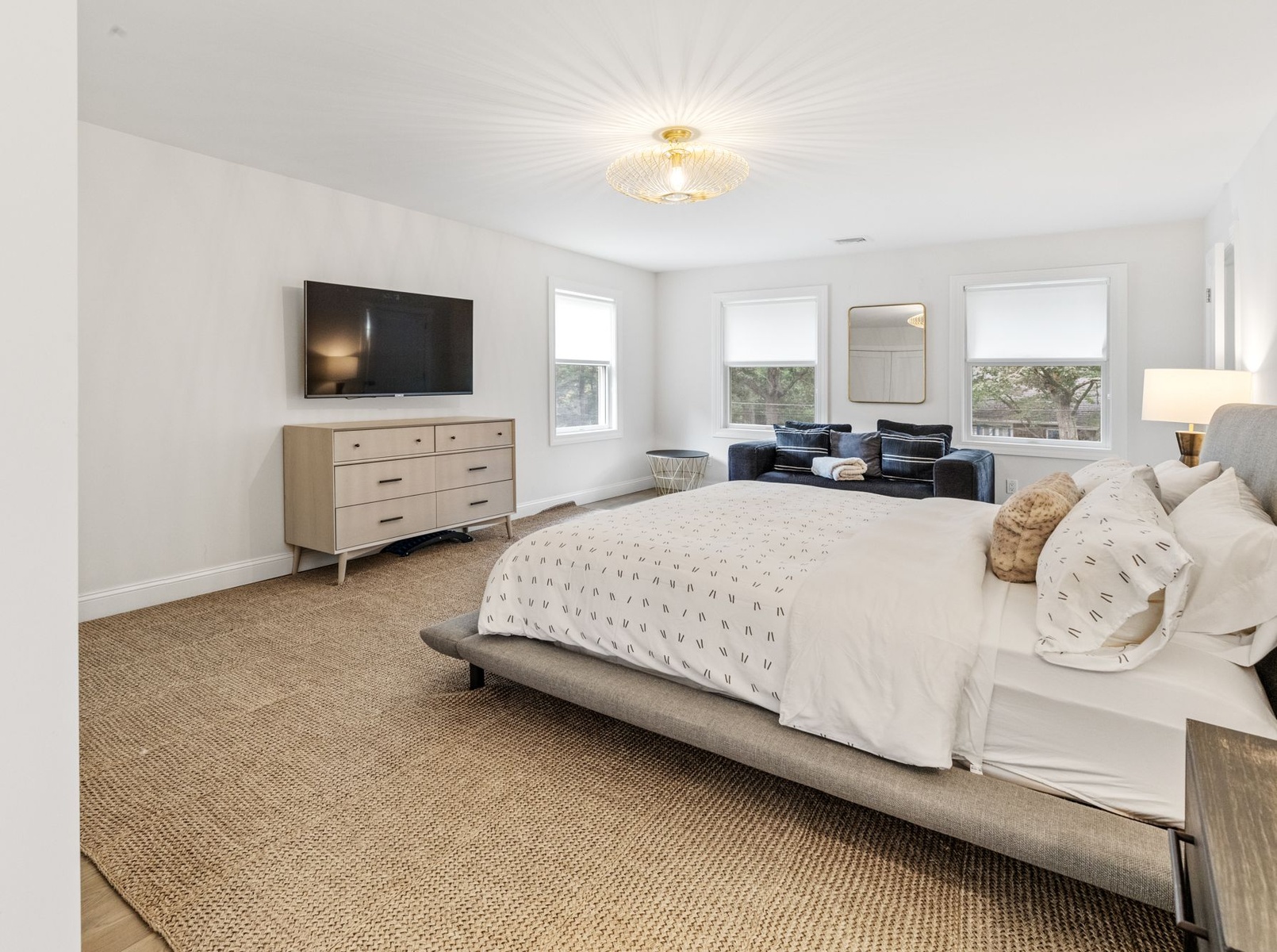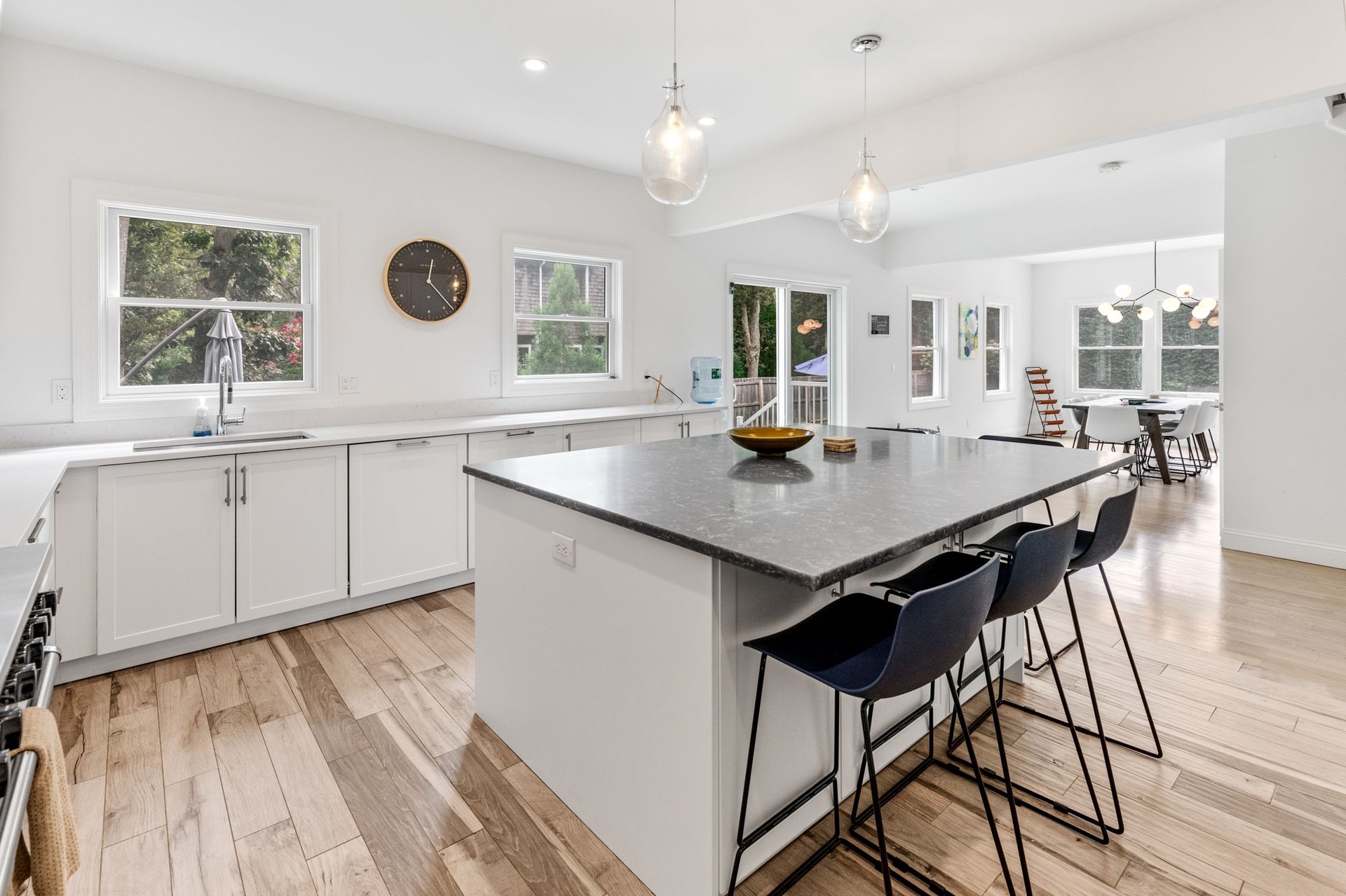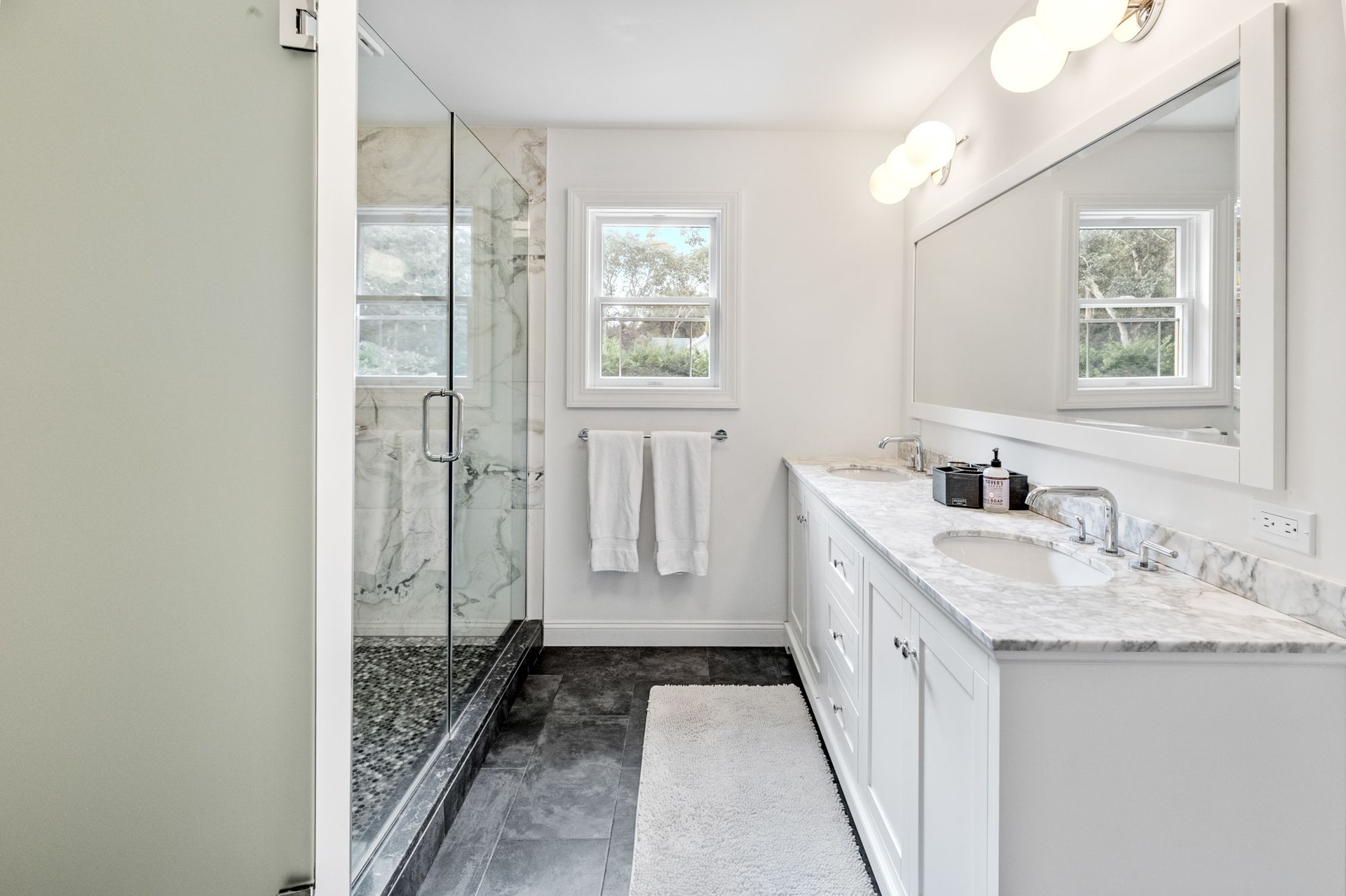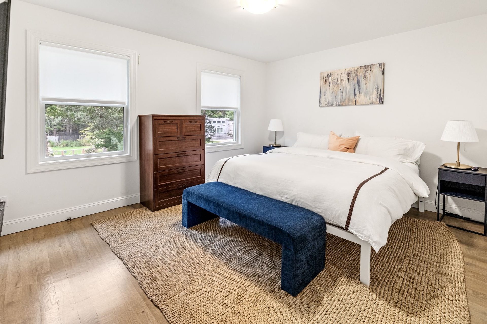 Step into a Hamptons summer at its best. This stylish five-bedroom, four-bath East Hampton home blends bright modern design with the ease of indoor-outdoor living, just minutes from the beaches and East Hampton Village. The double-height entry sets the tone, leading to an open concept main level where a chef's kitchen with oversized island flows seamlessly to the dining area and living spaces. Walls of windows frame the backyard, creating a natural extension to the deck and heated pool-perfect for sun-soaked afternoons, al fresco meals, and evening gatherings. Upstairs, the serene primary suite is complemented by additional spacious bedrooms and a lofted sitting area, offering both privacy and connection. On the finished lower level, you'll find a fully equipped gym, office, expansive recreation/media room, and a private guest suite-ideal for extended summer living. Every detail is designed for comfort and versatility, whether hosting a festive dinner, enjoying quiet mornings poolside, or settling into a productive remote workday. With its prime location near village shops, dining, and ocean beaches, 38 Lincoln Street captures the full Hamptons lifestyle-where entertaining, relaxing, and recharging all come naturally.