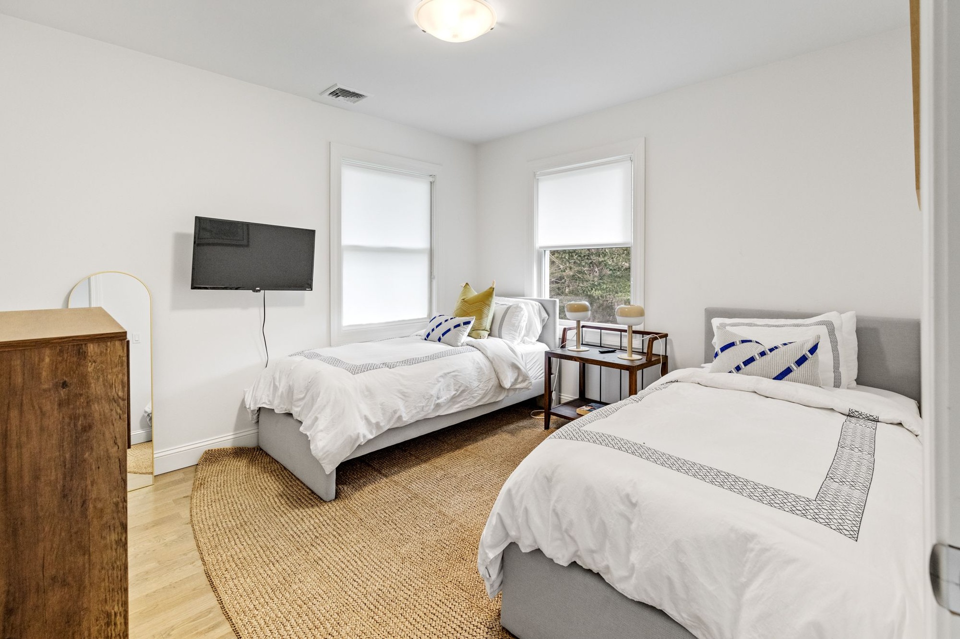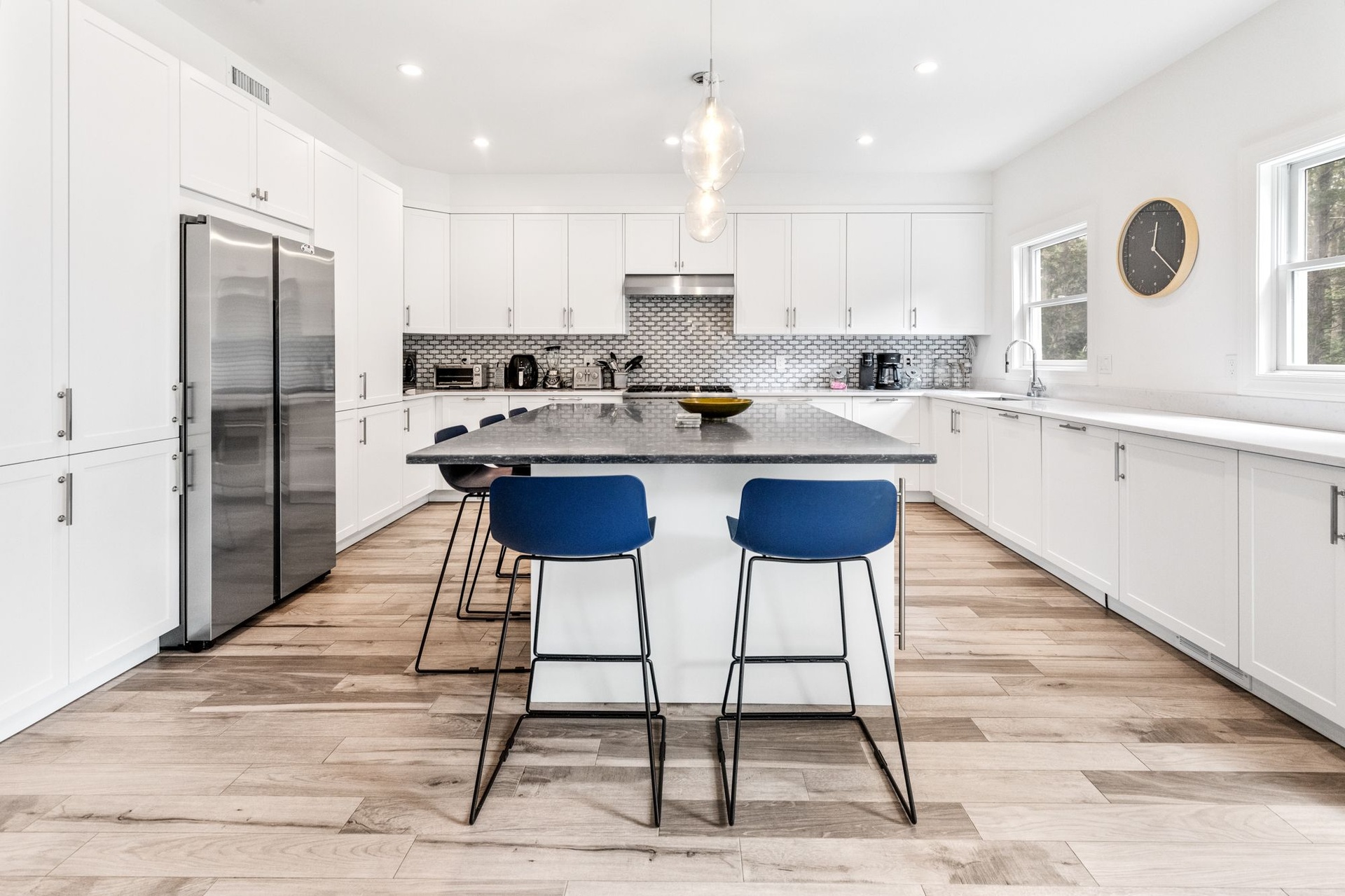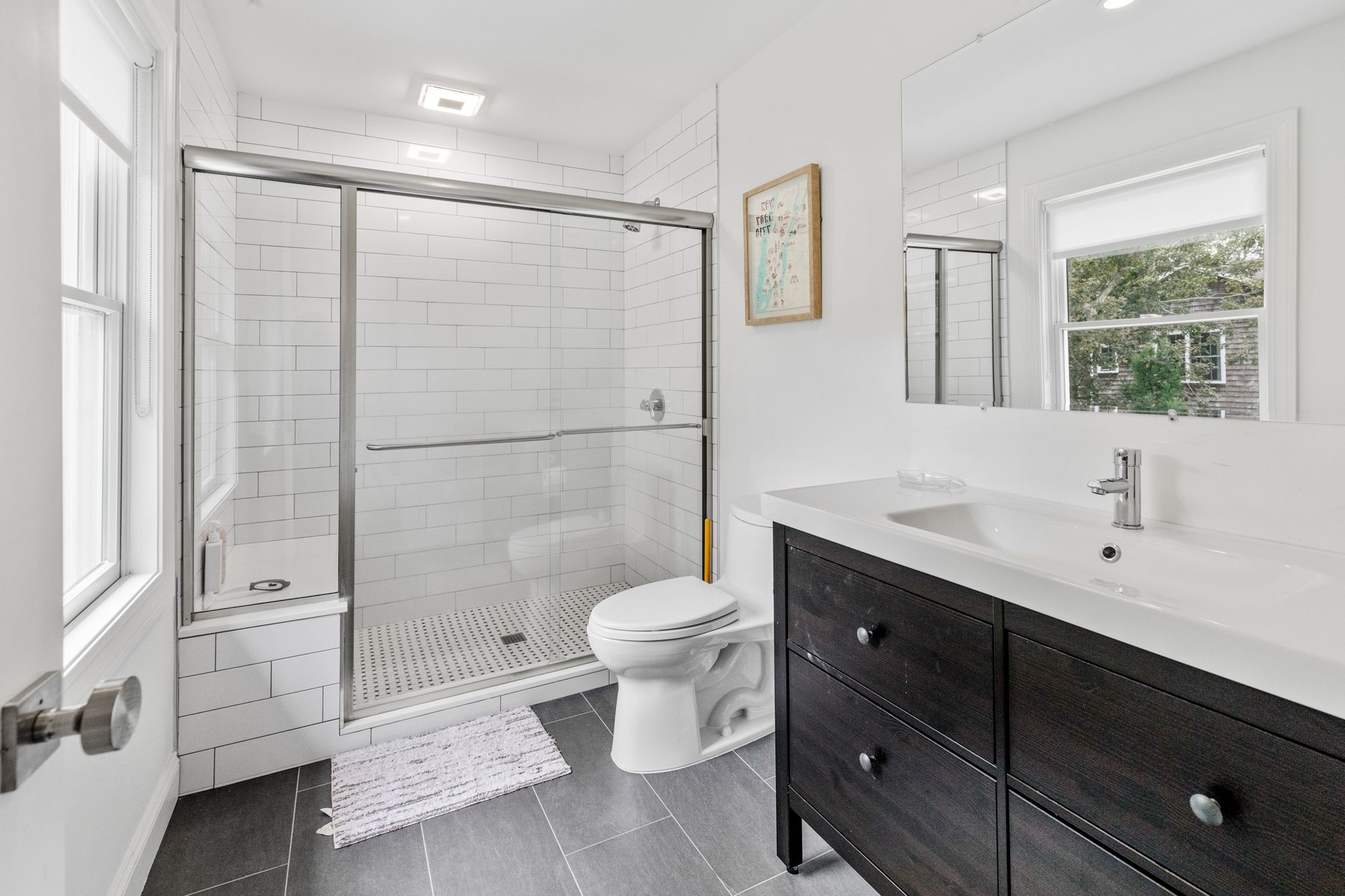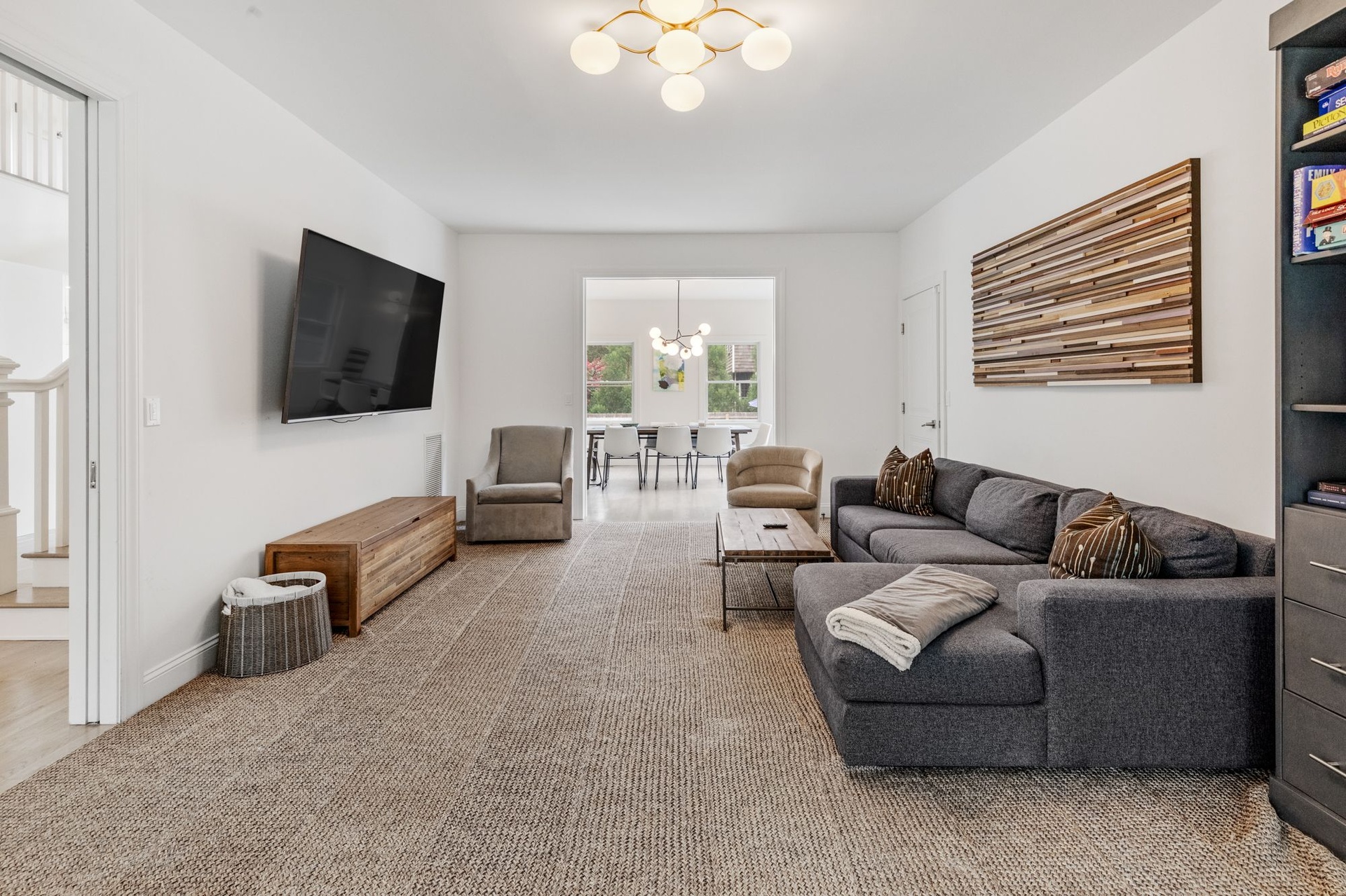 Step into a Hamptons summer at its best. This stylish five-bedroom, four-bath East Hampton home blends bright modern design with the ease of indoor-outdoor living, just minutes from the beaches and East Hampton Village. The double-height entry sets the tone, leading to an open concept main level where a chef's kitchen with oversized island flows seamlessly to the dining area and living spaces. Walls of windows frame the backyard, creating a natural extension to the deck and heated pool-perfect for sun-soaked afternoons, al fresco meals, and evening gatherings. Upstairs, the serene primary suite is complemented by additional spacious bedrooms and a lofted sitting area, offering both privacy and connection. On the finished lower level, you'll find a fully equipped gym, office, expansive recreation/media room, and a private guest suite-ideal for extended summer living. Every detail is designed for comfort and versatility, whether hosting a festive dinner, enjoying quiet mornings poolside, or settling into a productive remote workday. With its prime location near village shops, dining, and ocean beaches, 38 Lincoln Street captures the full Hamptons lifestyle-where entertaining, relaxing, and recharging all come naturally.