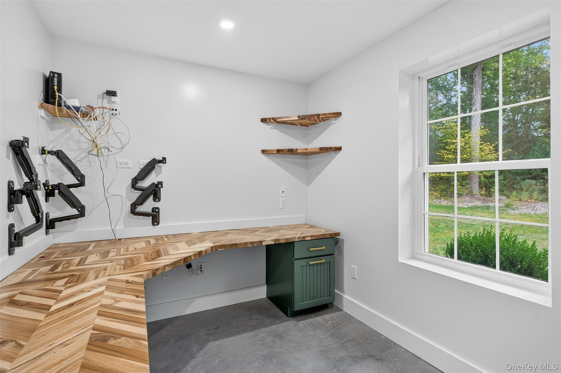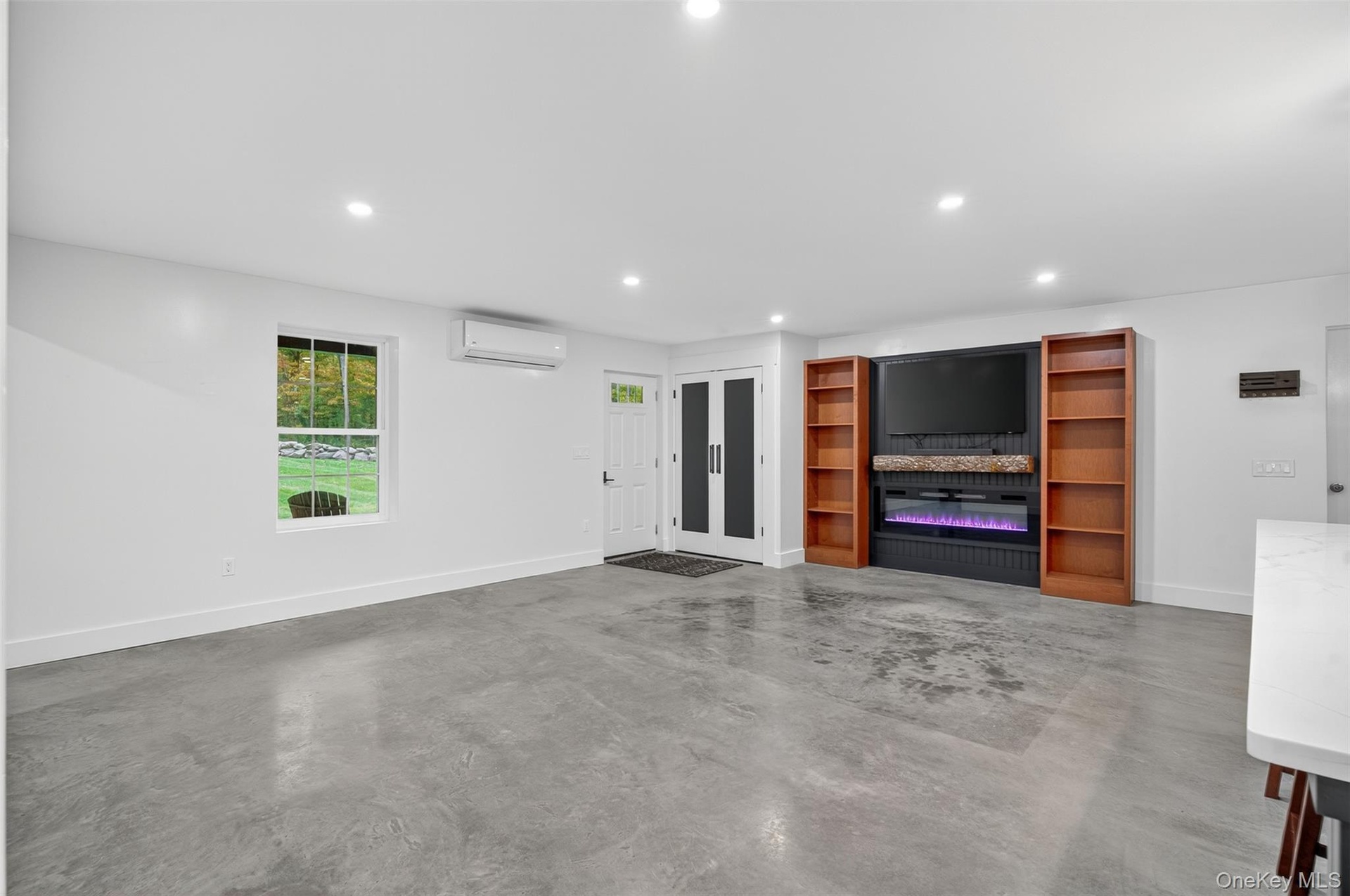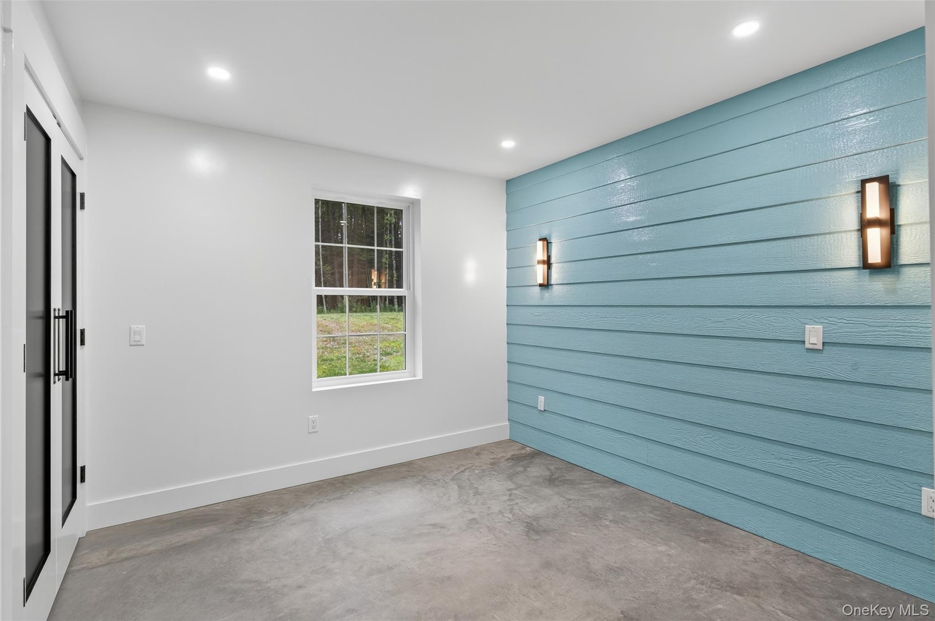 Introducing the Black and Gold Barndo at Hemlock Hollows! Tucked away at the end of a well-maintained private road, features this 1,260 sqft 2-bedroom 2-bath home on 4.5 secluded acres. Surrounded by nature and wildlife, this double primary, single level open floor plan, boasts a 4-car garage, a large work from home office and modernized attributes. Ideal for hosting, this newly constructed and gently-used home features a large kitchen with quartz countertops, Z-Line appliances, including a six-lite propane stove and plenty of room to spread out and enjoy your weekend company. A lovely accent wall with built in shelves, electric fireplace and a live edge cherry mantle hand selected from the land during construction, ties the main living area together. The main primary suite is a statement on its own, with a large accent wall, double closets and an enormous spa like walk-in tile shower. Platinum radiant heated concrete floors flow through the house giving off a comfortable warmth through the chilly winter nights. Cooper-Hunter ductless mini-splits provide air conditioning and additional heat if needed. Looking for room to expand? The attached 4-car garage equipped with electric car charging capabilities, is fully finished and offers 960 square feet of additional room for enhancing the living space whether it is adding another bedroom or making an art-studio or home gym. Outside find an expansive yard for gardening, a large car port and room for a pool (with proper permitting). The car port can also be blank canvas for a pool house, additional ADU (with proper permitting) or simply just storage. Lastly, don’t look past the Generac stand-by generator equipped to power the whole house. Conveniently located at the foothills of the Minnewaska Preserve this location offers easy access to world class hiking along with local breweries, Inness Resort and Spa and everything else the Hudson Valley has to offer. Come and take a look at this gently lived in, well maintained and cared for home. Once you arrive you will not want to leave!