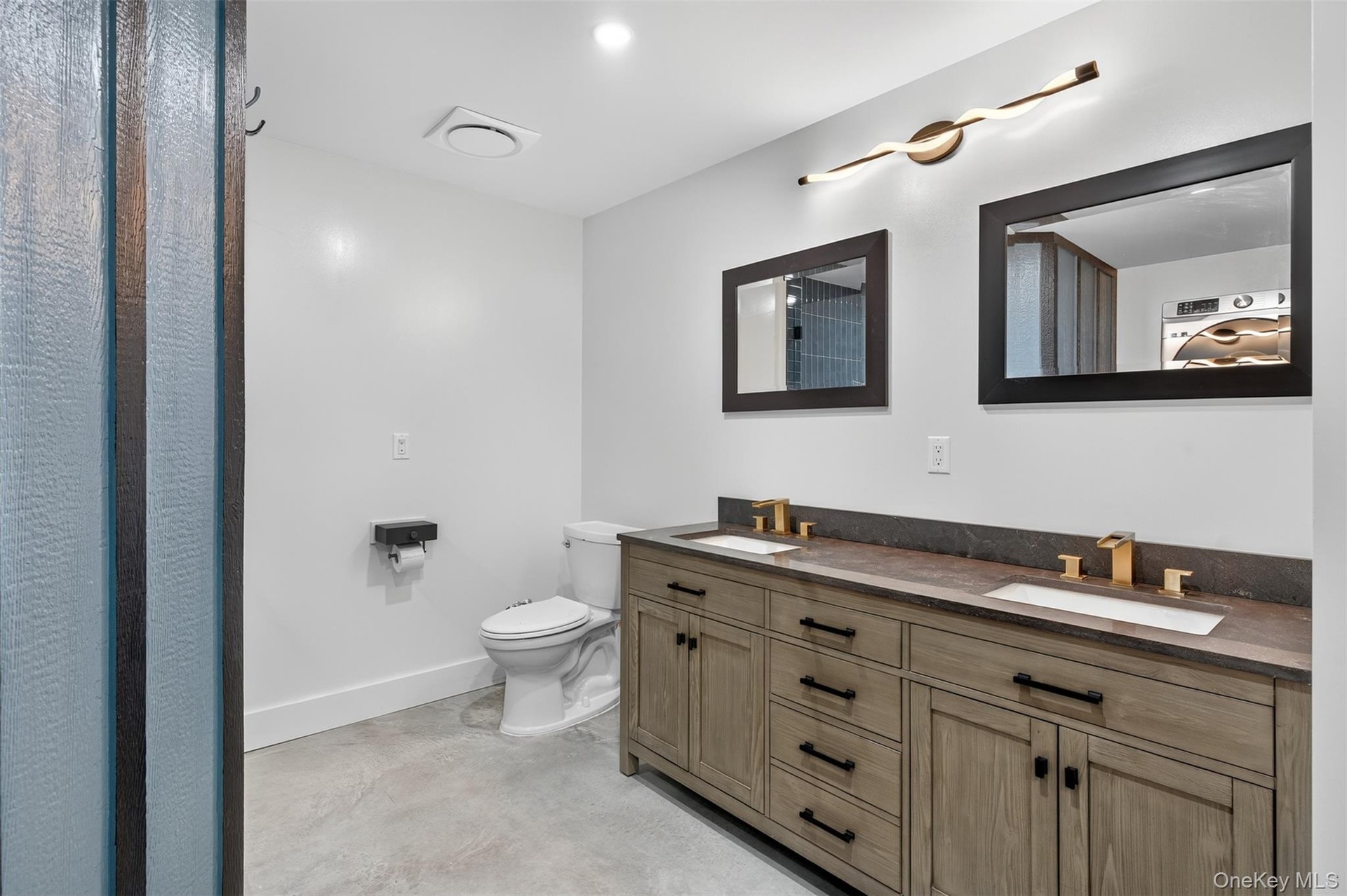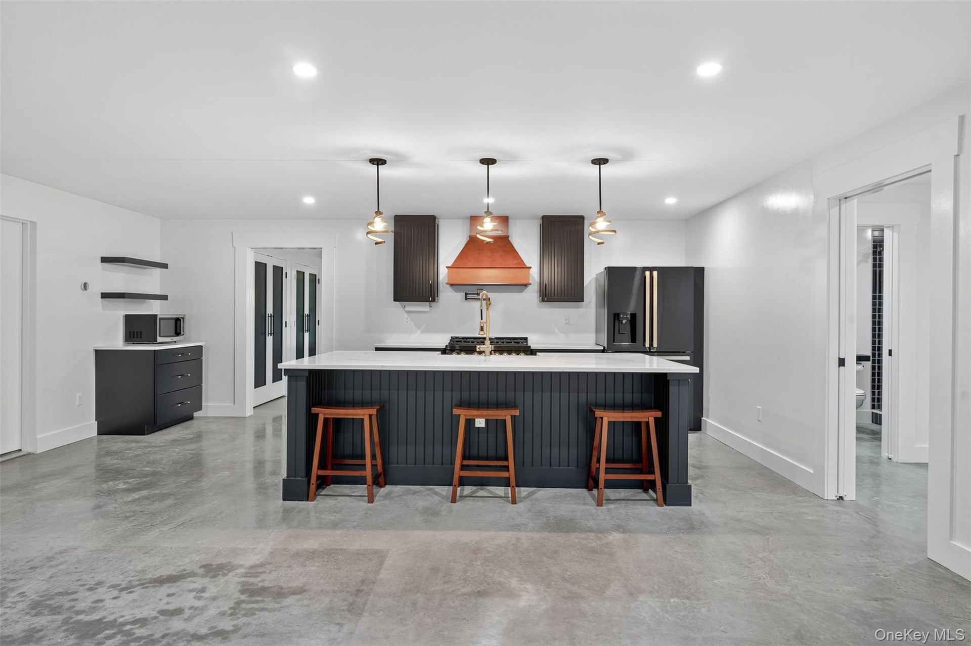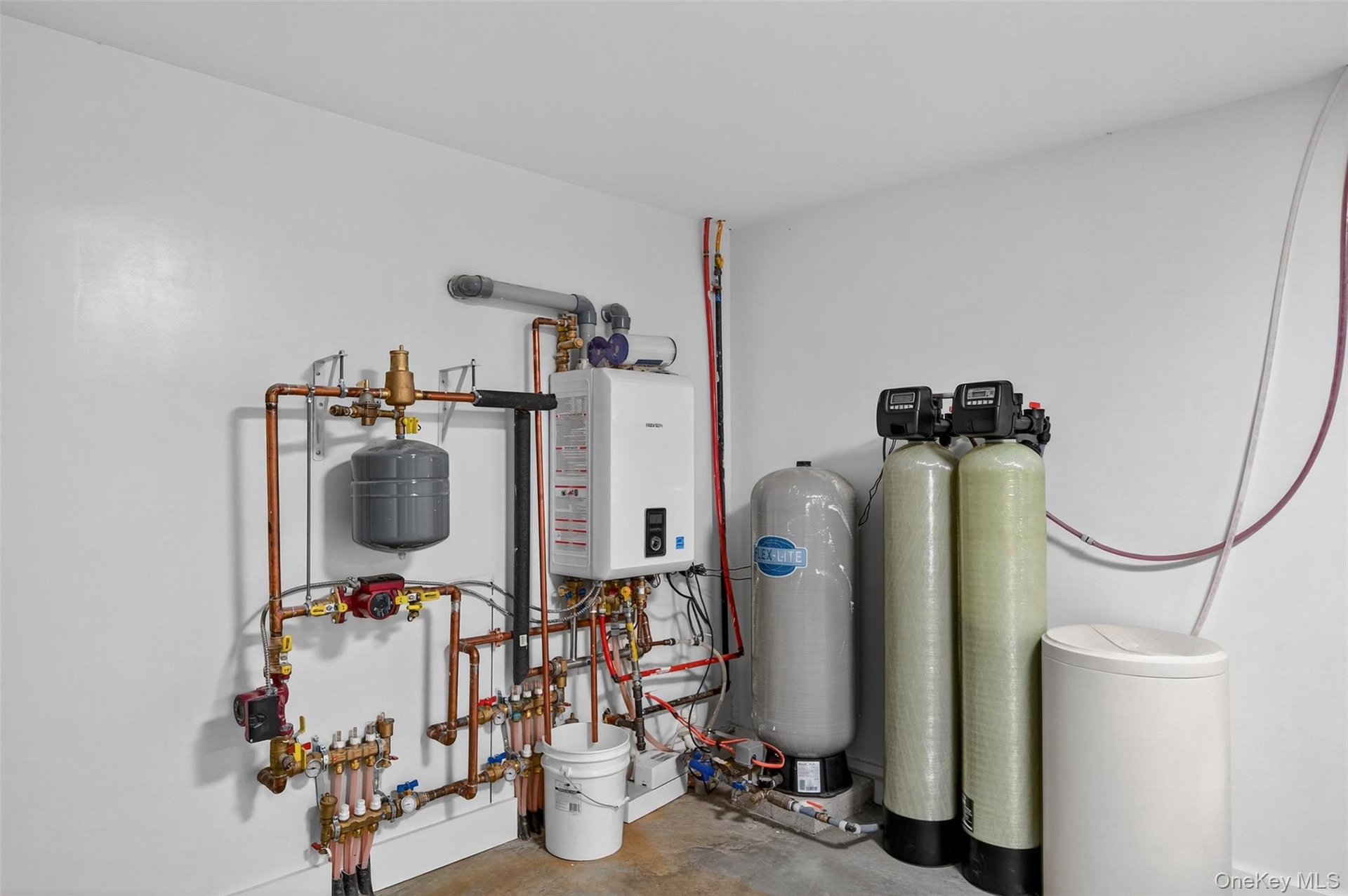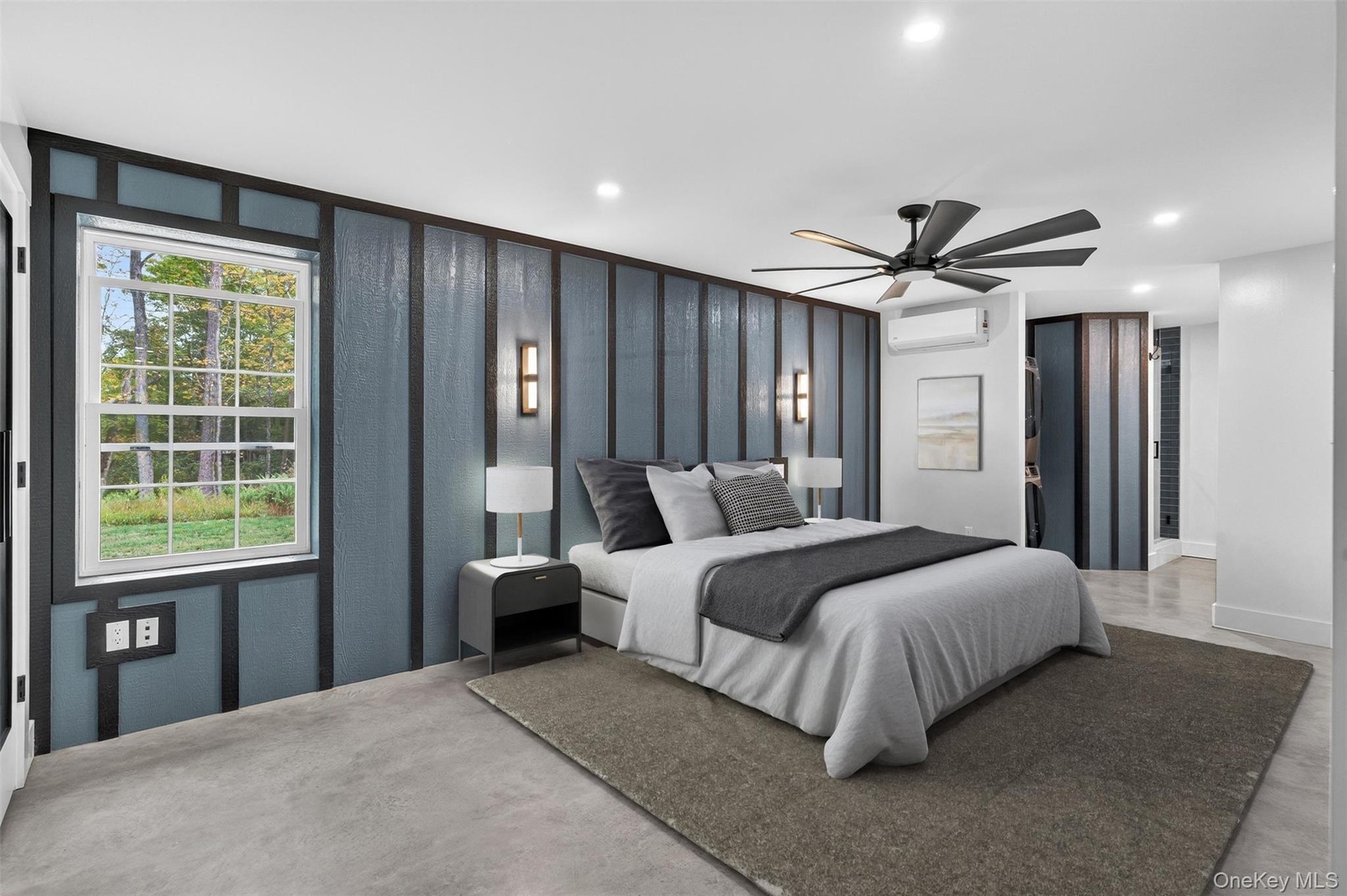 Introducing the Black and Gold Barndo at Hemlock Hollows! Tucked away at the end of a well-maintained private road, features this 1,260 sqft 2-bedroom 2-bath home on 4.5 secluded acres. Surrounded by nature and wildlife, this double primary, single level open floor plan, boasts a 4-car garage, a large work from home office and modernized attributes. Ideal for hosting, this newly constructed and gently-used home features a large kitchen with quartz countertops, Z-Line appliances, including a six-lite propane stove and plenty of room to spread out and enjoy your weekend company. A lovely accent wall with built in shelves, electric fireplace and a live edge cherry mantle hand selected from the land during construction, ties the main living area together. The main primary suite is a statement on its own, with a large accent wall, double closets and an enormous spa like walk-in tile shower. Platinum radiant heated concrete floors flow through the house giving off a comfortable warmth through the chilly winter nights. Cooper-Hunter ductless mini-splits provide air conditioning and additional heat if needed. Looking for room to expand? The attached 4-car garage equipped with electric car charging capabilities, is fully finished and offers 960 square feet of additional room for enhancing the living space whether it is adding another bedroom or making an art-studio or home gym. Outside find an expansive yard for gardening, a large car port and room for a pool (with proper permitting). The car port can also be blank canvas for a pool house, additional ADU (with proper permitting) or simply just storage. Lastly, don’t look past the Generac stand-by generator equipped to power the whole house. Conveniently located at the foothills of the Minnewaska Preserve this location offers easy access to world class hiking along with local breweries, Inness Resort and Spa and everything else the Hudson Valley has to offer. Come and take a look at this gently lived in, well maintained and cared for home. Once you arrive you will not want to leave!
