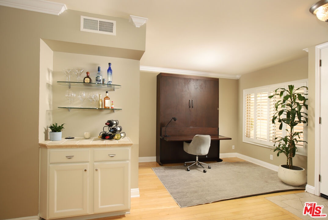 DescriptionChic & Spacious Brentwood Condo Just Moments from San Vicente. Tucked away in one of Brentwood's most coveted pockets, this beautifully updated 1 bed + 1.5 bath condo with a versatile den perfectly blends style, comfort, and location. In close proximity to premier dining, shopping, cafe's, and grocery stores, this home places you at the center of it all yet feels like a peaceful escape. Inside, you'll find a bright, open floor plan with newly updated quartz countertops, stainless steel appliances, and a cozy fireplace that anchors the inviting living space. The spacious primary suite features dual walk-in closets, while the private balcony offers a perfect spot to unwind. The den off the entry is a true bonus thoughtfully designed with a built-in desk for working from home that doubles as a Murphy bed for hosting guests with ease. With in-unit laundry, central A/C, secure parking, and tasteful modern finishes throughout, this is Brentwood living at its finest!Amenities- Balcony