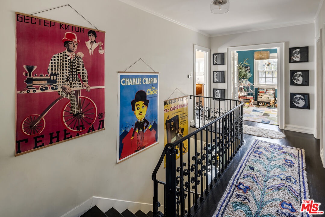DescriptionThis stately English traditional is located on a beautiful tree lined street of historic Hancock Park classics. Gated and elevated above the street, this estate-like home has a vibrant and whimsical interior and a fantastic guest house. Though updated for modern living, the charm and character is intact and proudly showcased with hardwood floors and original details throughout. Rich with creative energy, the home features a dramatic living room with beautiful built-in bookcases and a wood burning fireplace, a formal dining room, and a tiled kitchen with an adjacent breakfast room. The large den has French doors opening to the backyard and there is a bedroom/office and an updated bath. The upstairs features three bedrooms, two baths and a lovely sun-room with French doors that makes for a perfect nursery, play area or library. The primary suite features a walk-in closet and updated bath as well as French doors opening to a beautiful private balcony. In the walled backyard you will find a cozy sitting area, a lovely hedged garden and the guesthouse, a well-appointed studio with kitchen, large closet and an updated bath. This beautiful property is a romantic retreat in an excellent location near some of the best shopping and restaurants the city has to offer.NeighborhoodMore listings: