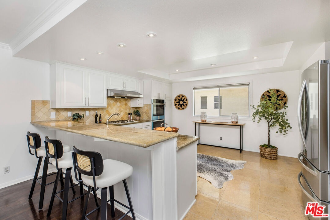 Welcome to this updated 3-bedroom 3-bath townhouse nestled in Villa San Cipriano, adjacent to the Ballona Wetlands, amongst the bountiful flora and fauna of Marina Del Rey. Brush the sand off your feet as you walk across the hardwood floors into this mid-century split-level open-concept living space with ample room for a growing family or entertaining. Ascending to the dining area, a renovated kitchen greets you, complete with a chef's stainless steel appliance package, including a double oven, and a breakfast bar perfect for family conversation or entertaining. As you make your way upstairs, the primary suite features 3 closets and an enclosed balcony, ideal for an office or a morning sun-soaked yoga space nestled next to the wall-to-wall window. Abundant closet space greets you as you ascend to the final full bathroom next to the other two bedrooms. An attached two-car garage with room for a third low profile tandem parked car is next to another expansive storage space, perfect for storing all your beach and outdoor toys. Enjoy your days poolside, relaxing in the sauna, or wiggling your toes on the manicured lawn while taking in this beautifully maintained oasis. A nightly security patrol keeps Villa Marina safe amongst the wonderful colors of the mature landscaping. Just minutes from the beach, MDR Boardwalk, Trader Joe's, Marina Marketplace, theaters, numerous restaurants, bike trails, parks, bike path, freeways and LAX airport.