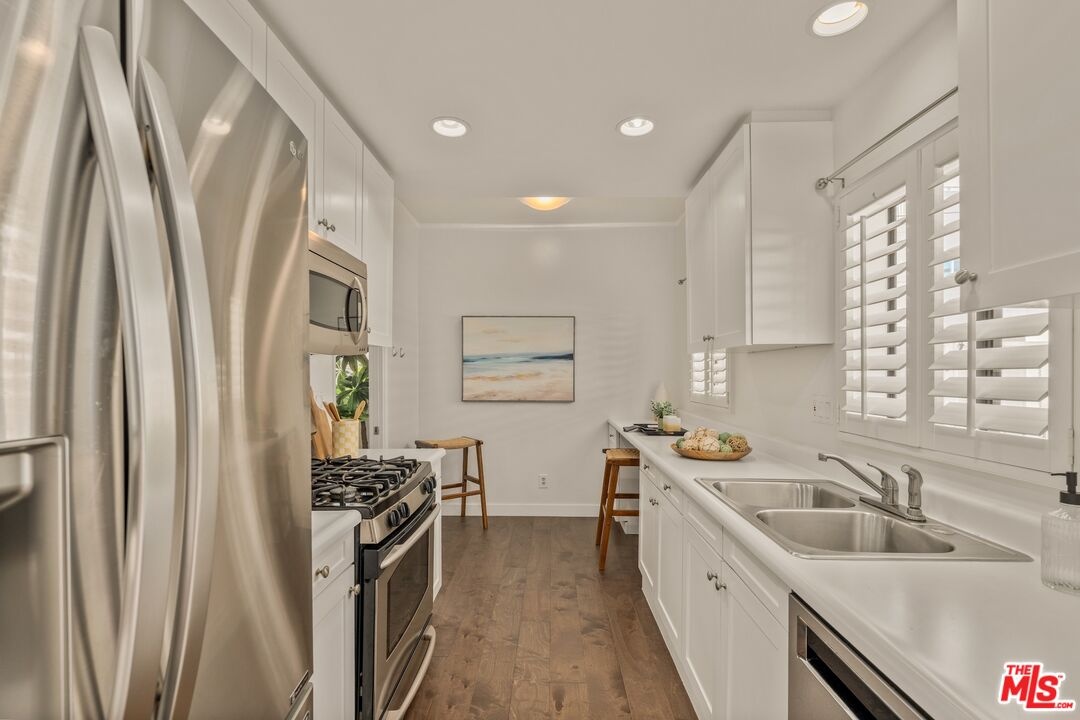 DescriptionSpacious and bright 2BR+2.5BA townhouse located in the heart of Santa Monica. Newly installed wood floors on the 1st floor showcase the large living area with decorative fireplace, recessed lighting and new glass sliding doors overlooking the patio spanning the width of the unit. Eat-in kitchen has stainless steel appliances, with ample cabinet space and custom cabinets, that leads out to the spacious dining area. The powder room and coat closet complete the first-floor. The second-floor features two en-suite bedrooms including the large primary with high ceilings, walk-in closet and private balcony. Side-by-side laundry room with full-size washer and dryer. Both bedrooms have no common walls. Kinetico water filtration system. Two side-by-side parking spaces with storage unit in gated garage. Boutique 5-unit building that includes earthquake insurance. Would make a wonderful place to call home.NeighborhoodMore listings:
