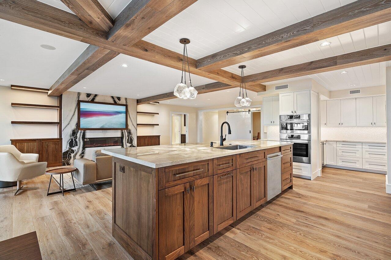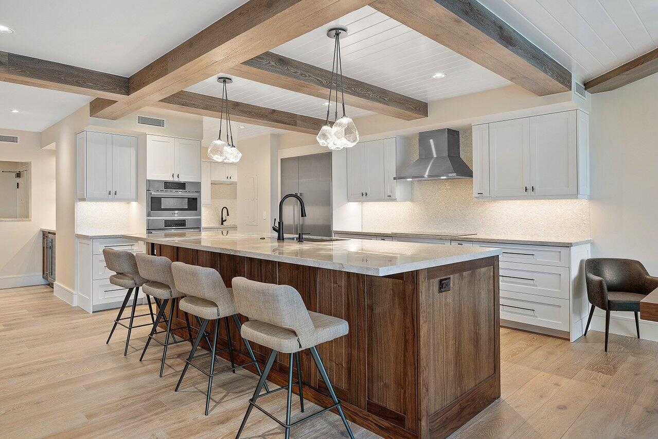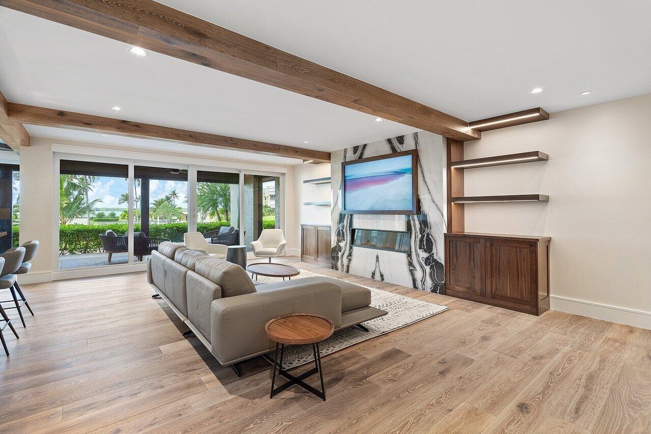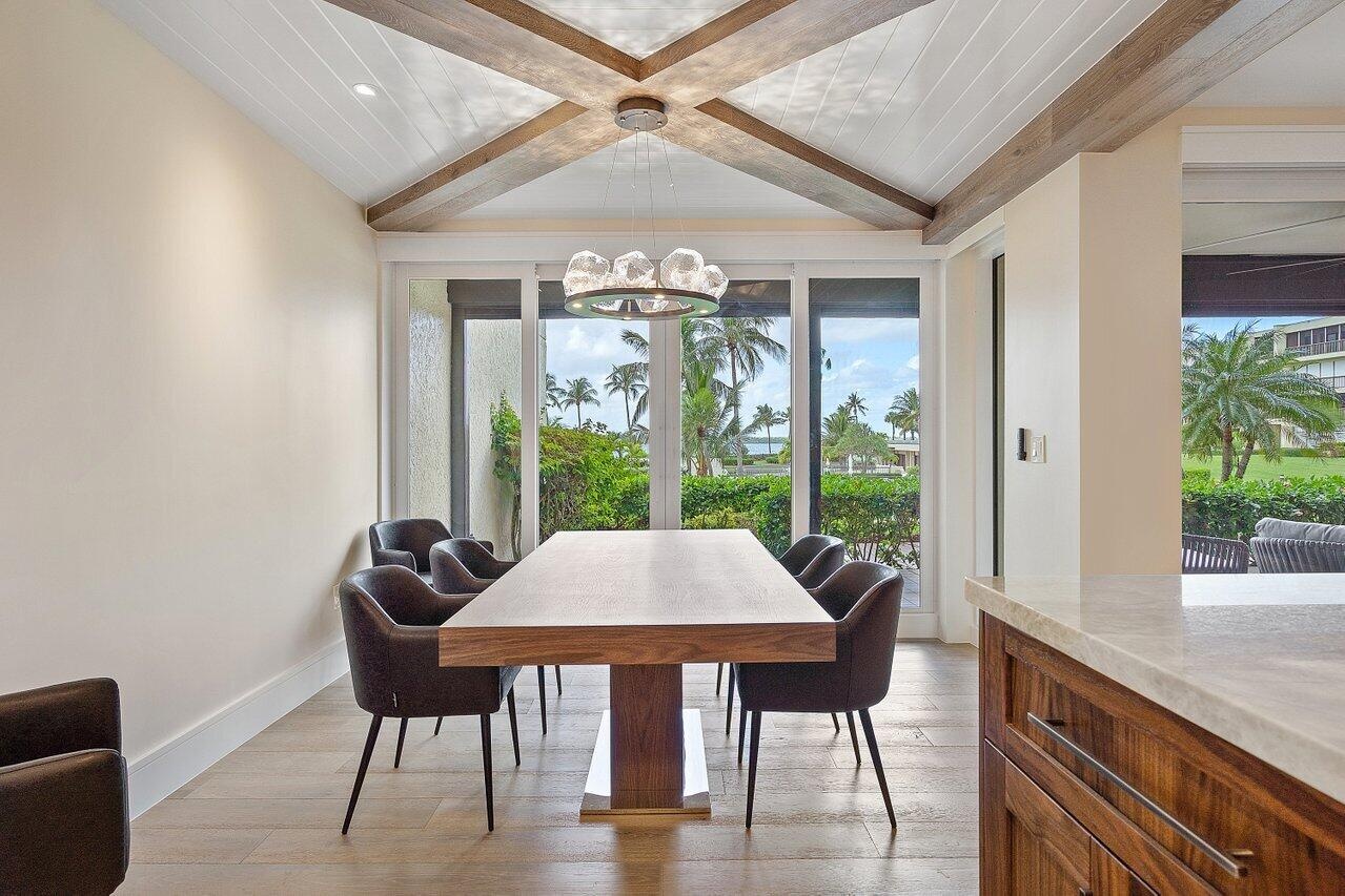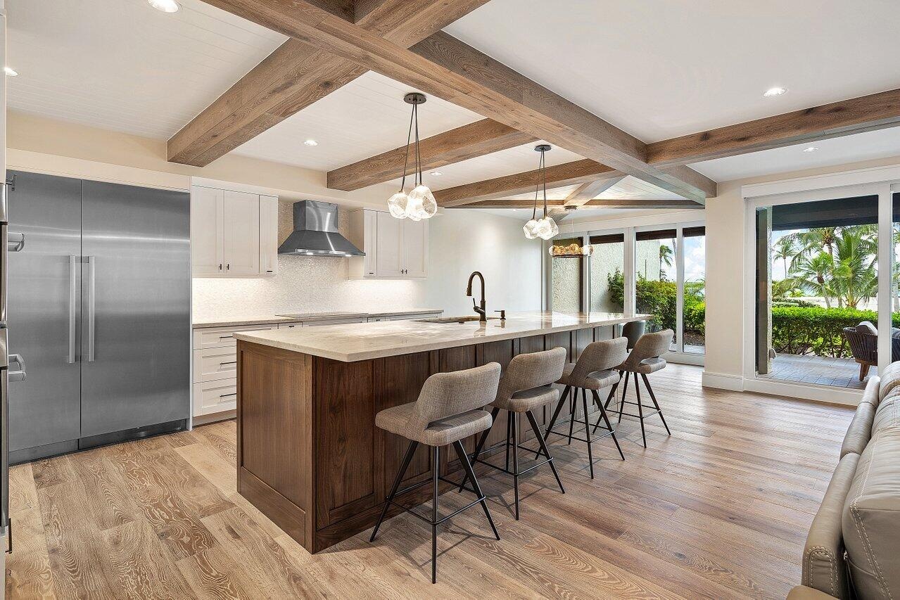 Newly finished & completely remodeled ground-floor California modern apartment w great views of the St. Lucie Inlet. This spacious condo boasts 2 bedrooms, 2.5 bathrooms, & a versatile office den that can double as a 3rd bedroom. Featuring exquisite French oak floors complemented by elegant French oak beams, the interior exudes timeless charm. The well-appointed kitchen is equipped w top-of-the-line Bosch appliances, & a convenient wine refrigerator is tucked away in the laundry room. Enjoy the convenience of a bar w mini fridge in the living room for entertaining guests. The property also benefits from brand new impact windows & doors, as well as electric shades & outdoor screens. Additionally, the apartment is fitted w smart switches & Art TV's. This remarkable offering includes all the