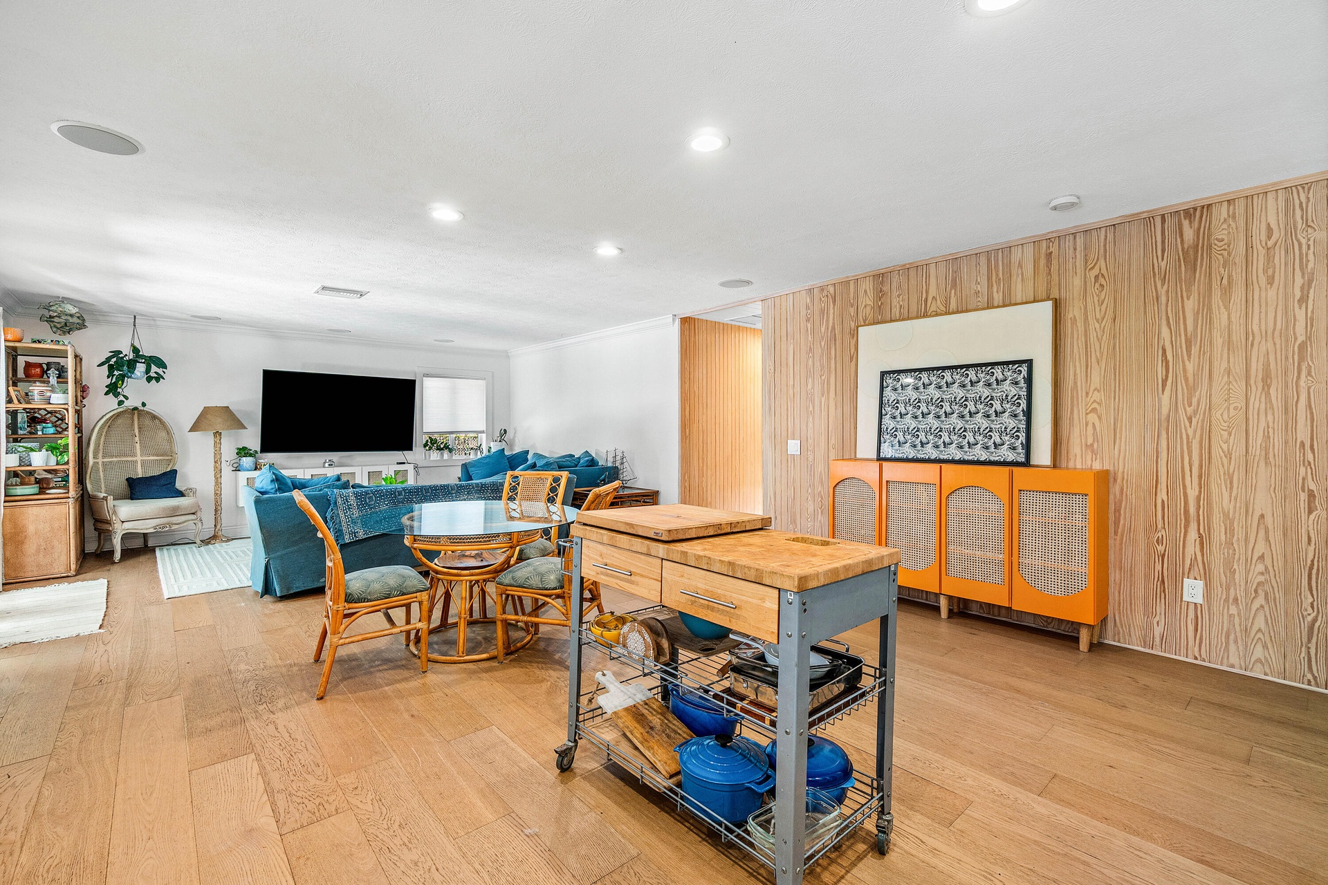 Located in the heart of downtown Stuart, this beautifully updated mid-century home offers 3 bed, 2 bath, and sits on over 1/3 of an acre. Warm wood details, including a unique curved slatted wall, add character throughout. The air-conditioned garage doubles as a versatile flex space, while the upgraded bathrooms feature high ceilings, skylights, and elegant finishes.The double lot is the true standout, offering a spacious yard, heated saltwater pool, summer kitchen, RV hookup, and two finished bungalows -- perfect for guests, home offices, or creative studios (w/income producing potential). Also, an outdoor shower, room for boats and outdoor toys, & space for a garden.Just steps from downtown restaurants, shops, cafes, and scenic waterways - Live like your always on vacation