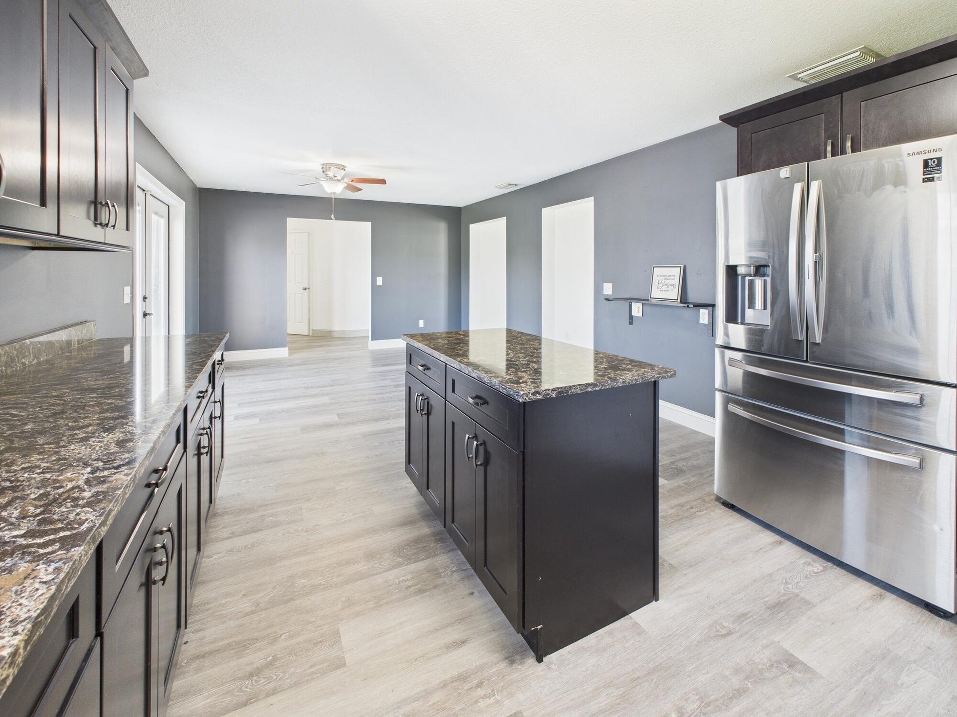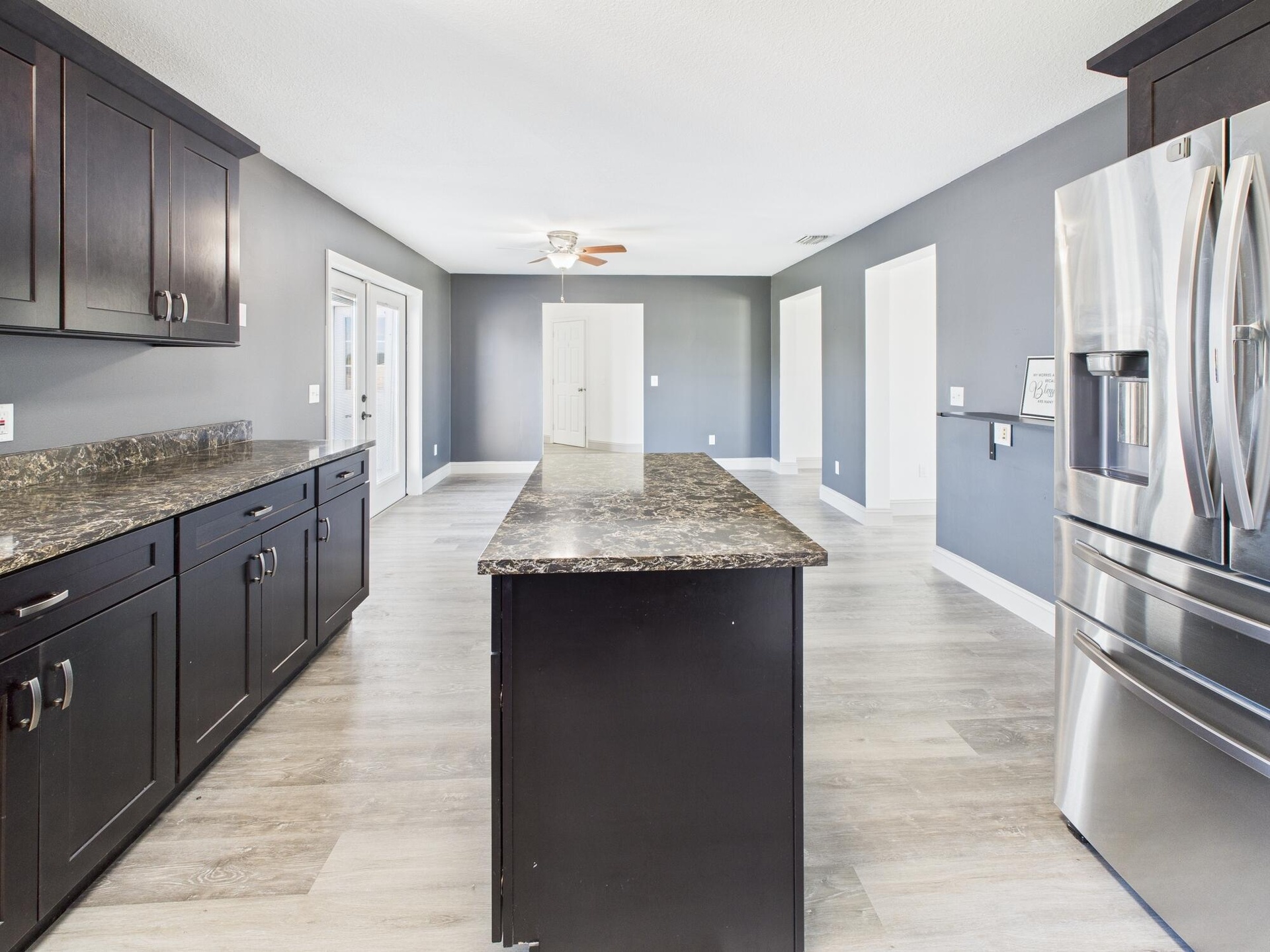 DescriptionCompletely remodeled waterfront home! This spacious 3BD/2BA, 1,800 sq. ft. living (2,500+ total) features brand-new closed cell spray foam insulation underneath, new subfloors, new waterproof premium vinyl plank, new outlets, new switches, new light fixtures, new baseboards & fresh paint. Gorgeous new kitchen with solid wood cabinets, granite counters & stainless appliances. Master suite offers a walk-in shower, Jacuzzi tub & dual sinks. All bedrooms have walk-in closets. Extras: home office/storage, formal dining, laundry room, newer roof & AC, accordion shutters, 28x21 garage w/ dual automatic doors, fenced backyard w/ patio, utility shed & mango tree. Peaceful 15-acre pond view with great fishing, no HOA, and close to town conveniences! OWNER/AGENT