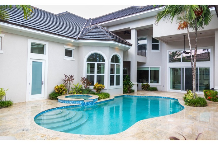 Discover this stunning 5-bedroom, 4-bathroom courtyard home steps from the beach. This residence blends a garden-inspired courtyard design with classic architecture, creating a serene oasis. Enjoy a private swimming pool, perfect for relaxing or entertaining. Nearby Beaches, Golf, Restaurants, Park, & Amenities. Key Features * 5 Bedrooms, 4 Baths: Spacious and thoughtfully designed. * Courtyard Architecture: Unique layout with a tranquil, garden-like central courtyard. * Private Swimming Pool: A perfect spot for leisure and entertaining. * Prime Location: Just a short walk to the beach. * Private, Home-Gym * Spacious, Vaulted Ceilings * Spa-like Master Bath * Man cave, with Pool table, Bar * Backyard BBQ * Tranquil settings * Multiple, Private Balconies