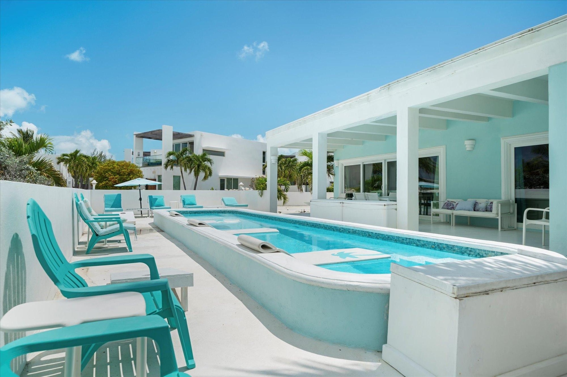Just steps from one of Great Exuma’s most beautiful beaches, Aqua Dreams is a thoughtfully designed 4-bedroom, 3-bathroom property comprising a 3-bedroom main house and a separate 1-bedroom guest cottage. Built in 2015 using the resilient Gigacrete system, the home is engineered for low maintenance, with hurricane-rated glass, UV-treated air and water systems, and a whole-house generator. Interiors feature quartz kitchen countertops and painted concrete floors, while a saltwater dipping pool with solar-assisted heating and a tiled deck enhances outdoor living.