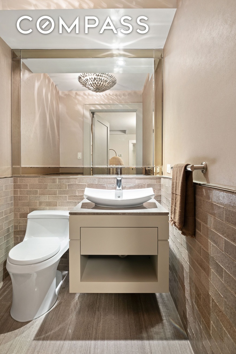 Additional features include an in-unit washer and dryer, a powder room, and plentiful closet storage throughout.