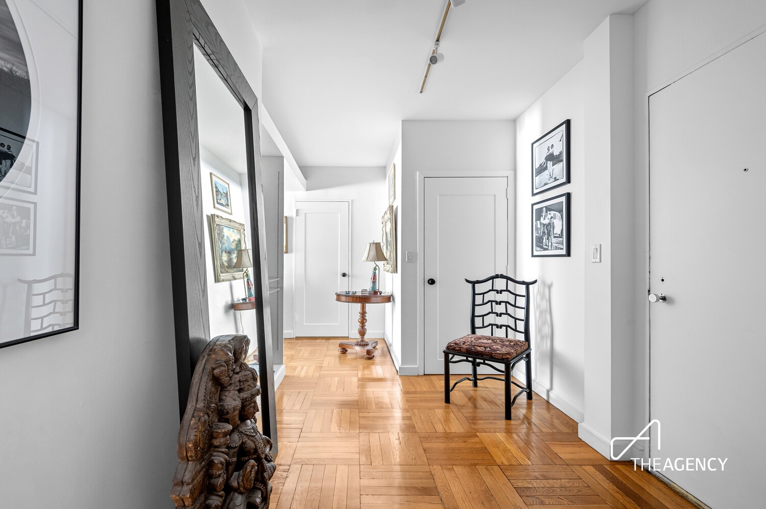Throughout the apartment, thoughtful details enhance the home's elegance, including all new solid doors, single-panel interior doors, and a rare abundance of storage space with four large closets in addition to the built-ins.