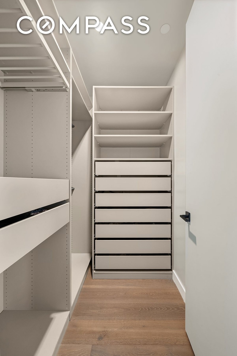 510 Driggs is a 44 unit new development condominium built in 2022 with a suite of amenities including a 24-hour doorman. Residents enjoy a state-of-the-art fitness center, an expansive rooftop terrace with lush plantings, sun loungers and grills, a children’s play room and a resident lounge with co-working spaces and cold storage. The attended lobby is bright and airy with organic accents and tones.