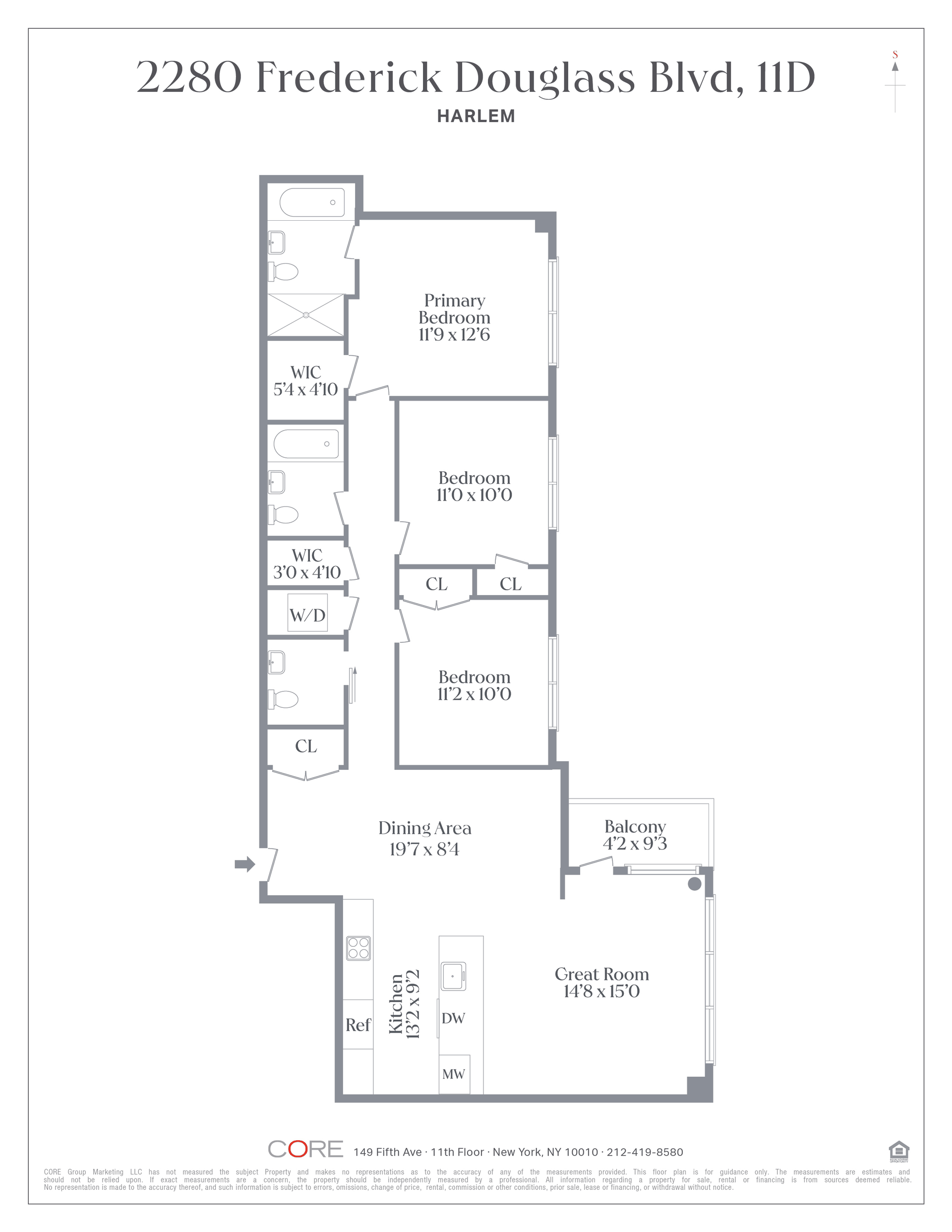 DescriptionNatural light floods the private balcony of Residence 11D, where inside you’ll find a spacious home with three bedrooms, two-and-a-half bathrooms, approximately 1,400 square feet of living space, and a host of luxurious touches—all set in a full-service condominium in prime southern Harlem, with a tax abatement in place until 2035.