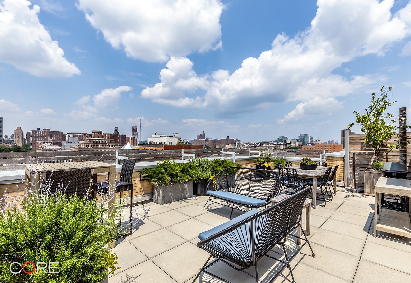 2280 Frederick Douglass Boulevard is a full-service condominium whose amenities include a 24-hour attended lobby, full-time porter and live-in super, onsite parking with electric car chargers and bike storage, a rooftop terrace with fireplace, barbecue grill and gorgeous sunsets, and a second-floor terrace outfitted with a plethora of seating, pergolas, an additional barbecue grill, and a children’s play area.