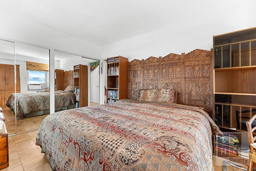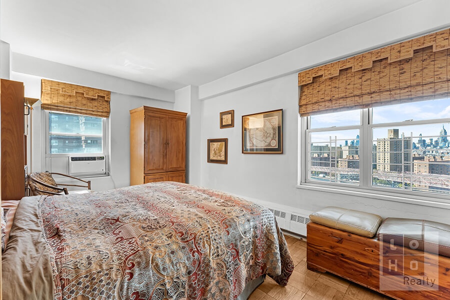 This expansive 1-bedroom home—the largest layout in the co-op at approximately 800 sq. ft.—showcases breathtaking views of the Empire State and Chrysler Buildings.