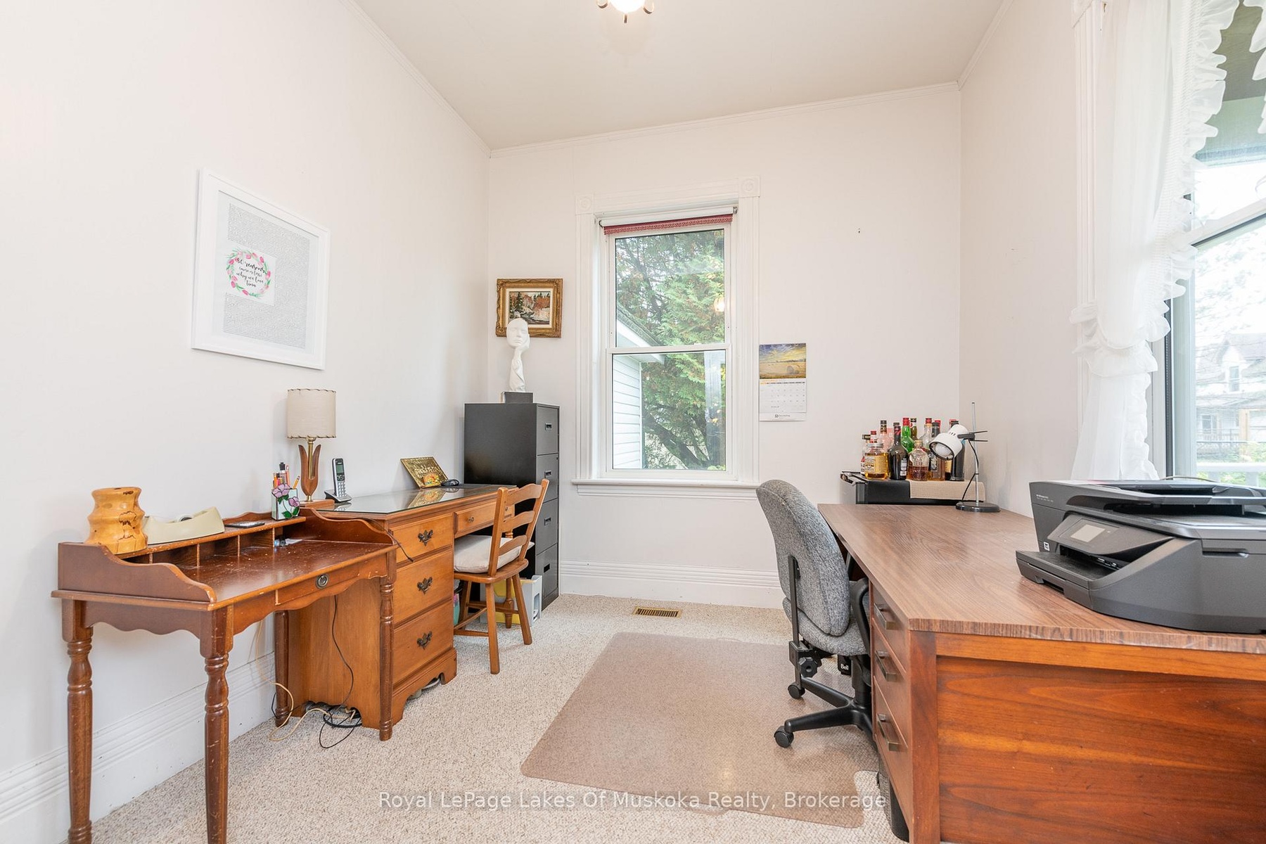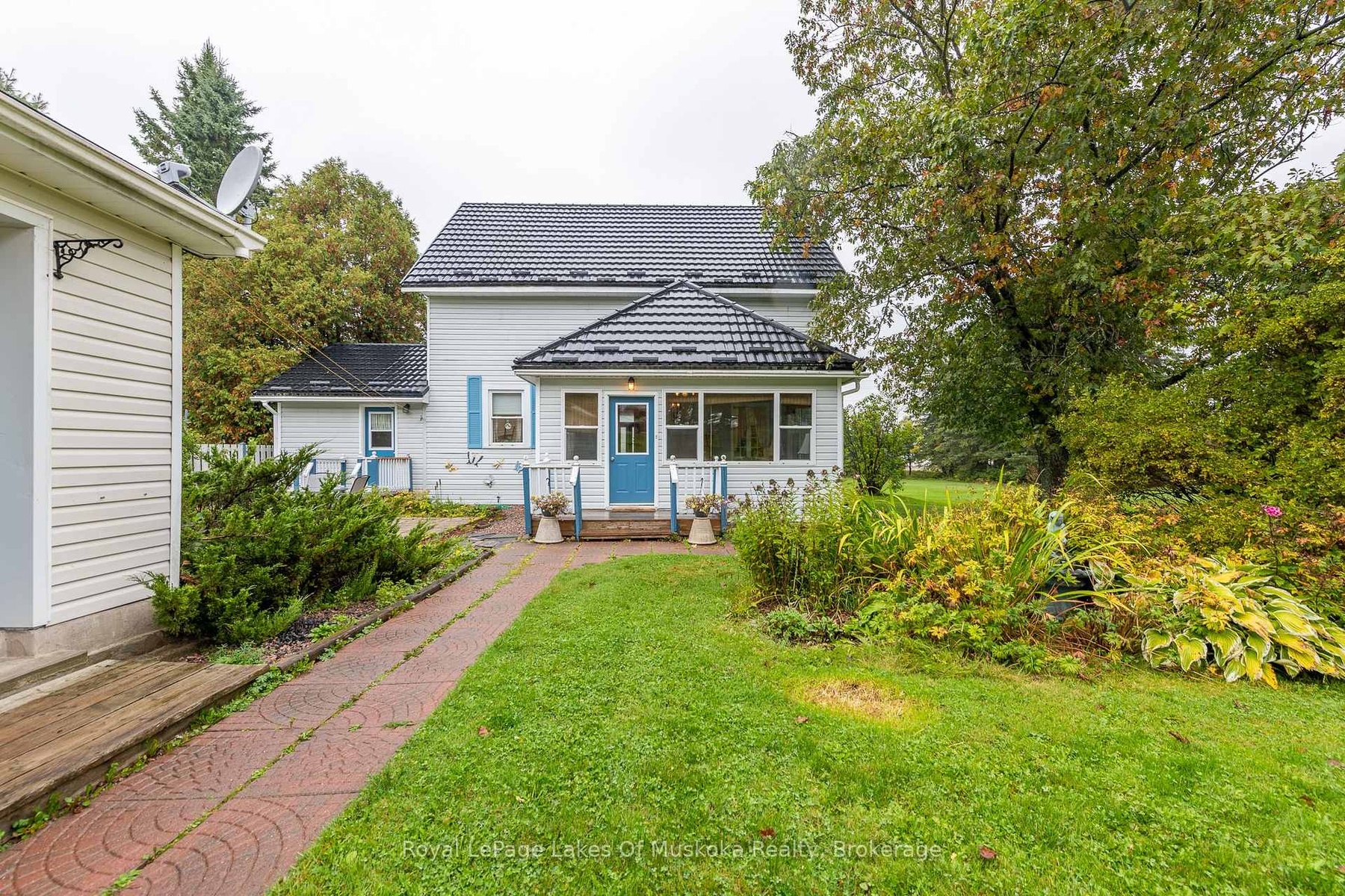 Beautifully maintained historic home with all of the amenities you are looking for. Proudly positioned on its double municipally serviced lot with its quintessential covered porch giving it a look of grandeur not often found in current day homes, especially in this price range. This historic 4 - 5 bedroom, 2 bathroom residence has retained the integrity of its original build with high white painted wood ceilings, corner piece original trim and custom lathed baseboard, built-ins, wooden doors with metal handles, and wood banisters with hand crafted newel posts. Blending timeless craftsmanship with modern convenience, this well-built home offers peace of mind thanks to updates like vinyl siding, municipal services, a durable steel roof, and more. From the driveway side there is a large 3 season sunroom which could be updated to create a 4 season family room. The kitchen is sunlit and offers ample cabinets with adjacent main level laundry and 3 piece bathroom close by with access to the garden patio and barbecue. The dining room is ideal for family and friend gatherings and the living room is airy and bright. A cozy main-level bedroom is located near the back door, overlooking the yard and Yonge Street, perfect as a guest room or a home office. Upstairs, you'll find four additional bedrooms and a spacious 4-piece bathroom.This residence offers all of the amenities of modern life, with an efficient forced air gas furnace, top-of-the-line black tile steel roof which was installed in 2019 and has a transferable warranty, basement for storage, and a bonus detached double car garage nestled back from the road with siding replaced in 2013 and roof done in 2015. A truly one-of-a-kind home, ready to offer years of cherished memories for its next family. Annual costs are reasonable gas $1,368.00, hydro $1,236.00, water heater rental $300.00, water/sewer $1,098.00.