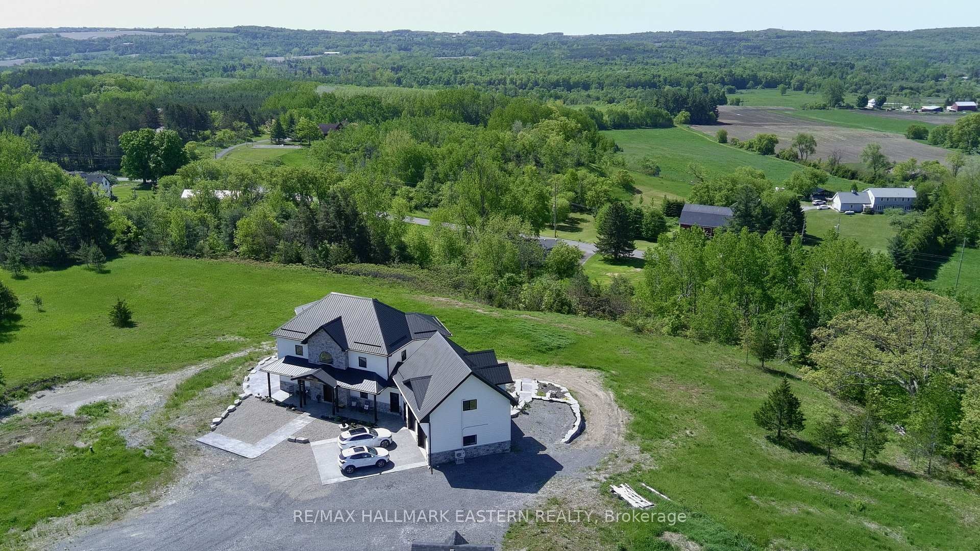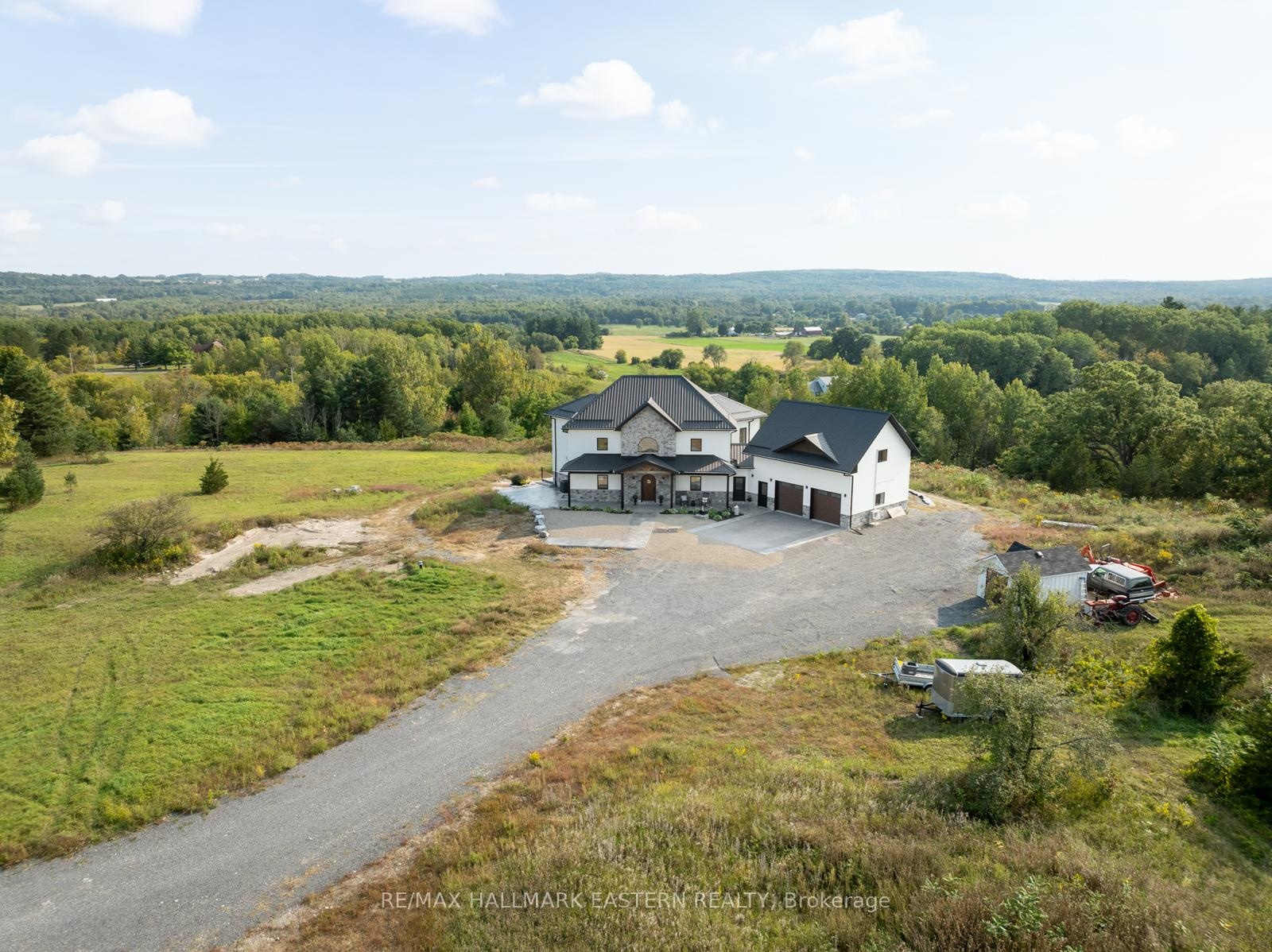 DescriptionWelcome to 14 Ferguson Hill Road a one-of-a-kind hilltop retreat set on 10+ ultra-private acres with panoramic views of the countryside, sunrises, and sunsets. Located just minutes from Hwy 401 and only 75 minutes to Toronto or Kingston, this custom-built home blends high-end design, energy efficiency, and incredible lifestyle potential. From the 7 large apples trees yielding fruit, allowing you to explore the potential of small batch cider making to being presented with the opportunity of having a small farm (livestock, trees or crop), this dreamy property is a peaceful rural escape opens a world of possibilities from hobby farming to the perfect work-from-home setup with breathtaking views. Inside, you'll find 2+2 bedrooms, 3.5 baths, and premium finishes throughout. Radiant heated white oak floors, soaring 20-ft cathedral ceilings, and R-33 insulated concrete walls provide warmth and comfort, while exposed steel beams and 9-ft ceilings highlight the home's craftsmanship. The chefs kitchen features Italian quartzite countertops, GE Cafe matte white appliances, a farmhouse sink, and copper prep sink on a large island with a pot filler.Upstairs, the principal suite offers a 5-pc bath and peaceful vistas. A second bedroom and flexible bonus space suit multiple uses. Downstairs includes two additional bedrooms, a 3-pc bath, and a spacious rec room with a full wet bar and access to a covered patio with gas BBQ hookup perfect for entertaining.The garage features radiant heated floors and a 600+ sq. ft. self-contained loft with kitchenette and 3-pc bath. Grow your own food, explore income (or enjoyment) generating ventures on the land, travel to nearby farm-to-table markets, or simply enjoy the vibrant local community. Amazing neighbours, top-tier mechanicals, and luxury in every detail this is more than a home, it's a lifestyle. Seller willing to do a VTB.Amenities- Auto Garage Door Remote