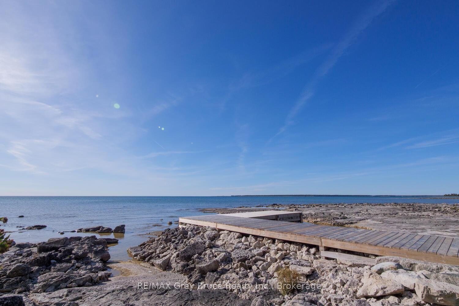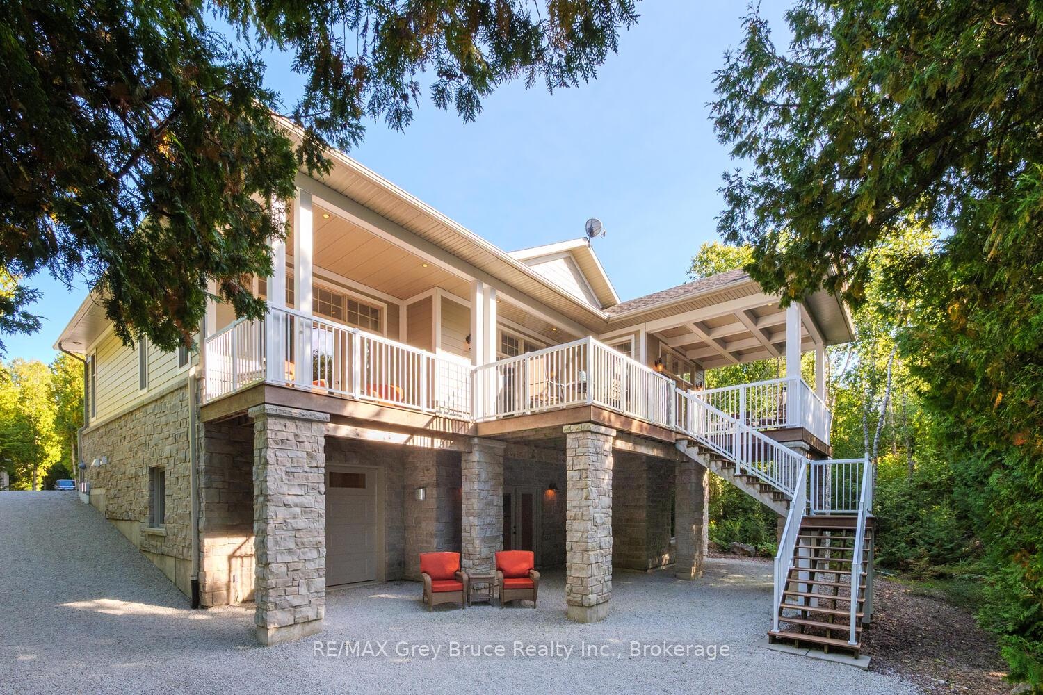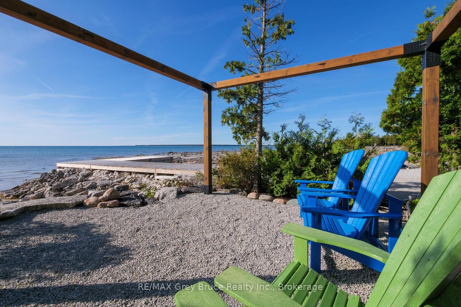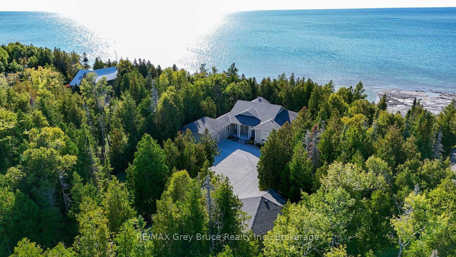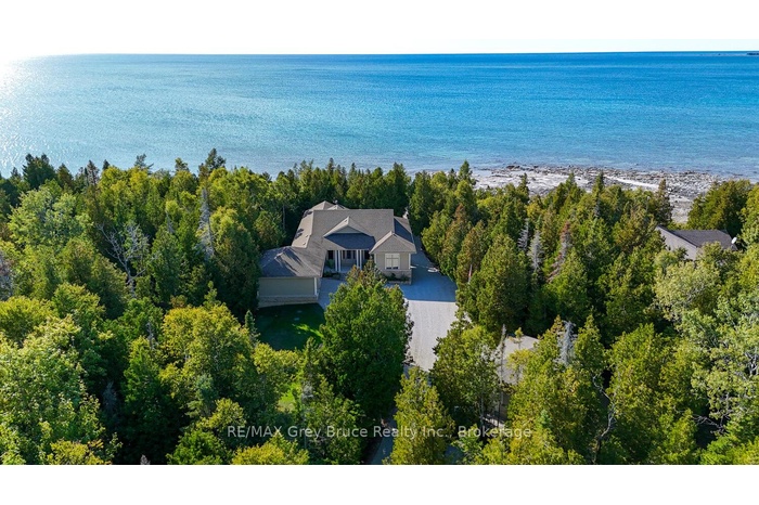 Breathtaking views, quality craftsmanship, and true pride of ownership! Set on a private 1.4-acre lot in a sought-after neighborhood, this well-maintained property features a gently curved driveway leading directly to the clean shoreline of Lake Huron. A dredged channel and L-shaped dock offer a protected harbour perfect for small boats, kayaks, or swimming. Relax under the timber framed pergola with Toja Grid sunshade and take in stunning sunsets by the water. The exterior boasts low-maintenance James Hardie siding and local Wiarton stone. With over 540 sq.ft. of decking - including durable, splinter-free Brazilian Ipe hardwood - there is plenty of space to entertain outdoors. Inside, a large foyer opens to an elegant living space with coffered ceilings, a stone fireplace, and Maple hardwood floors. The custom kitchen is characterized by the Titanium black granite countertops and Hubbardton Forge lighting fixtures. Form blends function with an induction cooktop, BI oven/microwave and plenty of storage. Step from the dining room onto a covered deck with a direct gas line for Barbeques or propane fire table. The main-floor primary suite offers water views, two walk-in closets, and a spa-like 5pc ensuite. A mud/laundry room connects to the attached garage for added convenience. The attached garage is fully finished with PVC lined walls. The walk-out lower level includes two spacious bedrooms, a 3pc bath, a large family room with in-floor heating, and a versatile workshop - ideal for hobbies or storage close to the lake. No shortage of storage space with the additional 24x24 detached garage added in 2020, plus a 8x12 storage shed. Additional features include central vacuum, central air conditioning, automatic whole home generator and water treatment system - all for comfort and peace of mind. 2885sq.ft., 3-bedroom, 2.5-bathroom home. First time on the market - this one-owner home invites you to enjoy peace, comfort, and natural beauty on the stunning Bruce Peninsula.