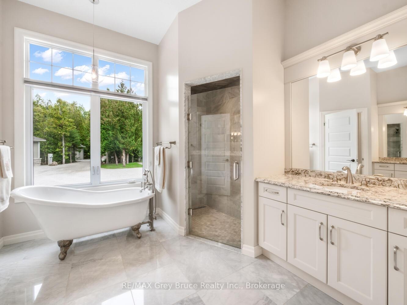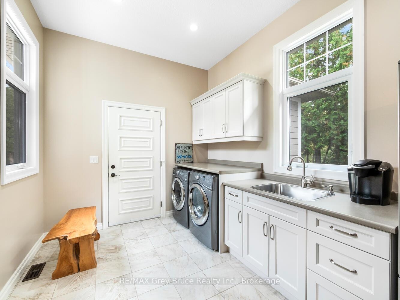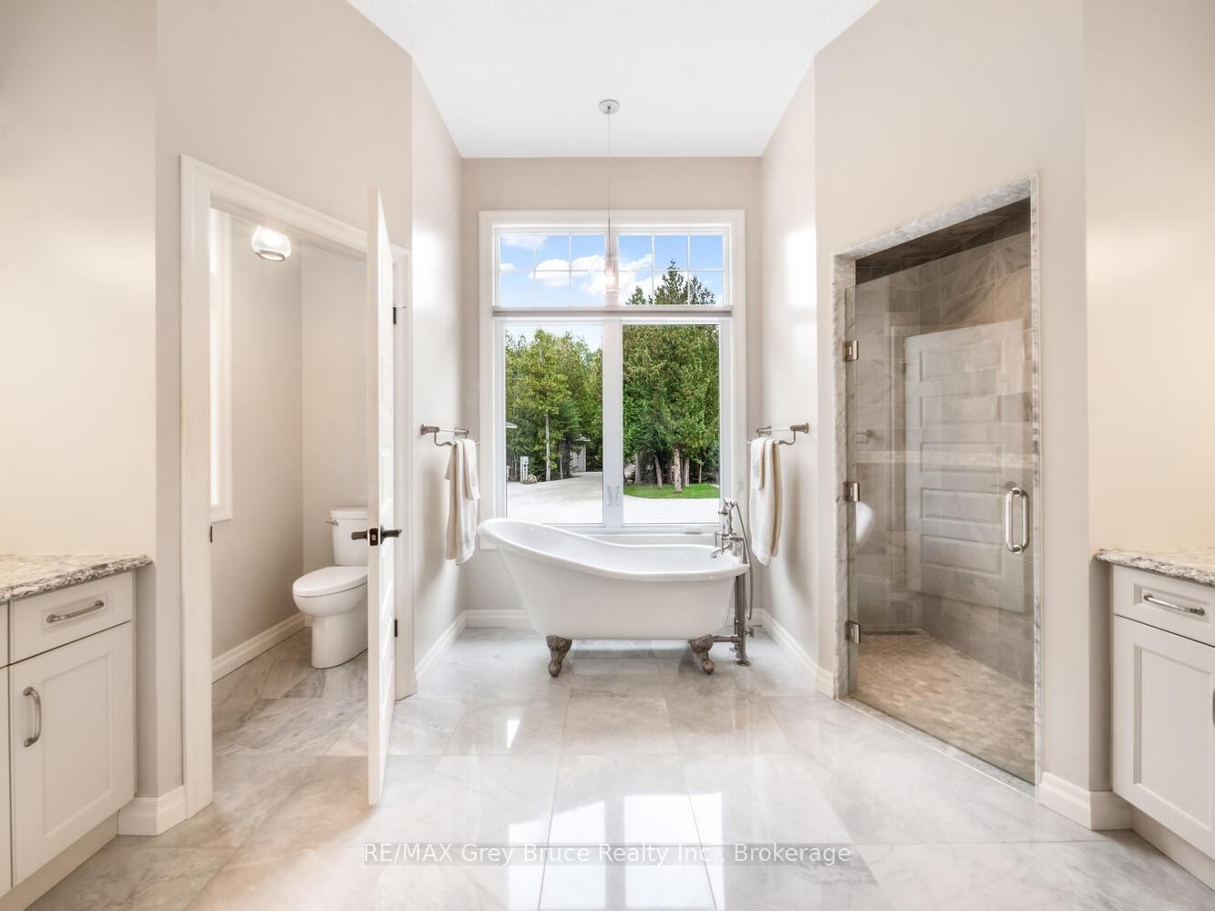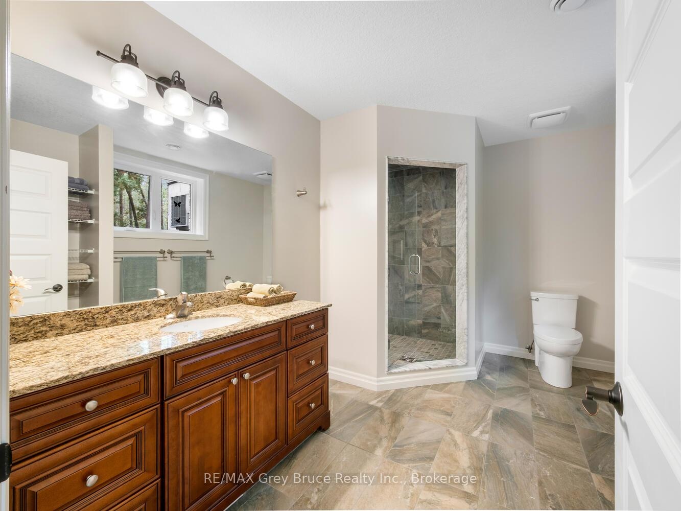 Breathtaking views, quality craftsmanship, and true pride of ownership! Set on a private 1.4-acre lot in a sought-after neighborhood, this well-maintained property features a gently curved driveway leading directly to the clean shoreline of Lake Huron. A dredged channel and L-shaped dock offer a protected harbour perfect for small boats, kayaks, or swimming. Relax under the timber framed pergola with Toja Grid sunshade and take in stunning sunsets by the water. The exterior boasts low-maintenance James Hardie siding and local Wiarton stone. With over 540 sq.ft. of decking - including durable, splinter-free Brazilian Ipe hardwood - there is plenty of space to entertain outdoors. Inside, a large foyer opens to an elegant living space with coffered ceilings, a stone fireplace, and Maple hardwood floors. The custom kitchen is characterized by the Titanium black granite countertops and Hubbardton Forge lighting fixtures. Form blends function with an induction cooktop, BI oven/microwave and plenty of storage. Step from the dining room onto a covered deck with a direct gas line for Barbeques or propane fire table. The main-floor primary suite offers water views, two walk-in closets, and a spa-like 5pc ensuite. A mud/laundry room connects to the attached garage for added convenience. The attached garage is fully finished with PVC lined walls. The walk-out lower level includes two spacious bedrooms, a 3pc bath, a large family room with in-floor heating, and a versatile workshop - ideal for hobbies or storage close to the lake. No shortage of storage space with the additional 24x24 detached garage added in 2020, plus a 8x12 storage shed. Additional features include central vacuum, central air conditioning, automatic whole home generator and water treatment system - all for comfort and peace of mind. 2885sq.ft., 3-bedroom, 2.5-bathroom home. First time on the market - this one-owner home invites you to enjoy peace, comfort, and natural beauty on the stunning Bruce Peninsula.