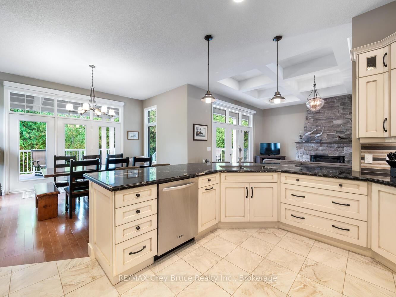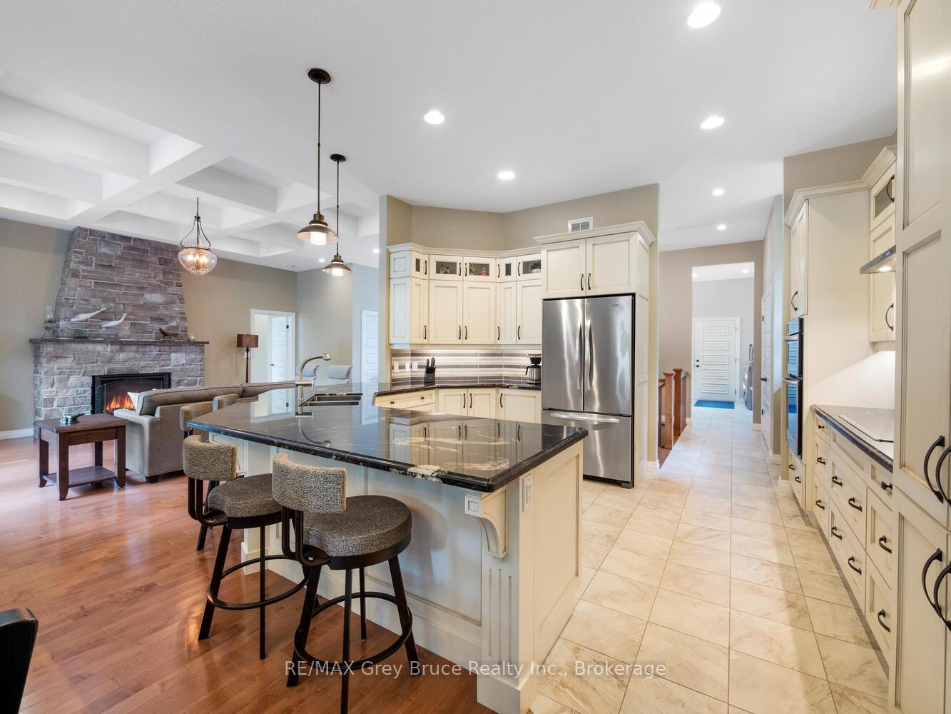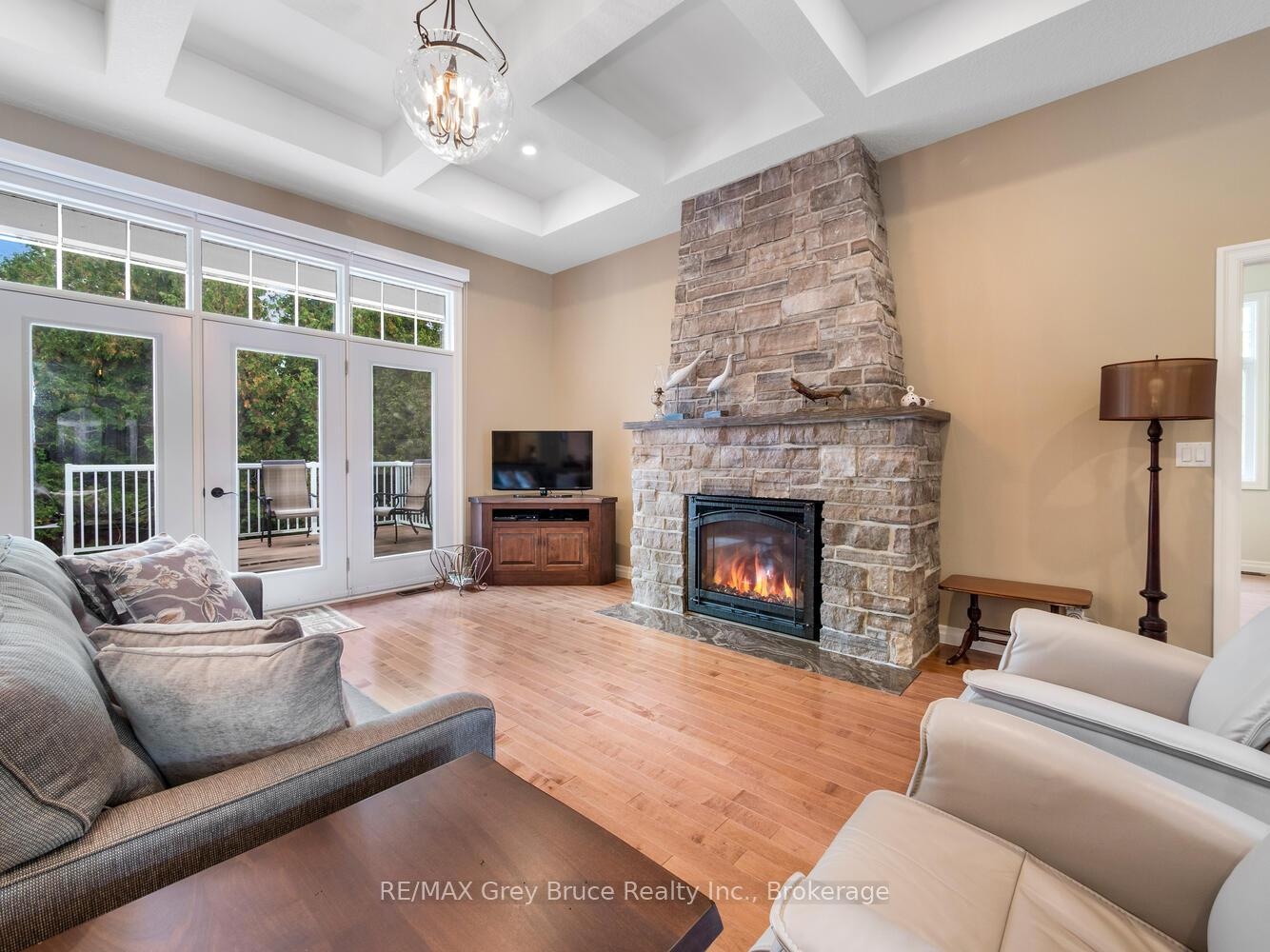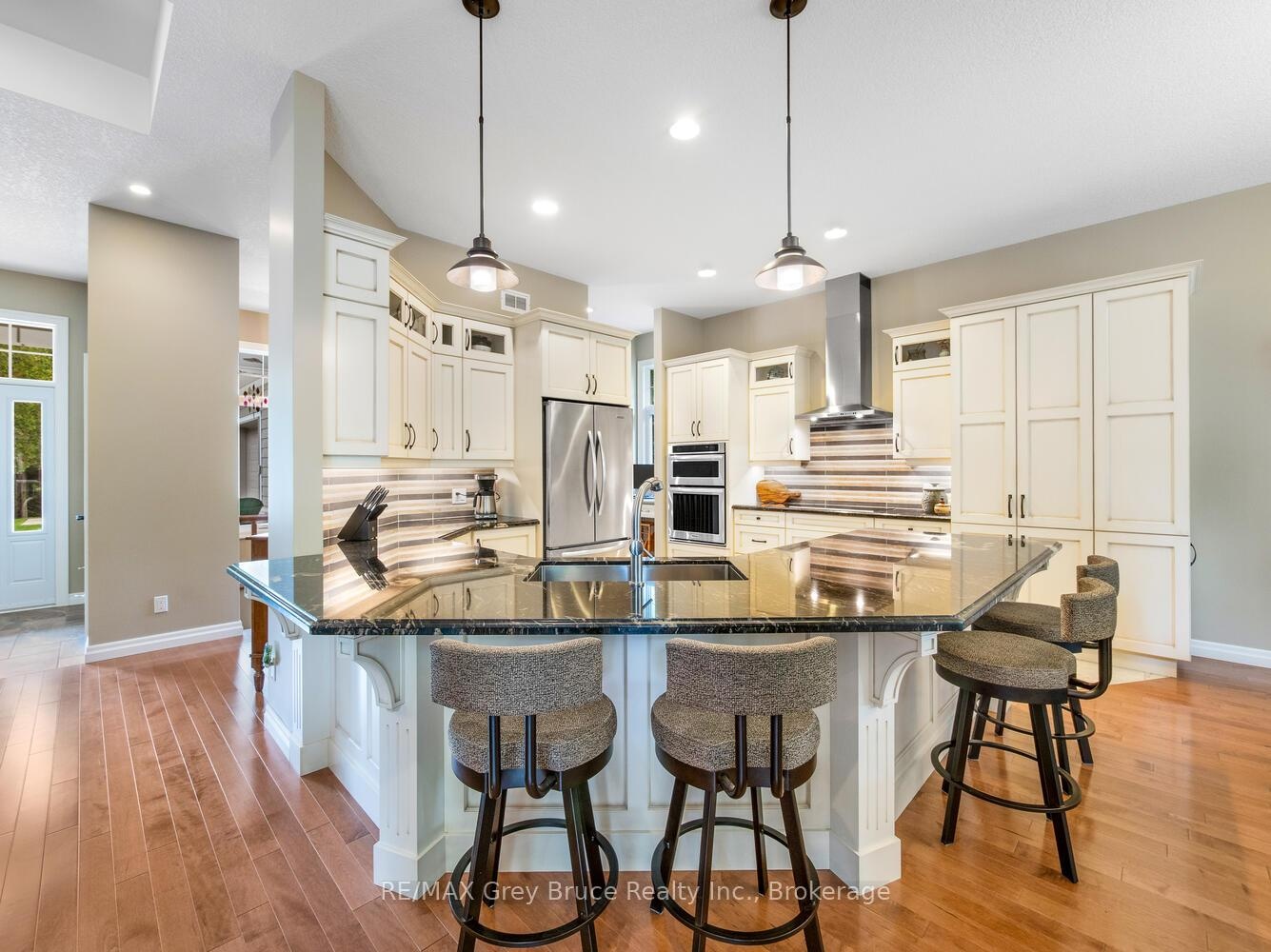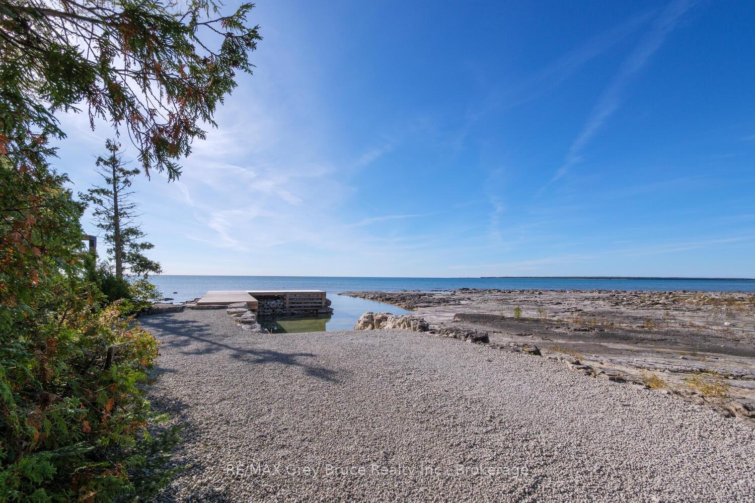 DescriptionBreathtaking views, quality craftsmanship, and true pride of ownership! Set on a private 1.4-acre lot in a sought-after neighborhood, this well-maintained property features a gently curved driveway leading directly to the clean shoreline of Lake Huron. A dredged channel and L-shaped dock offer a protected harbour perfect for small boats, kayaks, or swimming. Relax under the timber framed pergola with Toja Grid sunshade and take in stunning sunsets by the water. The exterior boasts low-maintenance James Hardie siding and local Wiarton stone. With over 540 sq.ft. of decking - including durable, splinter-free Brazilian Ipe hardwood - there is plenty of space to entertain outdoors. Inside, a large foyer opens to an elegant living space with coffered ceilings, a stone fireplace, and Maple hardwood floors. The custom kitchen is characterized by the Titanium black granite countertops and Hubbardton Forge lighting fixtures. Form blends function with an induction cooktop, BI oven/microwave and plenty of storage. Step from the dining room onto a covered deck with a direct gas line for Barbeques or propane fire table. The main-floor primary suite offers water views, two walk-in closets, and a spa-like 5pc ensuite. A mud/laundry room connects to the attached garage for added convenience. The attached garage is fully finished with PVC lined walls. The walk-out lower level includes two spacious bedrooms, a 3pc bath, a large family room with in-floor heating, and a versatile workshop - ideal for hobbies or storage close to the lake. No shortage of storage space with the additional 24x24 detached garage added in 2020, plus a 8x12 storage shed. Additional features include central vacuum, central air conditioning, automatic whole home generator and water treatment system - all for comfort and peace of mind. 2885sq.ft., 3-bedroom, 2.5-bathroom home. First time on the market - this one-owner home invites you to enjoy peace, comfort, and natural beauty on the stunning Bruce Peninsula.Amenities- Boat Launch