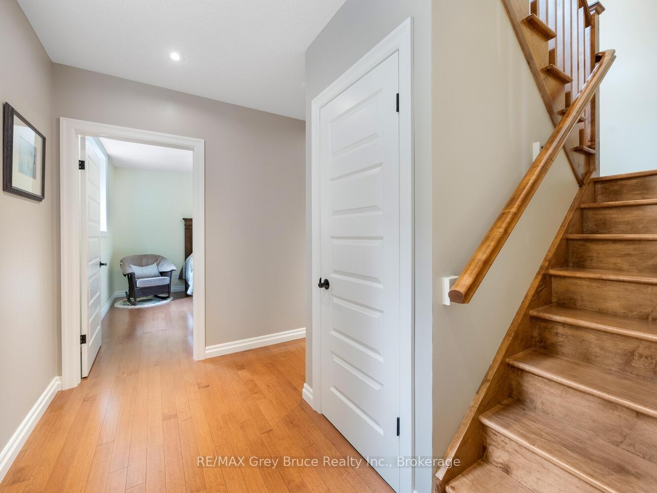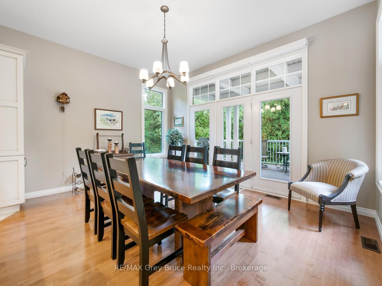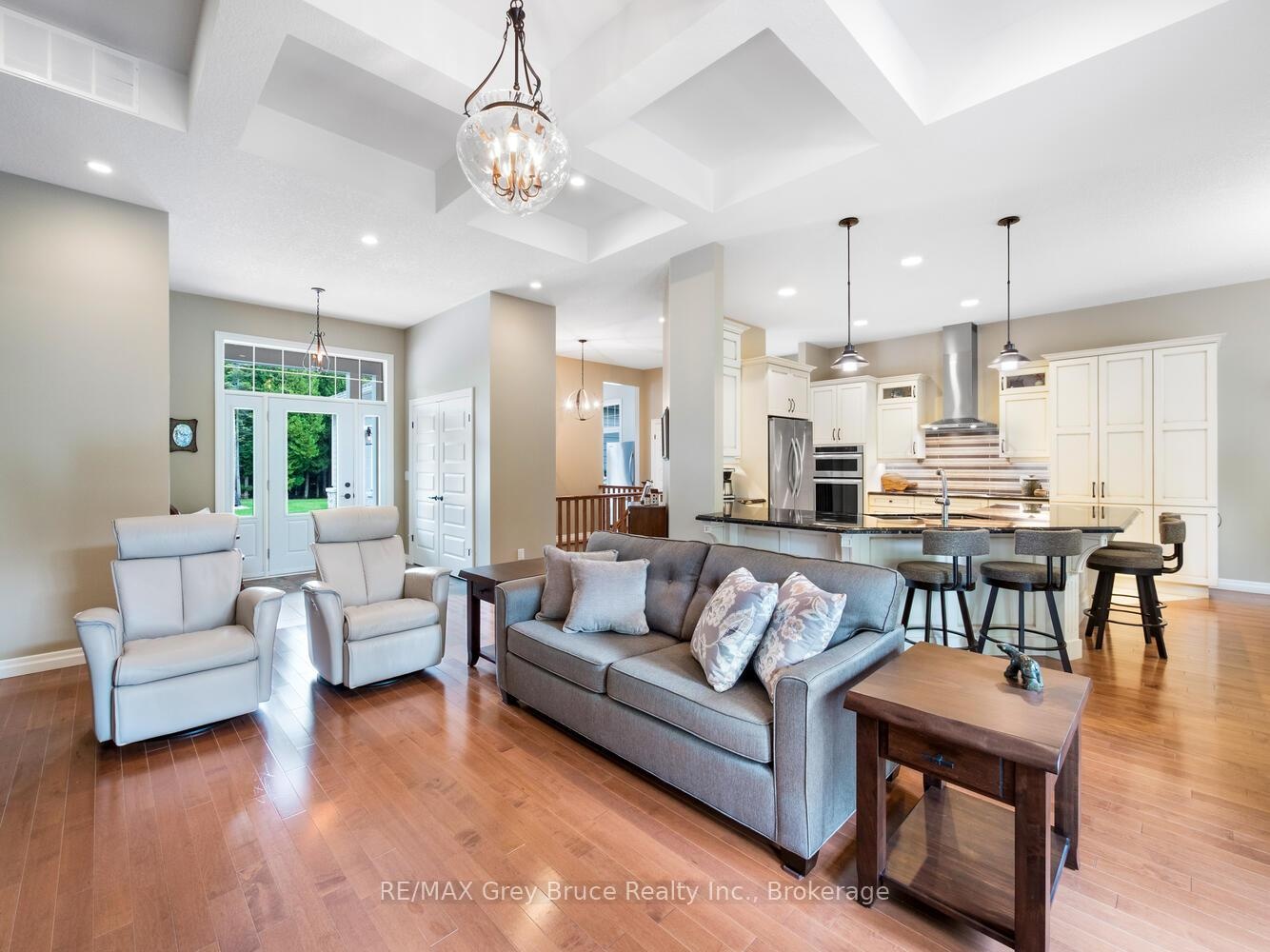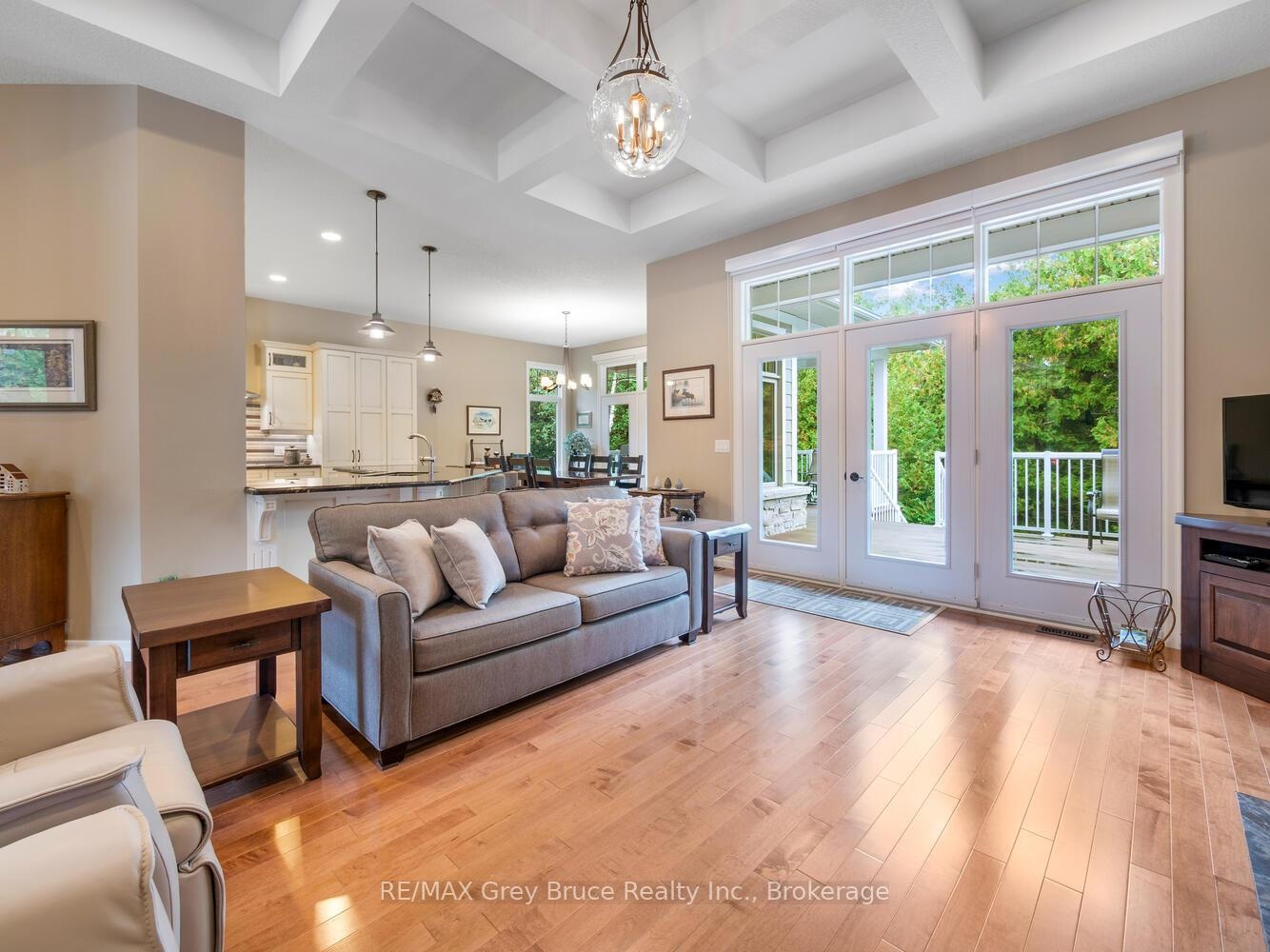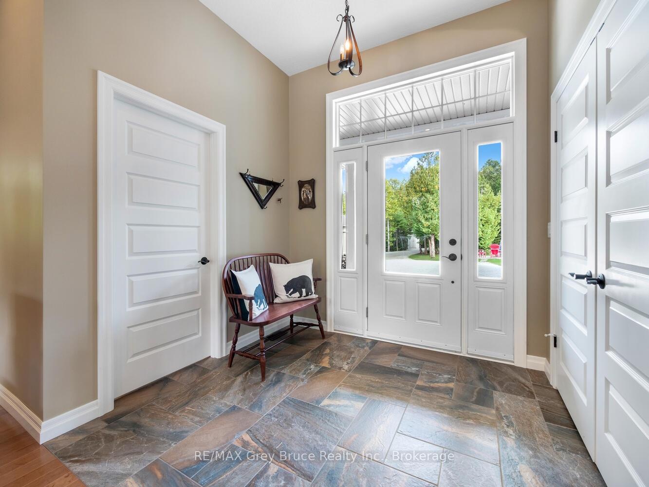 DescriptionBreathtaking views, quality craftsmanship, and true pride of ownership! Set on a private 1.4-acre lot in a sought-after neighborhood, this well-maintained property features a gently curved driveway leading directly to the clean shoreline of Lake Huron. A dredged channel and L-shaped dock offer a protected harbour perfect for small boats, kayaks, or swimming. Relax under the timber framed pergola with Toja Grid sunshade and take in stunning sunsets by the water. The exterior boasts low-maintenance James Hardie siding and local Wiarton stone. With over 540 sq.ft. of decking - including durable, splinter-free Brazilian Ipe hardwood - there is plenty of space to entertain outdoors. Inside, a large foyer opens to an elegant living space with coffered ceilings, a stone fireplace, and Maple hardwood floors. The custom kitchen is characterized by the Titanium black granite countertops and Hubbardton Forge lighting fixtures. Form blends function with an induction cooktop, BI oven/microwave and plenty of storage. Step from the dining room onto a covered deck with a direct gas line for Barbeques or propane fire table. The main-floor primary suite offers water views, two walk-in closets, and a spa-like 5pc ensuite. A mud/laundry room connects to the attached garage for added convenience. The attached garage is fully finished with PVC lined walls. The walk-out lower level includes two spacious bedrooms, a 3pc bath, a large family room with in-floor heating, and a versatile workshop - ideal for hobbies or storage close to the lake. No shortage of storage space with the additional 24x24 detached garage added in 2020, plus a 8x12 storage shed. Additional features include central vacuum, central air conditioning, automatic whole home generator and water treatment system - all for comfort and peace of mind. 2885sq.ft., 3-bedroom, 2.5-bathroom home. First time on the market - this one-owner home invites you to enjoy peace, comfort, and natural beauty on the stunning Bruce Peninsula.Amenities- Boat Launch