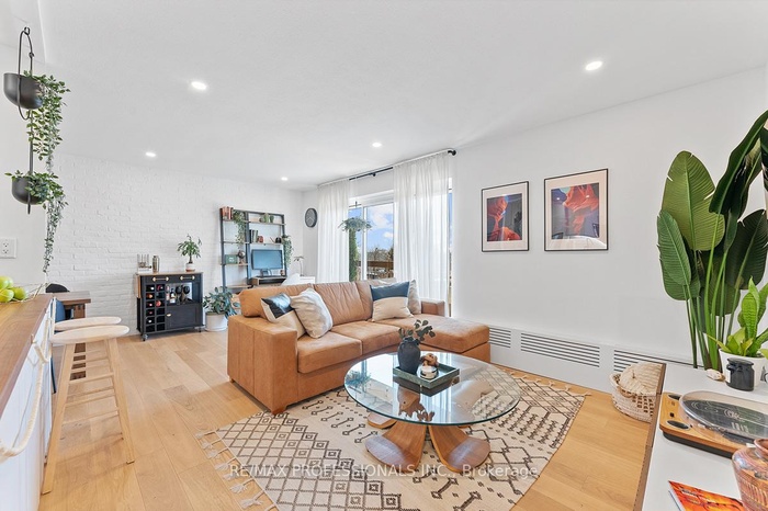 Welcome to 41 Lake Shore Drive #501, a fully renovated, oversized one-bedroom suite in a boutique waterfront building! Flooded with natural light, this thoughtfully designed unit blends modern style with premium finishes. The spacious living and dining area features Century Architecture Distillery painted brick veneer accent wall, SONOpanX insulation, wide plank engineered hardwood floors, LED pot lights, custom cabinetry and new GEM Aluminum patio doors and windows. The gourmet kitchen is a home cook's dream, boasting custom Elisabeth Ashley cabinetry, butcher block counters, a Blanco Ikon farmhouse sink with gold Crue pull-down faucet, stainless steel appliances and a classic white subway tile backsplash. Large primary bedroom featuring a massive window with automatic Zebra blinds, a shiplap accent wall with SONOpanX insulation, a double closet, modern ceiling fan and wide-plank floors. The spa-like 4 piece bathroom showcases a Rubix skirted tub, Zen tap vanity, Zip 3-way shower with thermostatic valve, stylish hexagon flooring and a MAXX Incognito shower door. Additional upgrades include new solid wood interior doors and hardware, new light fixtures, a new breaker panel and a fresh neutral palette. 31.5' x 5'4" private balcony, perfect for relaxing and entertaining. One underground parking spot and one locker included. This well-managed building offers a common waterfront BBQ area w/ breathtaking lake views, watersports storage, w/maintenance fees covering property taxes, heat, hydro, water & more. Nestled in the heart of New Toronto, steps from Prince of Wales Park, Lake Ontario and the waterfront trail, this vibrant neighbourhood offers unbeatable access to nature, rec and city conveniences. Enjoy nearby trendy shops and restaurants including local favourites like Teos Bakery, Cellar Door, Kitchen on Sixth, The Sydney Grind and Funny Bones Games Lounge with convenient transit options at your doorstep. Incredible value in a highly sought-after lakeside location!