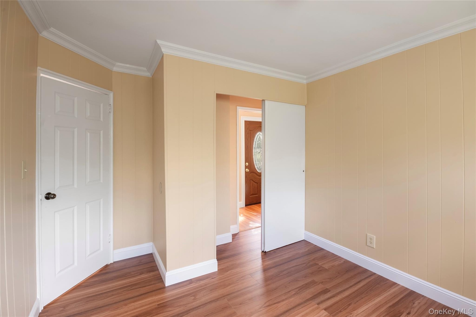 - Foyer entrance with wood finished floors and crown molding