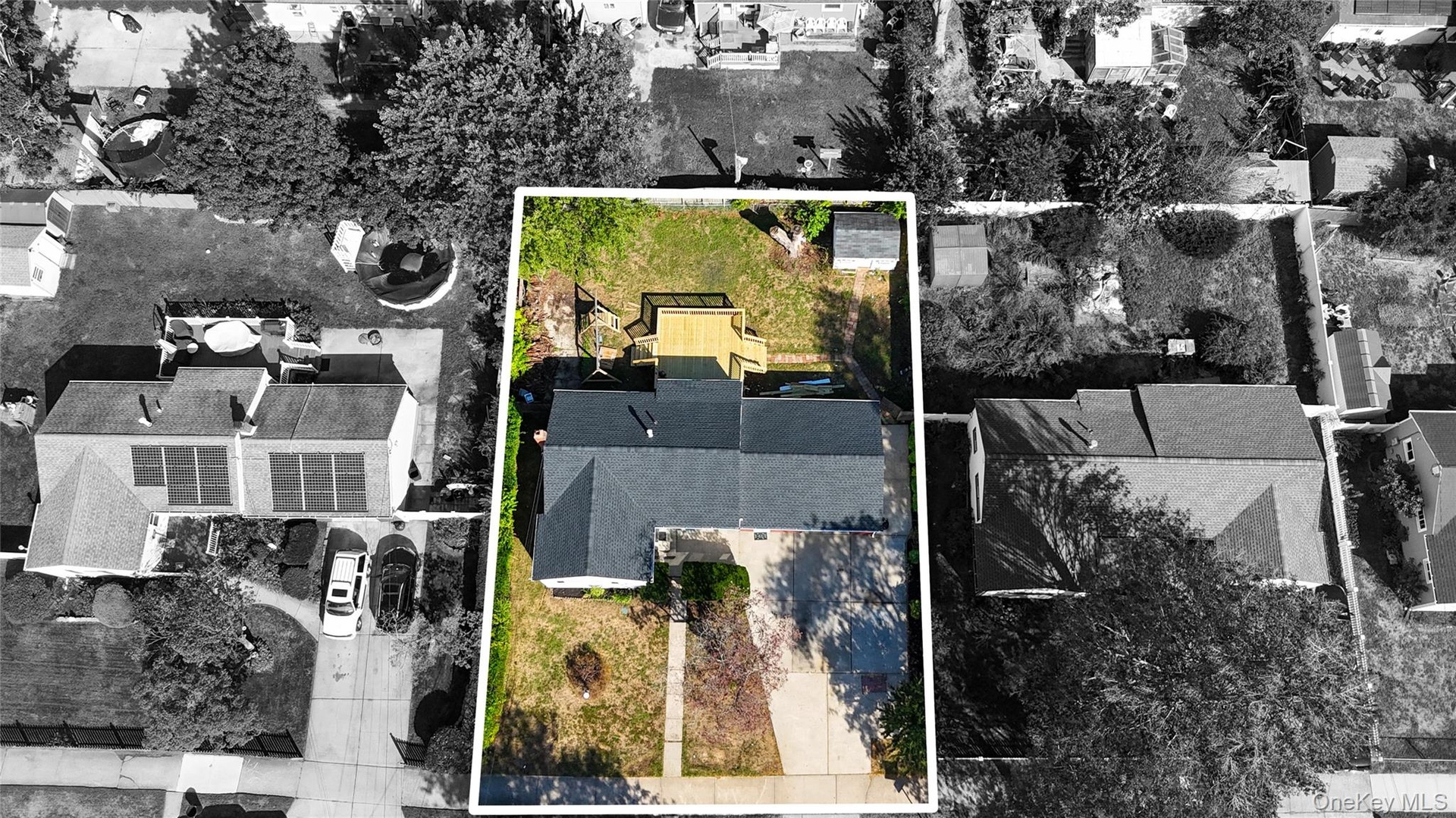 - Aerial view of residential area featuring property boundaries highlighted